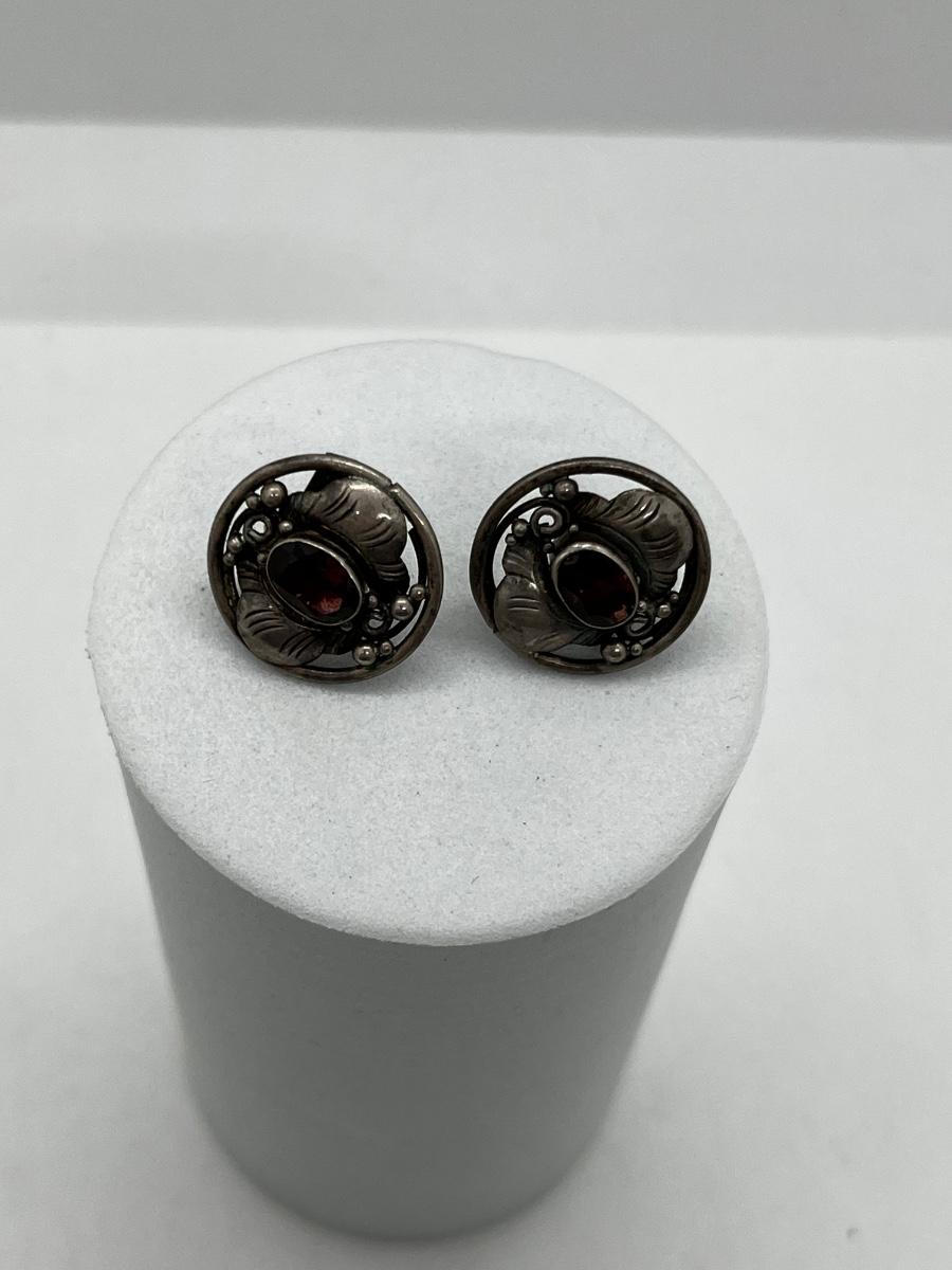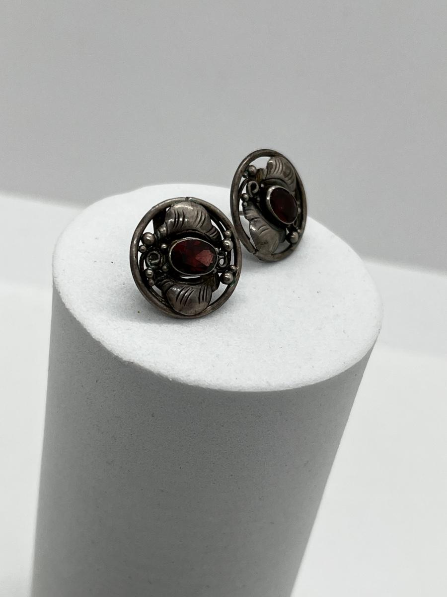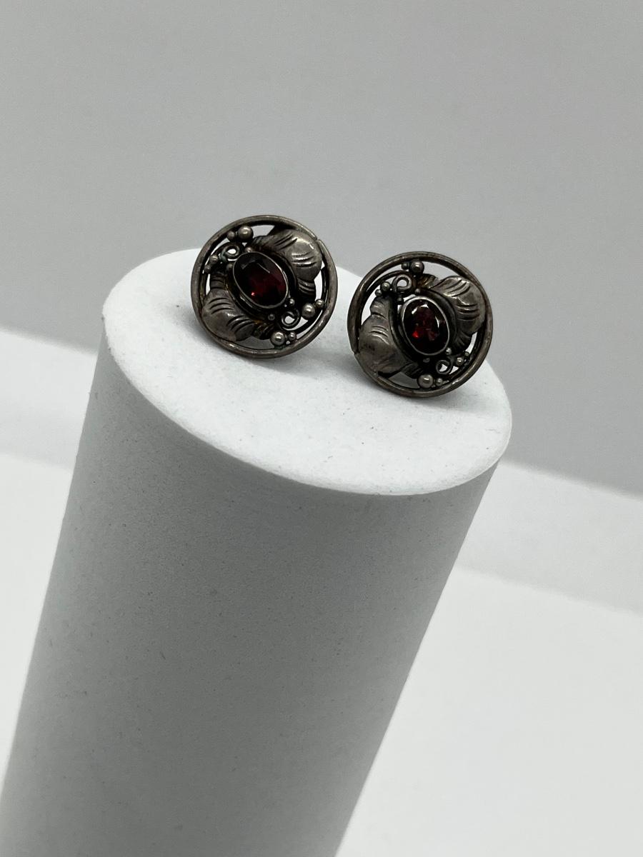 LOT 170: Vintage Sterling Silver and Garnet Art Nouveau Pierced Earrings