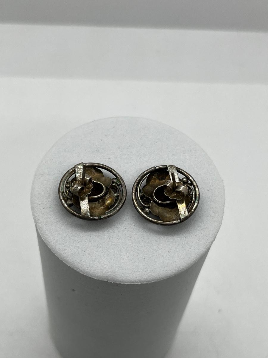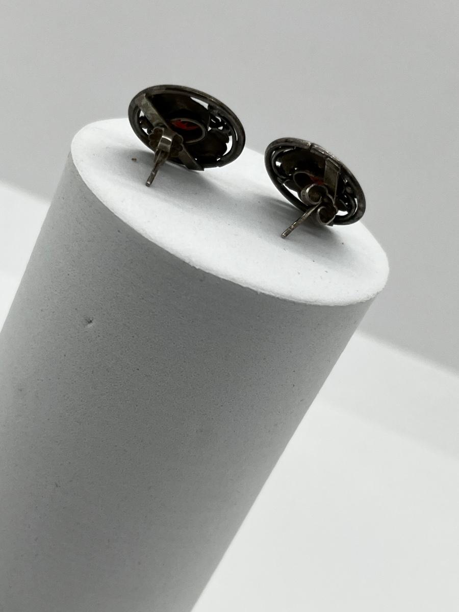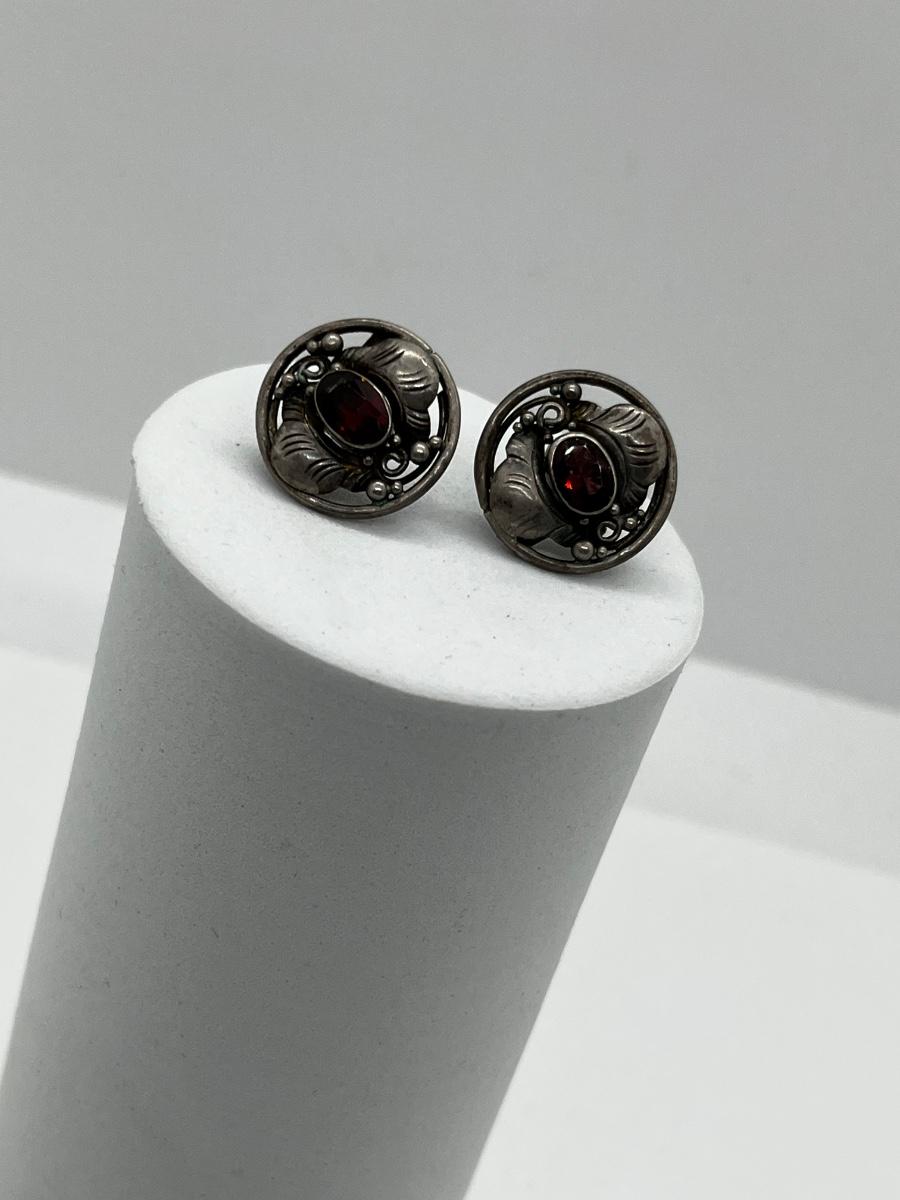 LOT 170: Vintage Sterling Silver and Garnet Art Nouveau Pierced Earrings