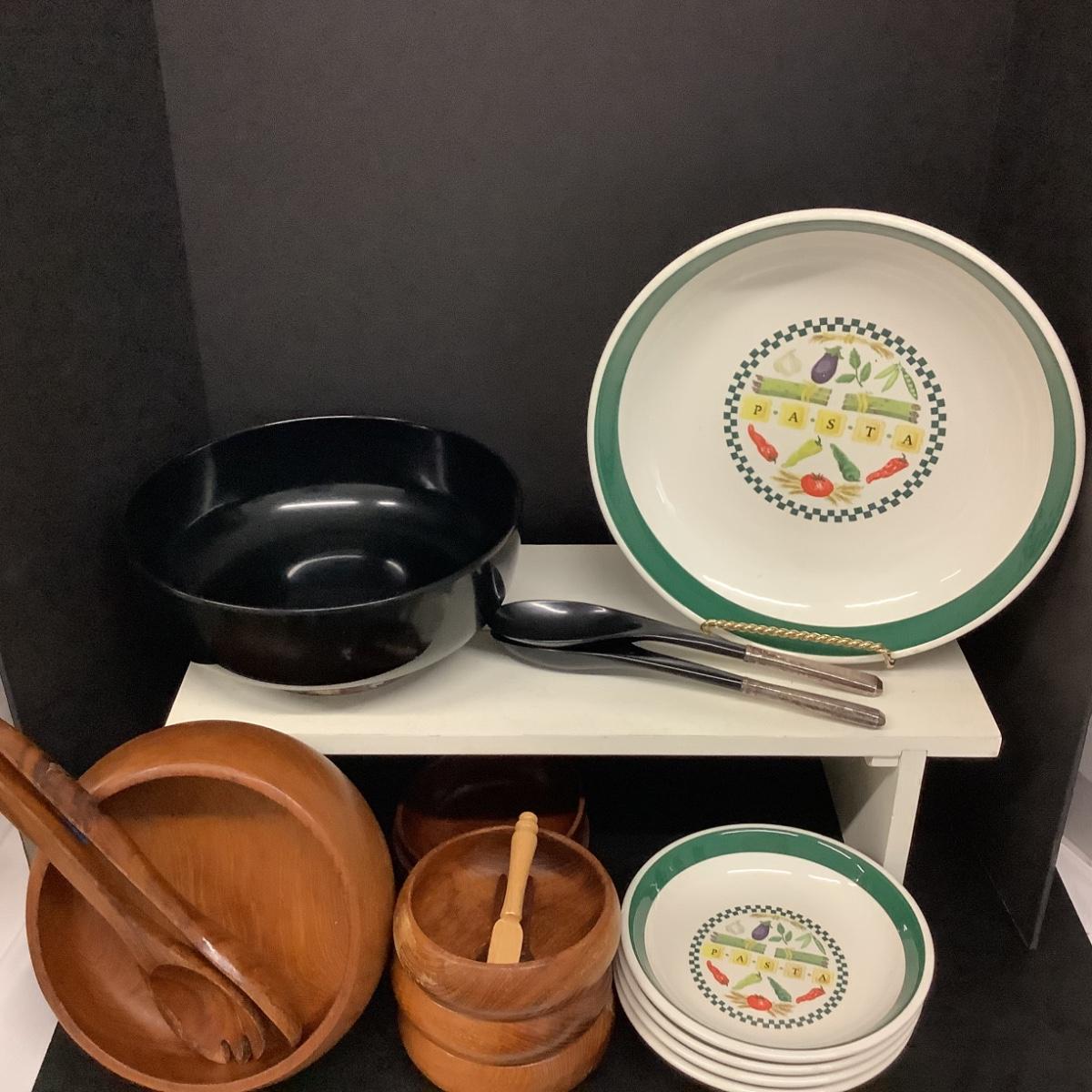 5 - Smaller Wooden Salad Bowls with wooden Utensils