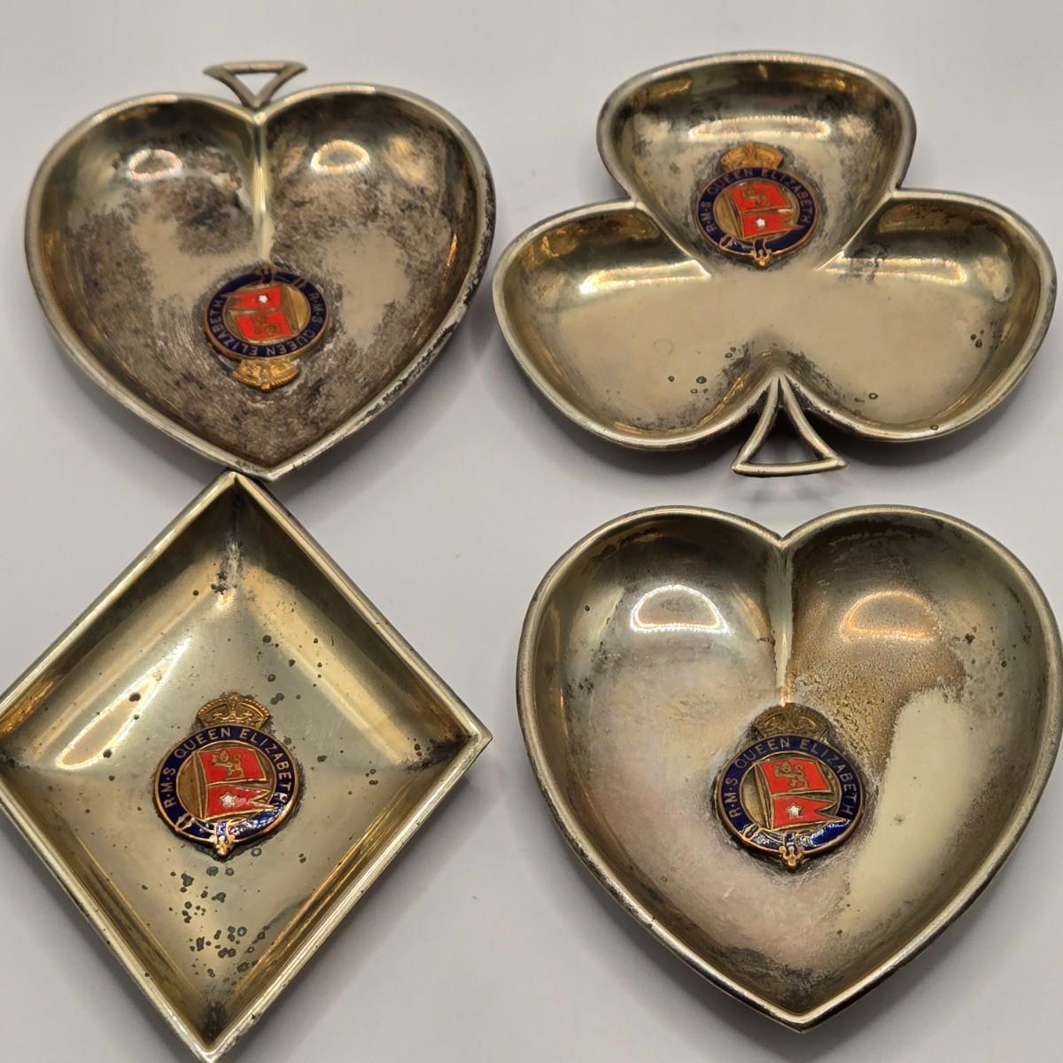 LOT 6: Set of 4 Vintage Ashtrays/Pin Trays form RMS Queen Elizabeth Ocean Liner