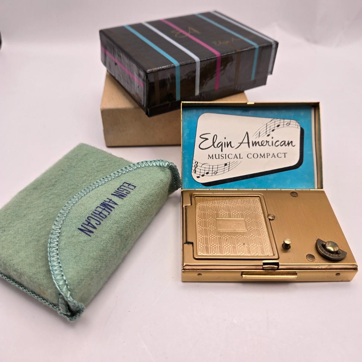 LOT 9: Vintage 1940s/50s Elgin American Cosmetic Powder Compact with Music Box