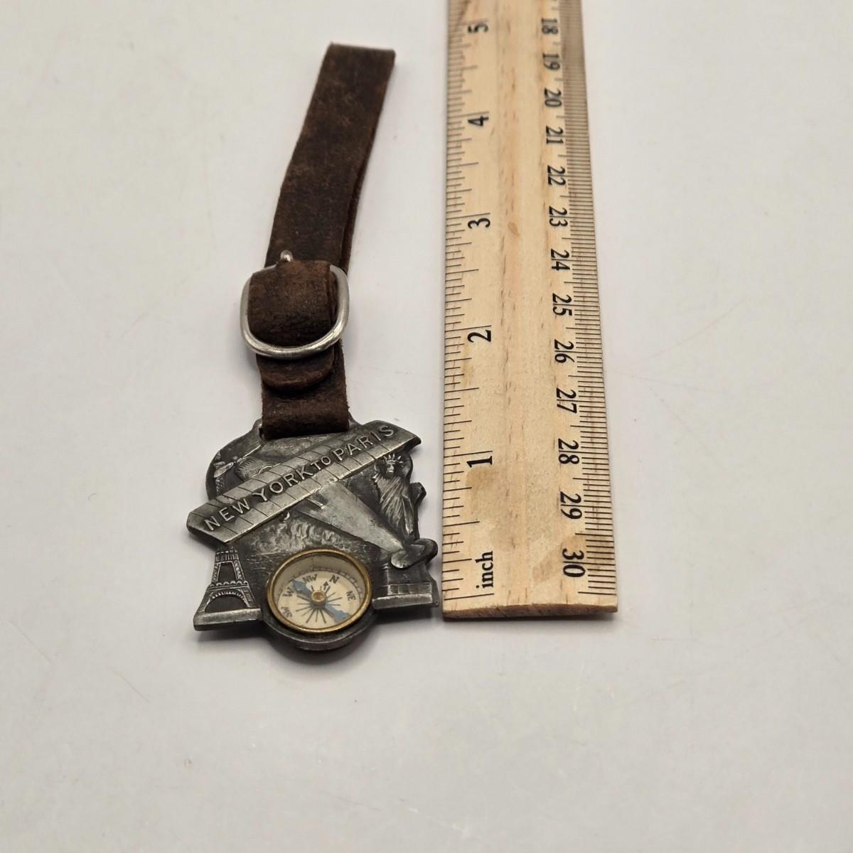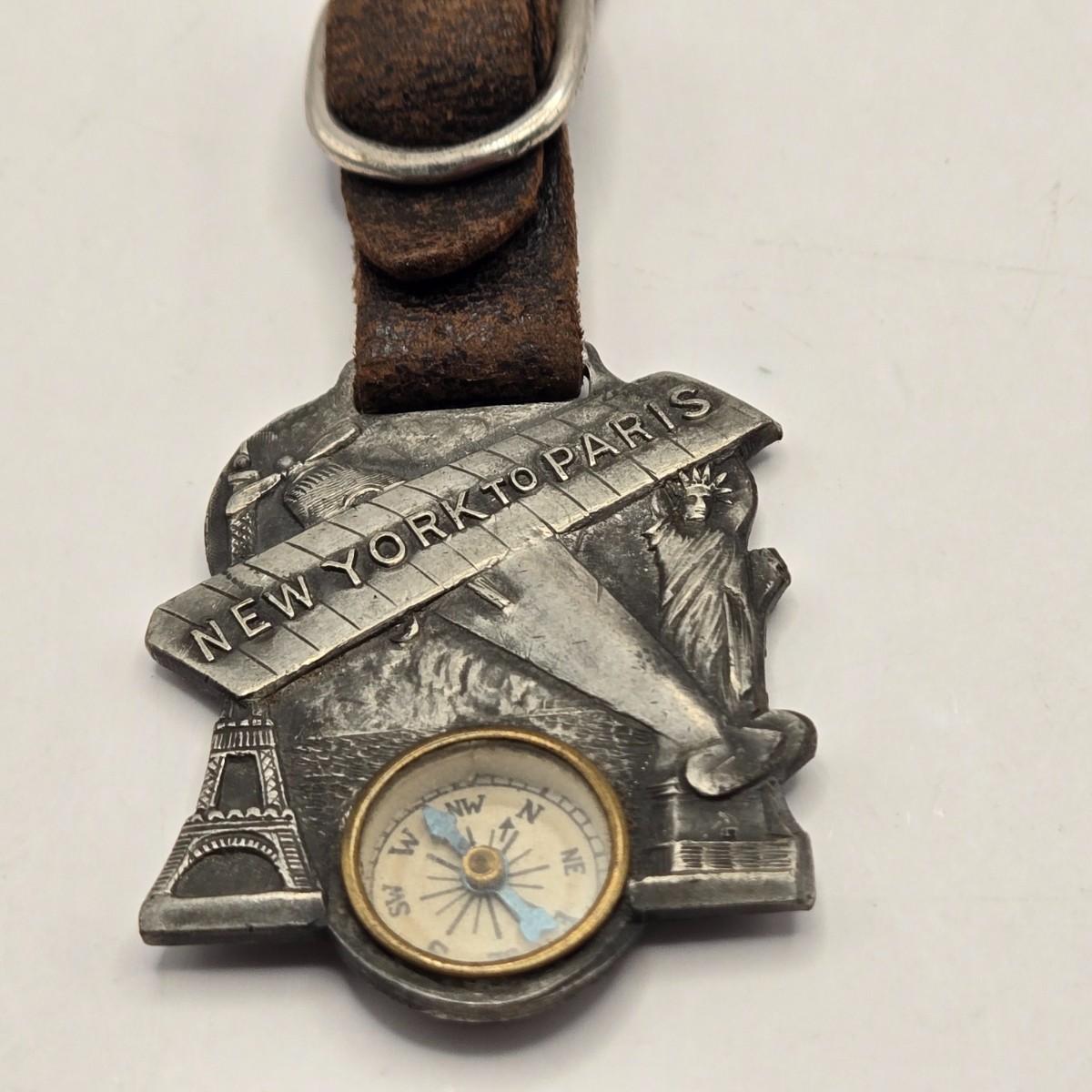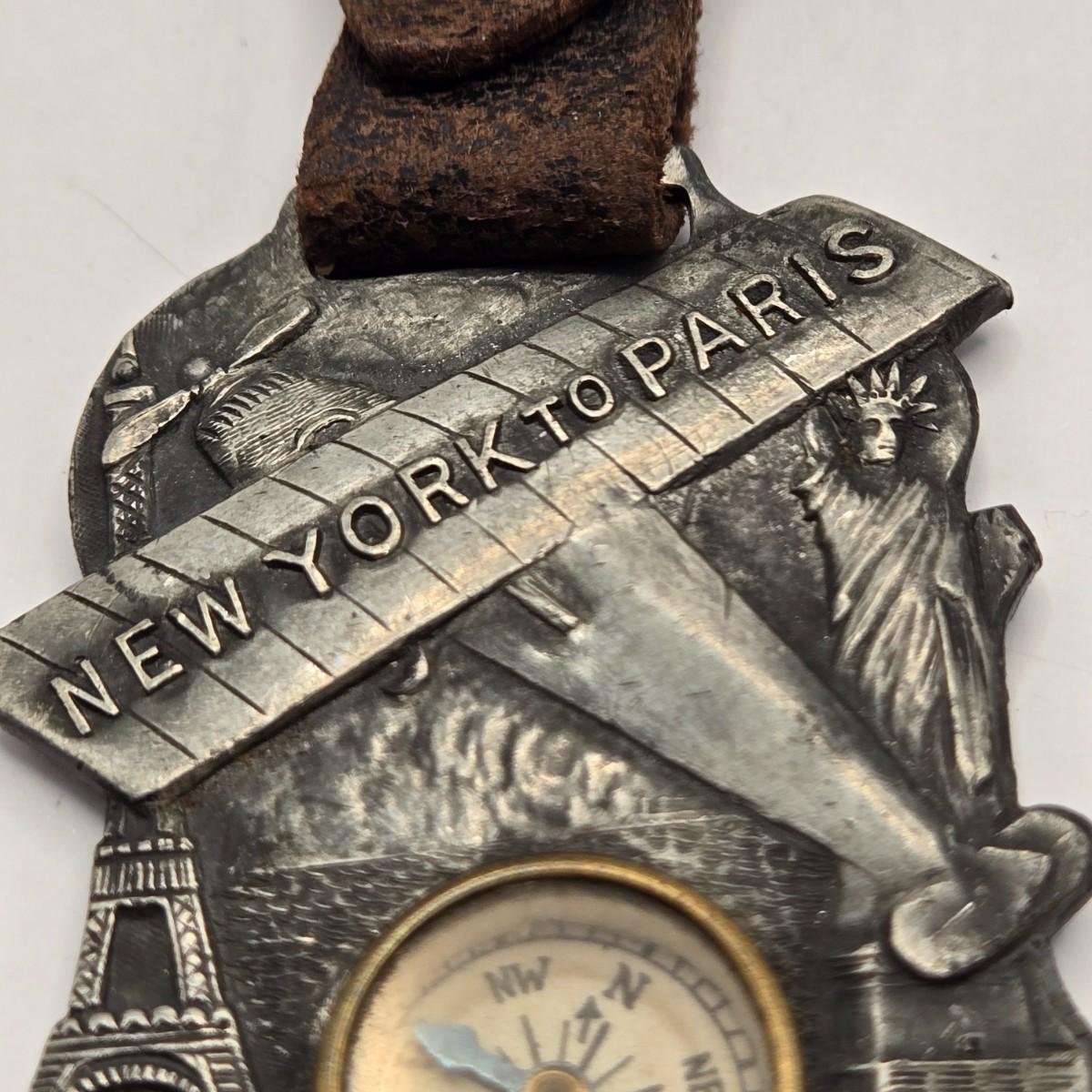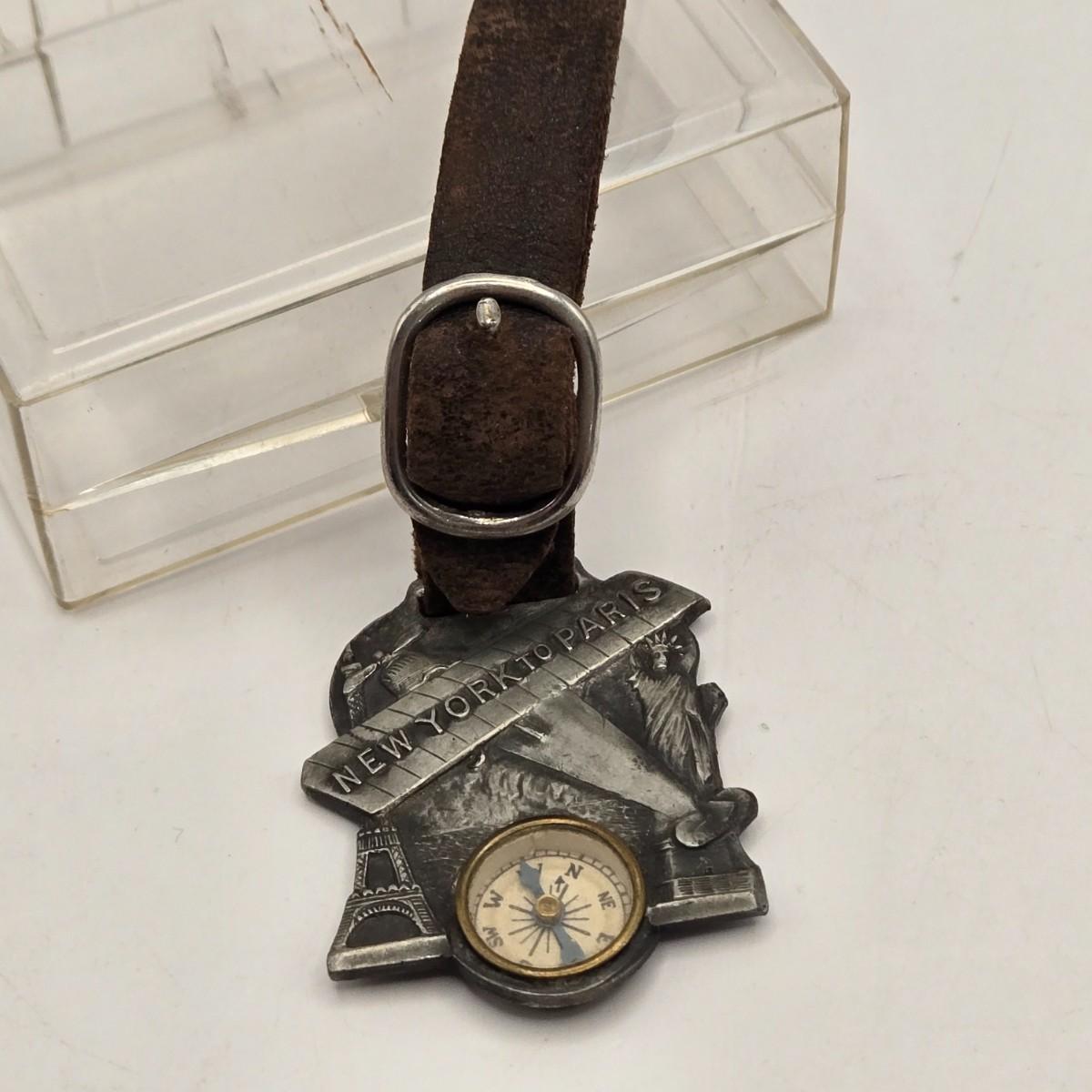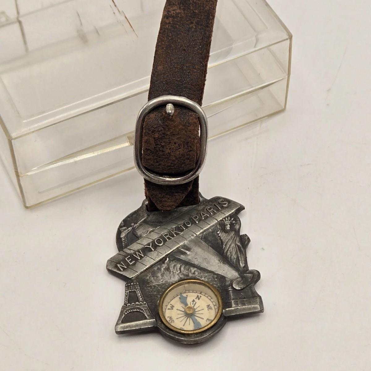 LOT 21: 1927 N.Y. to Paris Compass with Leather Strap Commemorating Charles Lindbergh's Flight