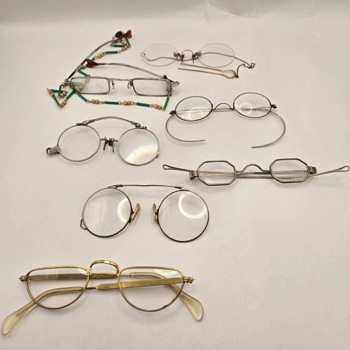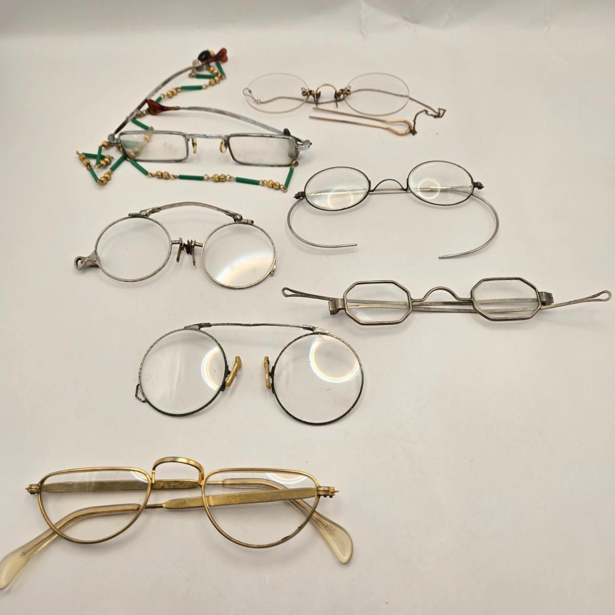 LOT 22: Antique and Vintage Eyeglasses, Pince-Nez Spectacles, and Women's Pince- Nez with Hairpin Connected with Chain