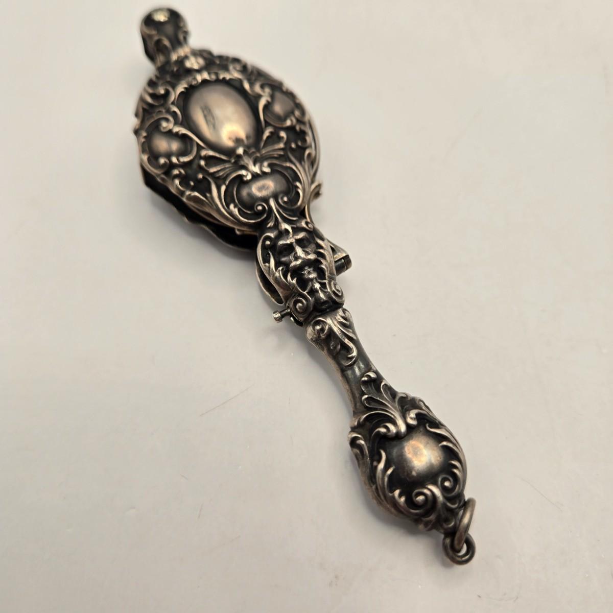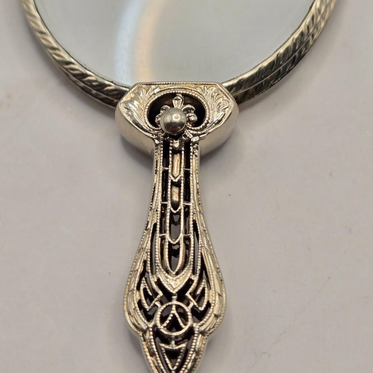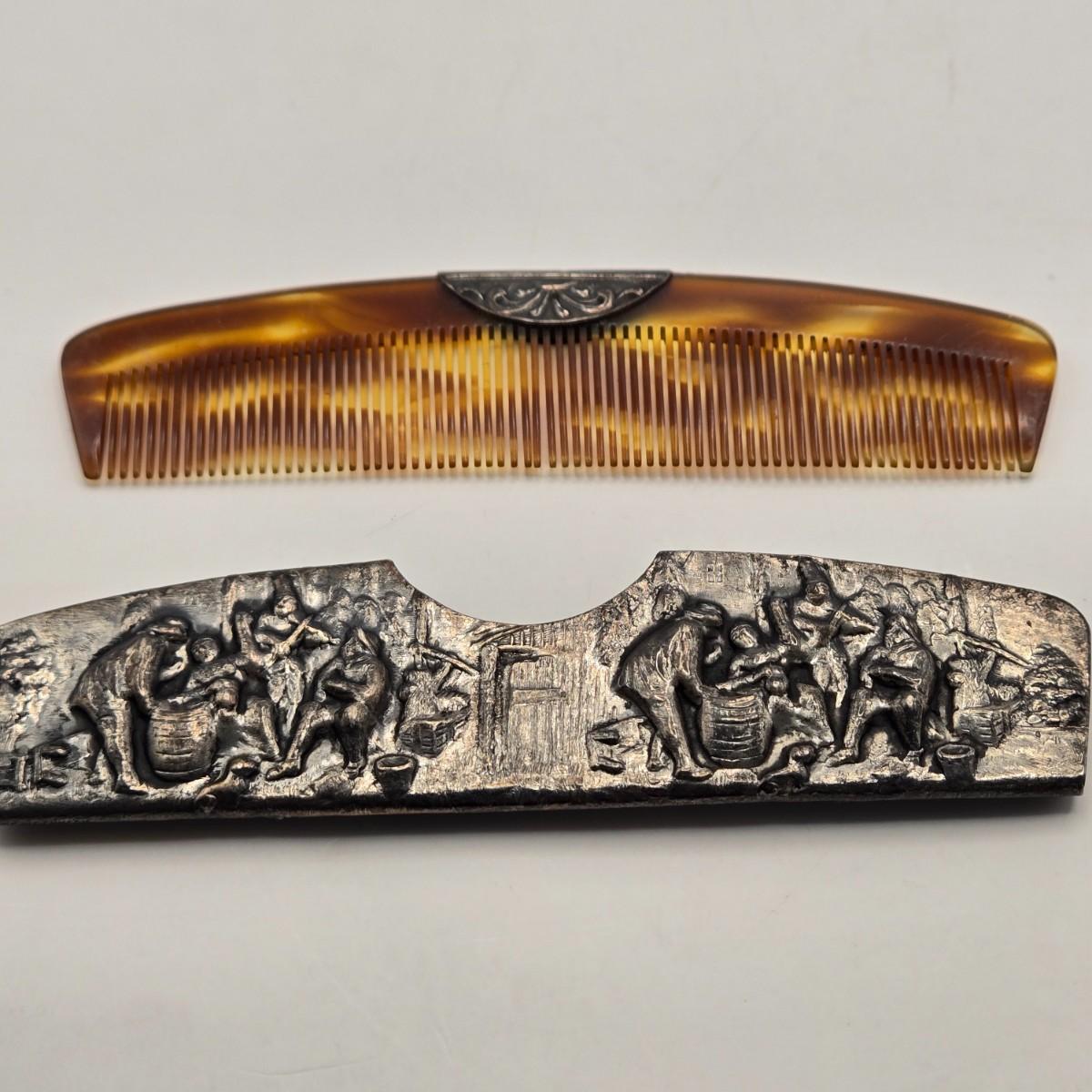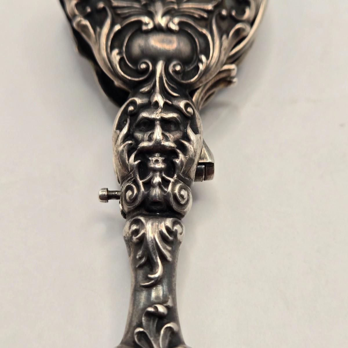 LOT 25: Antique Art Nouveau Silver Toned Lorgnette, Silver Tone Folding Spectacles, Silver Toned Mesh Change Purse, Denmark Silver Plated Repousse Comb Holder w/ Comb and More