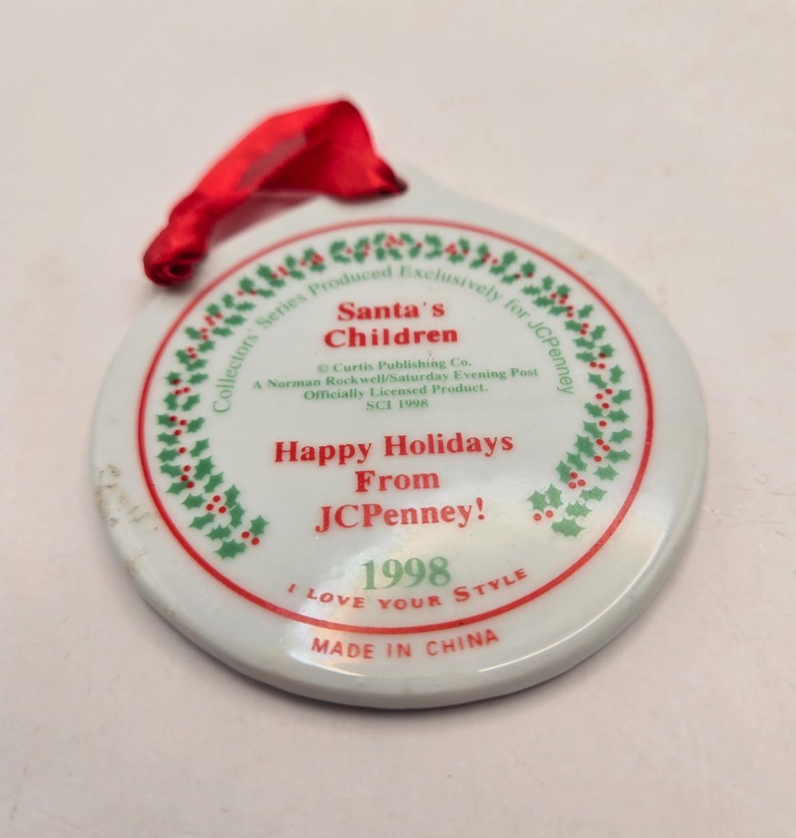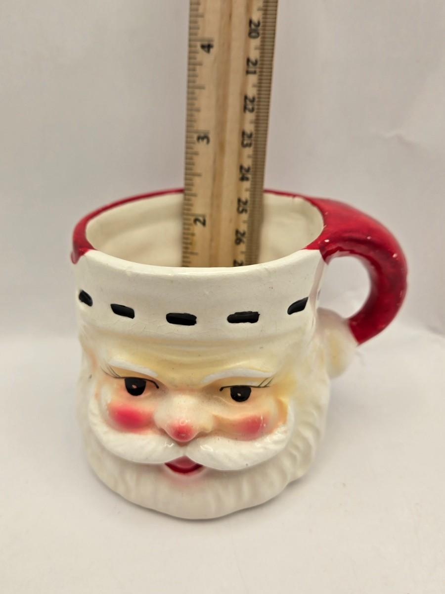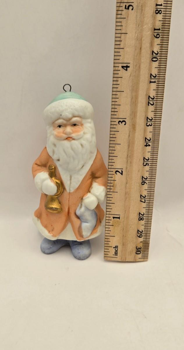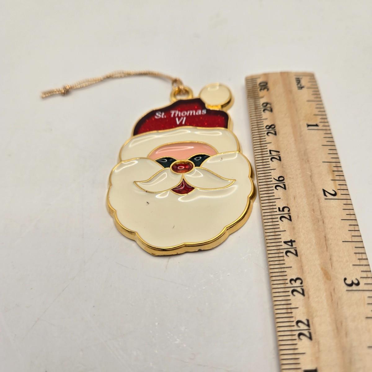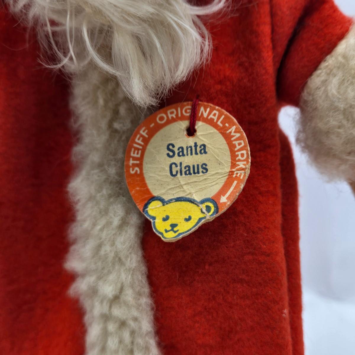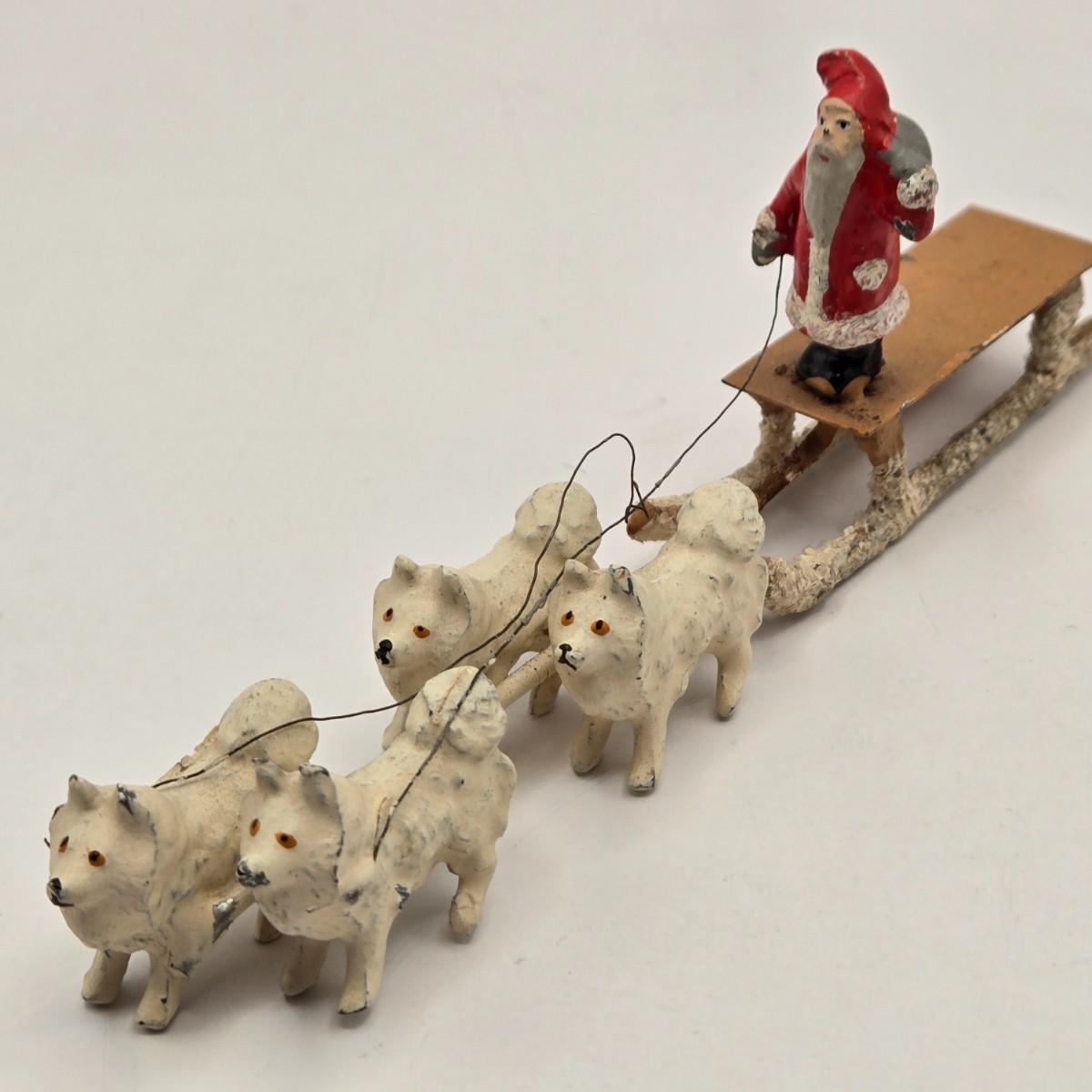 LOT 36: Vintage Cast Iron Santa Door Stop, Steiff Santa Hand Puppet, Putz Germany Santa Sleigh, Ceramic Santa & JC Penny Ornaments, and Santa Ornament from St. Thomas