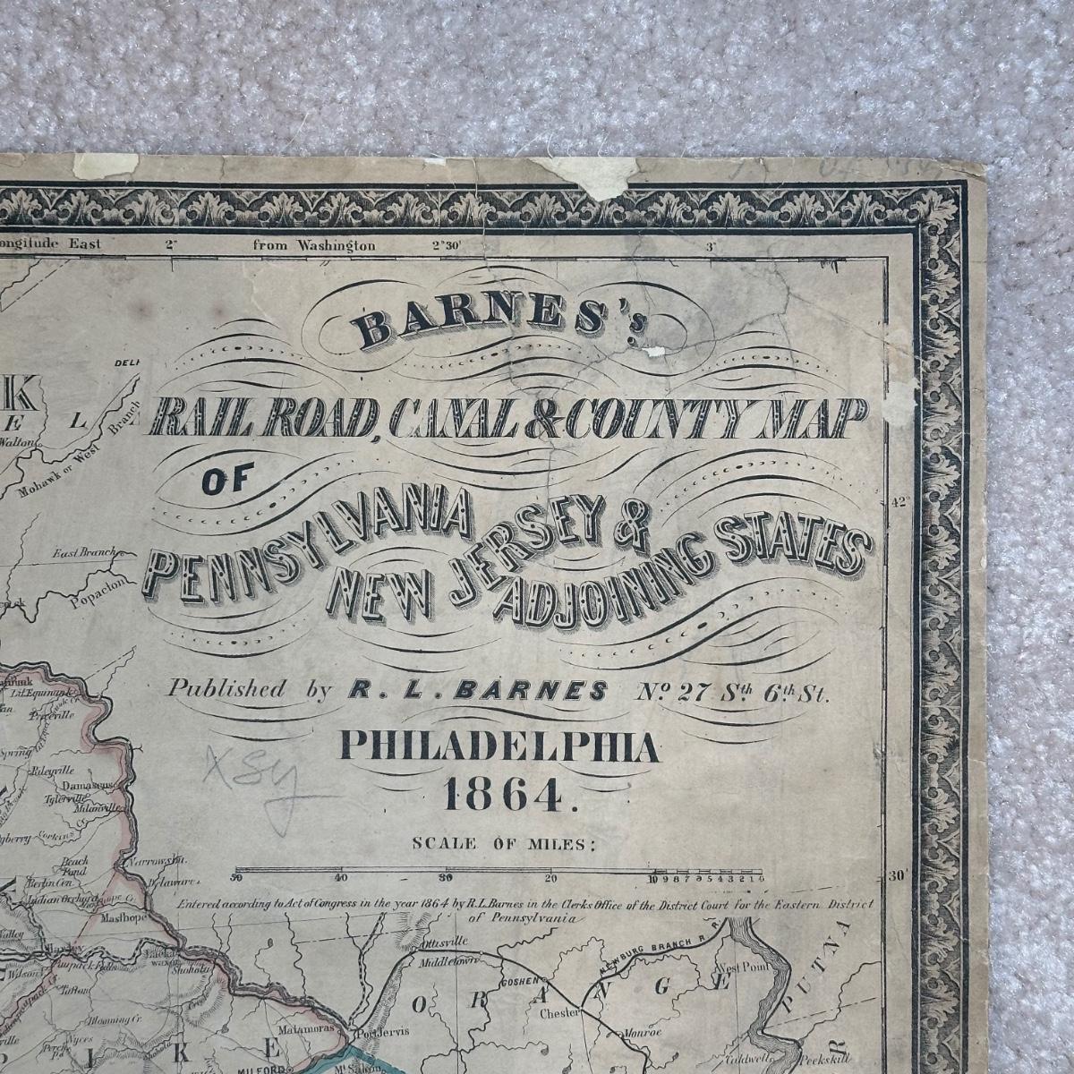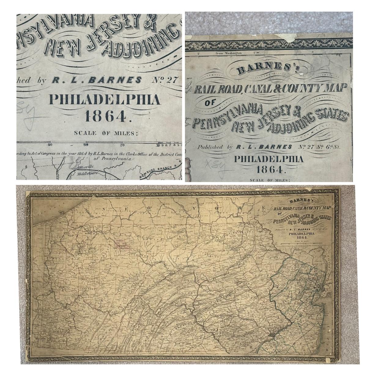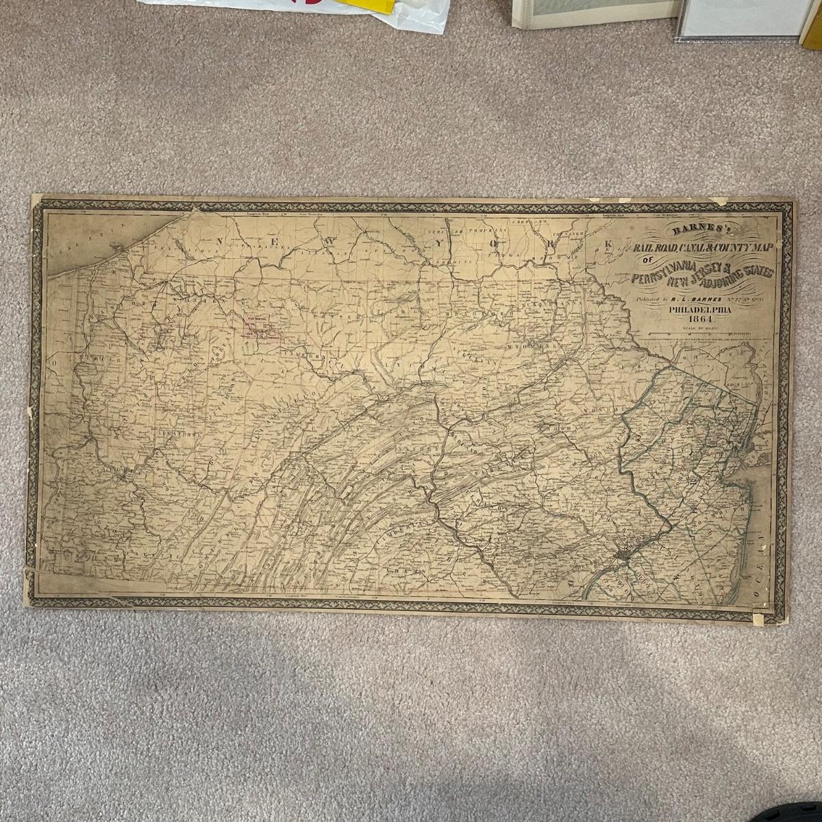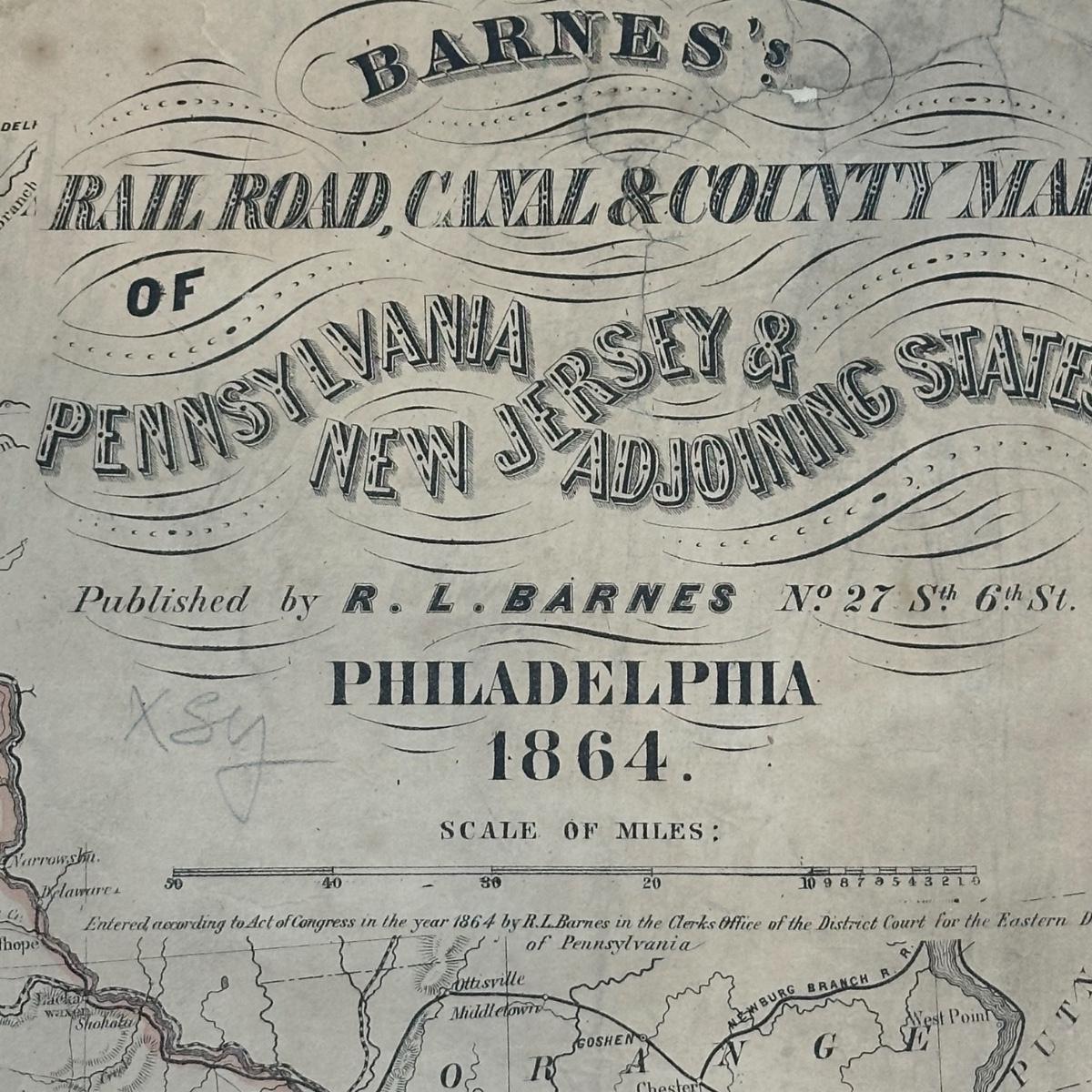 LOT 67: Antique 1864 Railroad Canal & County Map of Pennsylvania New Jersey & Adjoining States