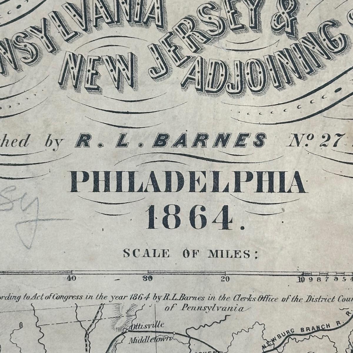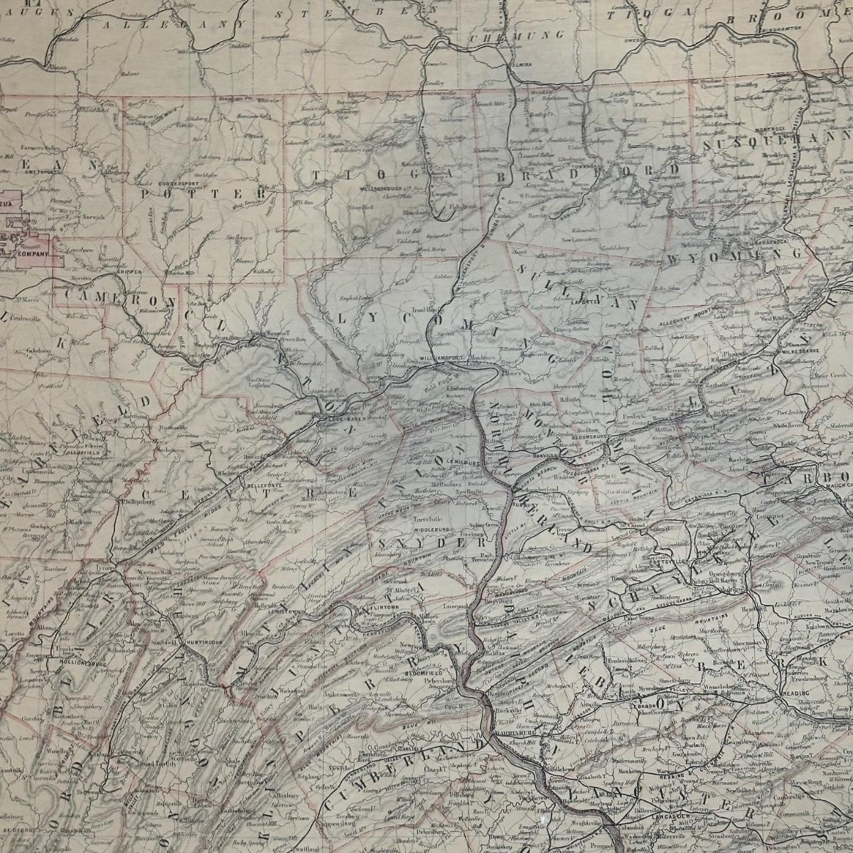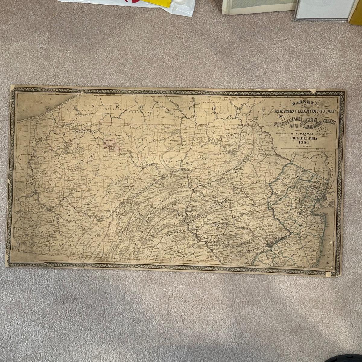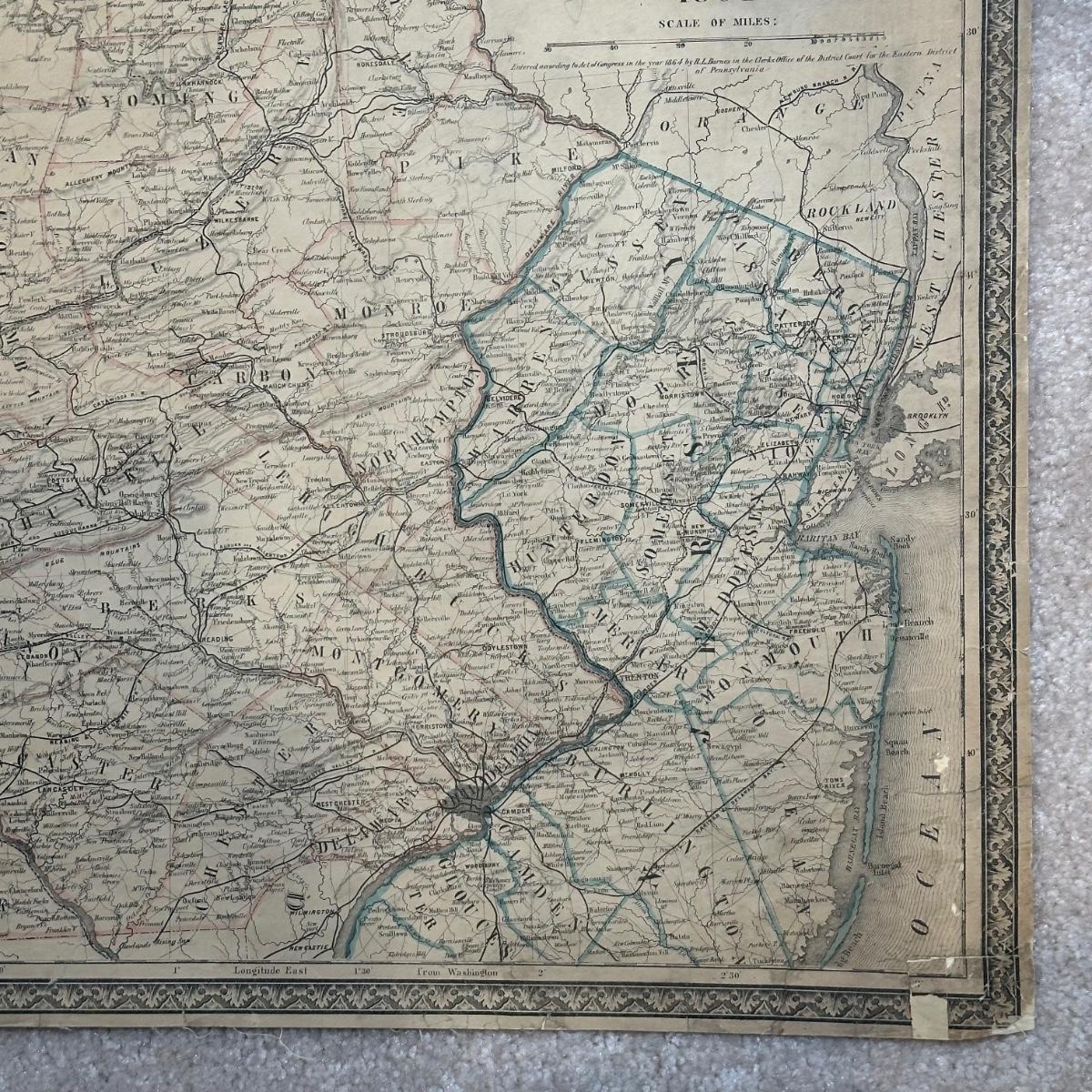 LOT 67: Antique 1864 Railroad Canal & County Map of Pennsylvania New Jersey & Adjoining States