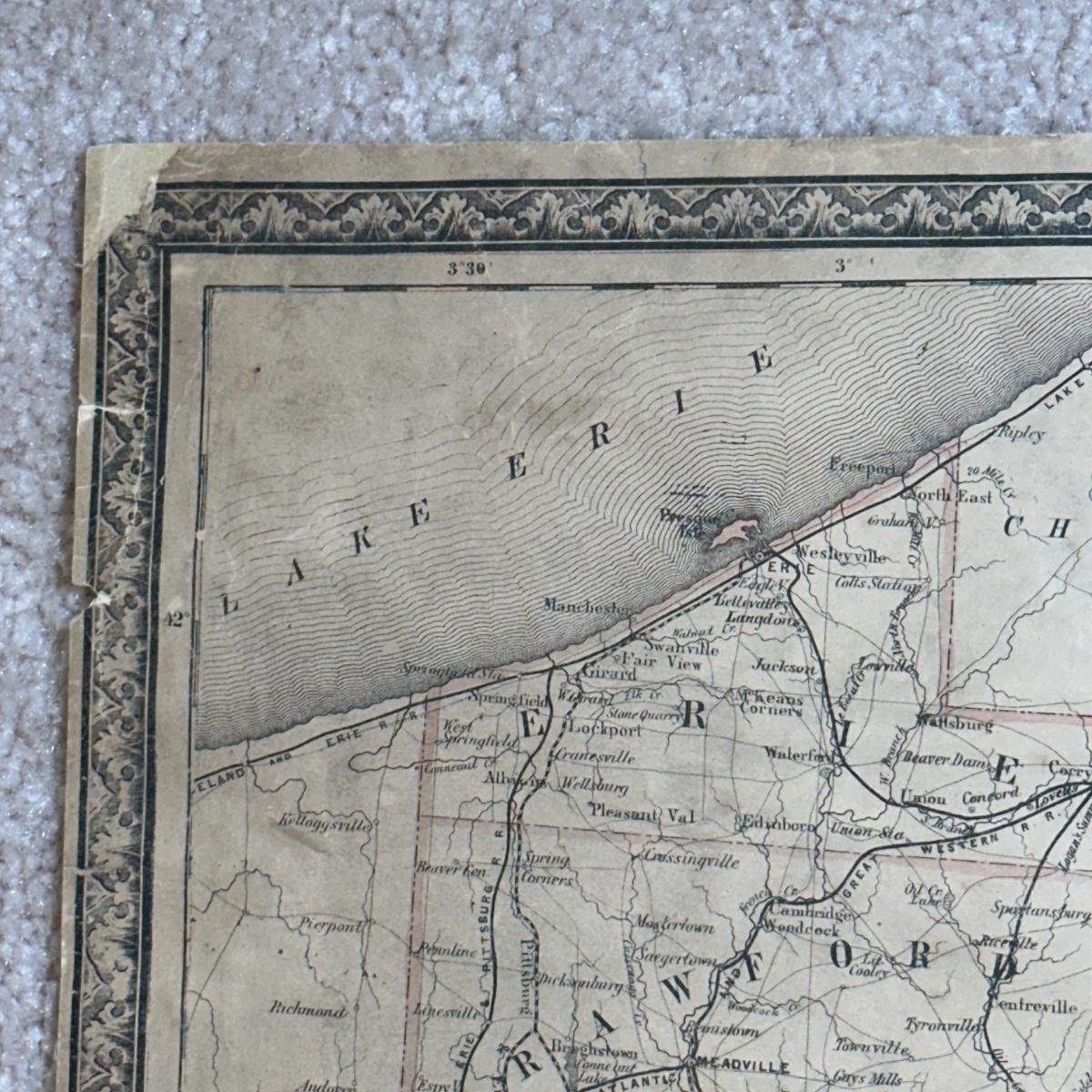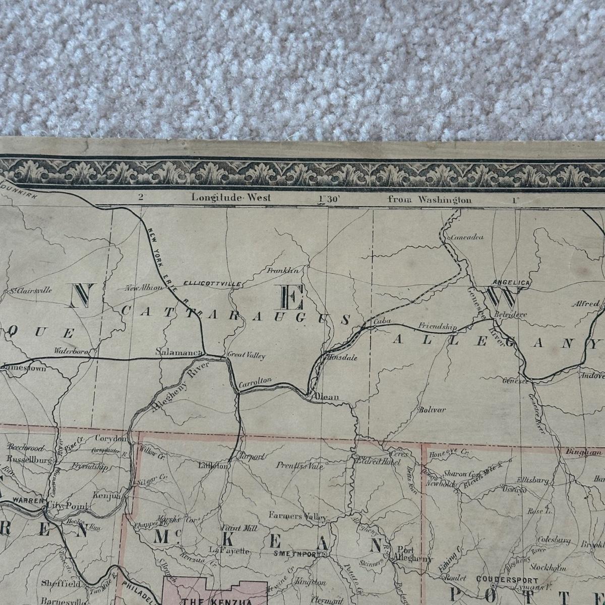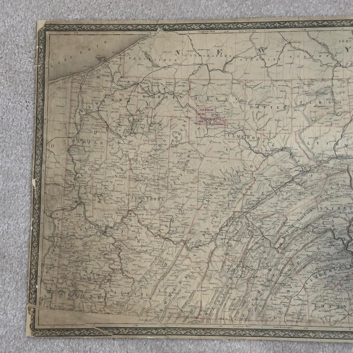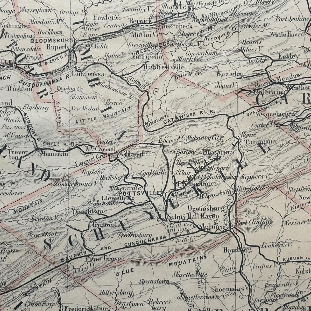 LOT 67: Antique 1864 Railroad Canal & County Map of Pennsylvania New Jersey & Adjoining States