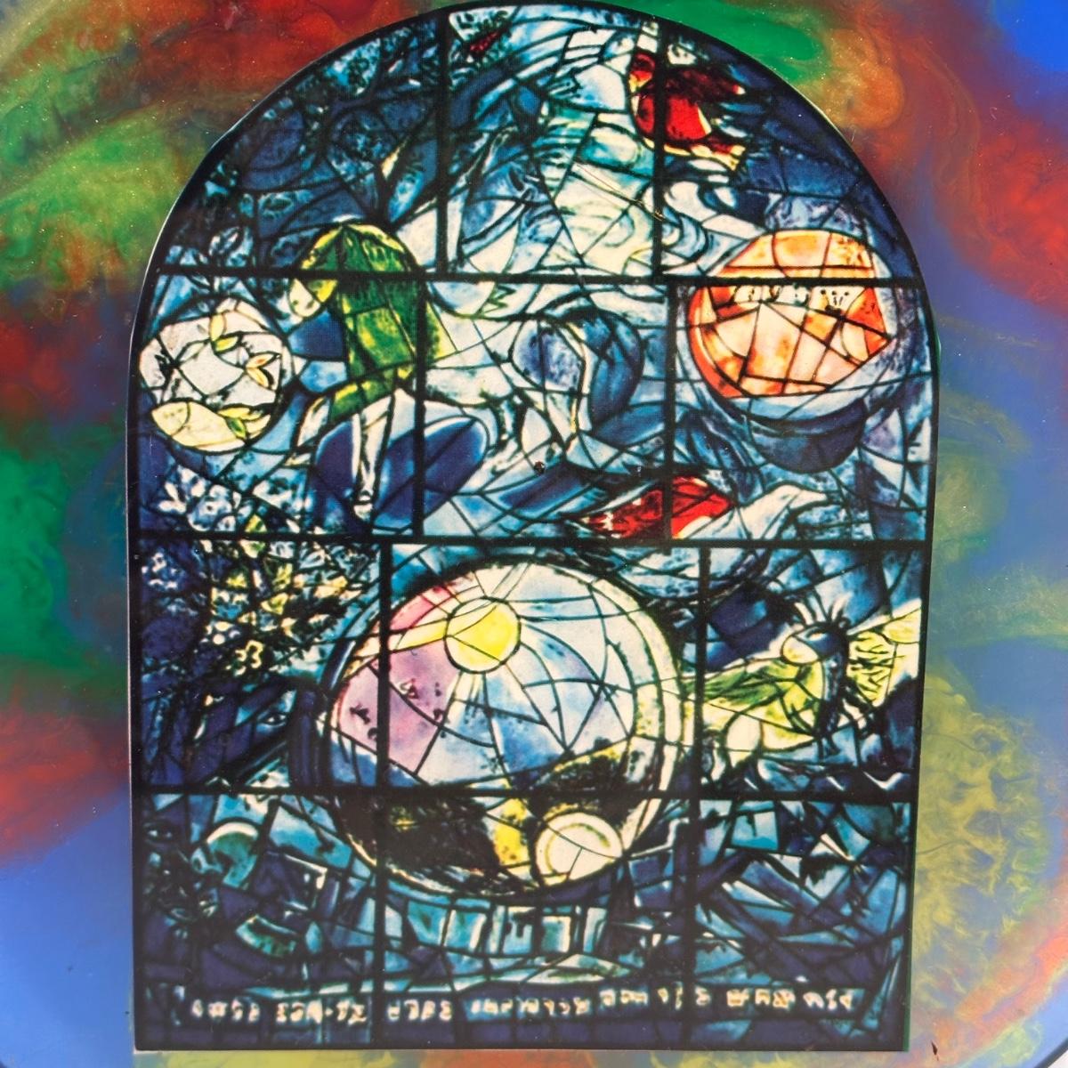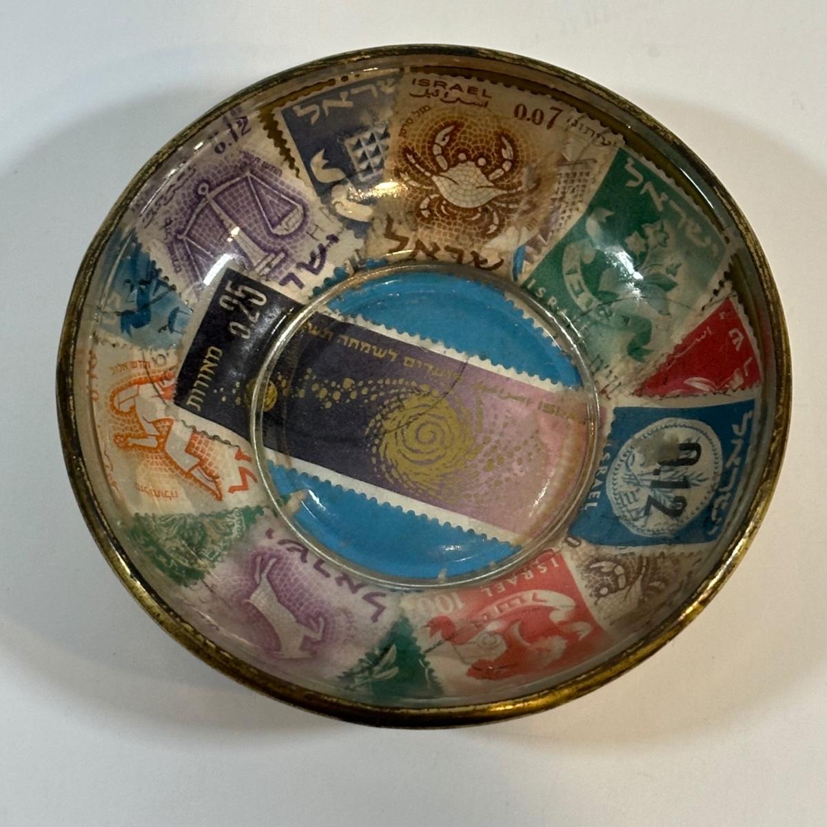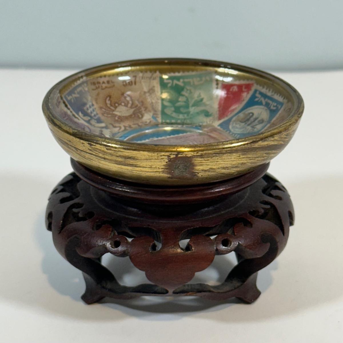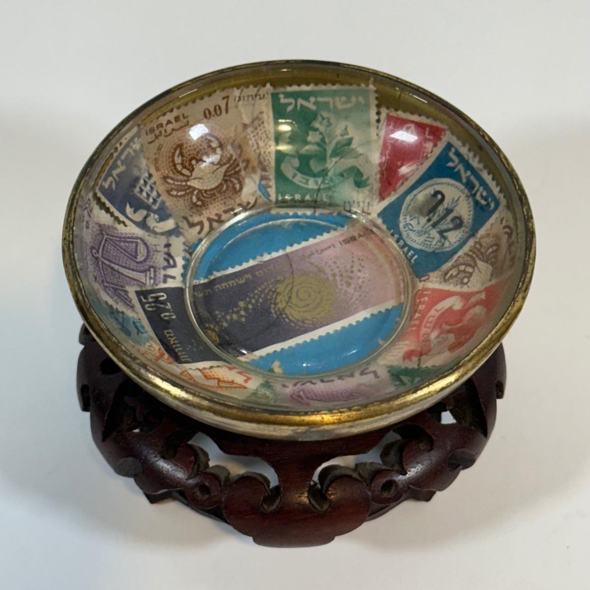 LOT 77: Israel Lucite Stained Glass Window, Israeli Stamp Brass Trinket Dish & More