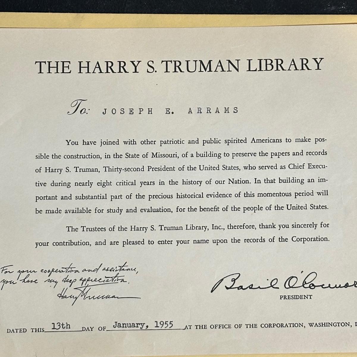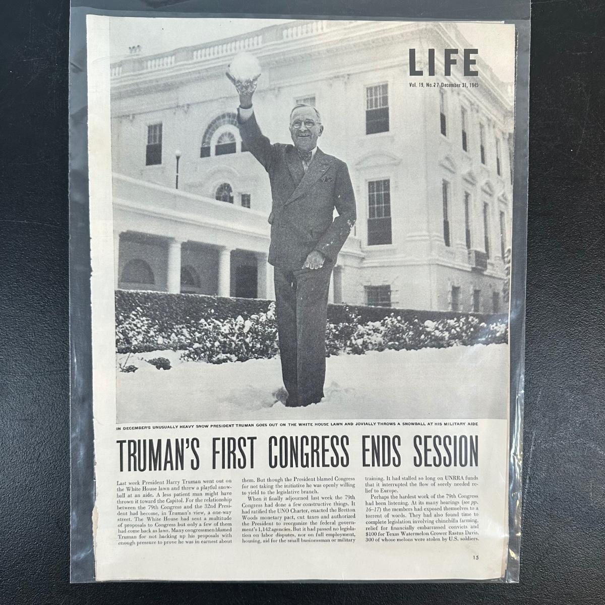 LOT 79: Harry S. Truman Collectables - Poster, Magazines, Hand Signed Document & More