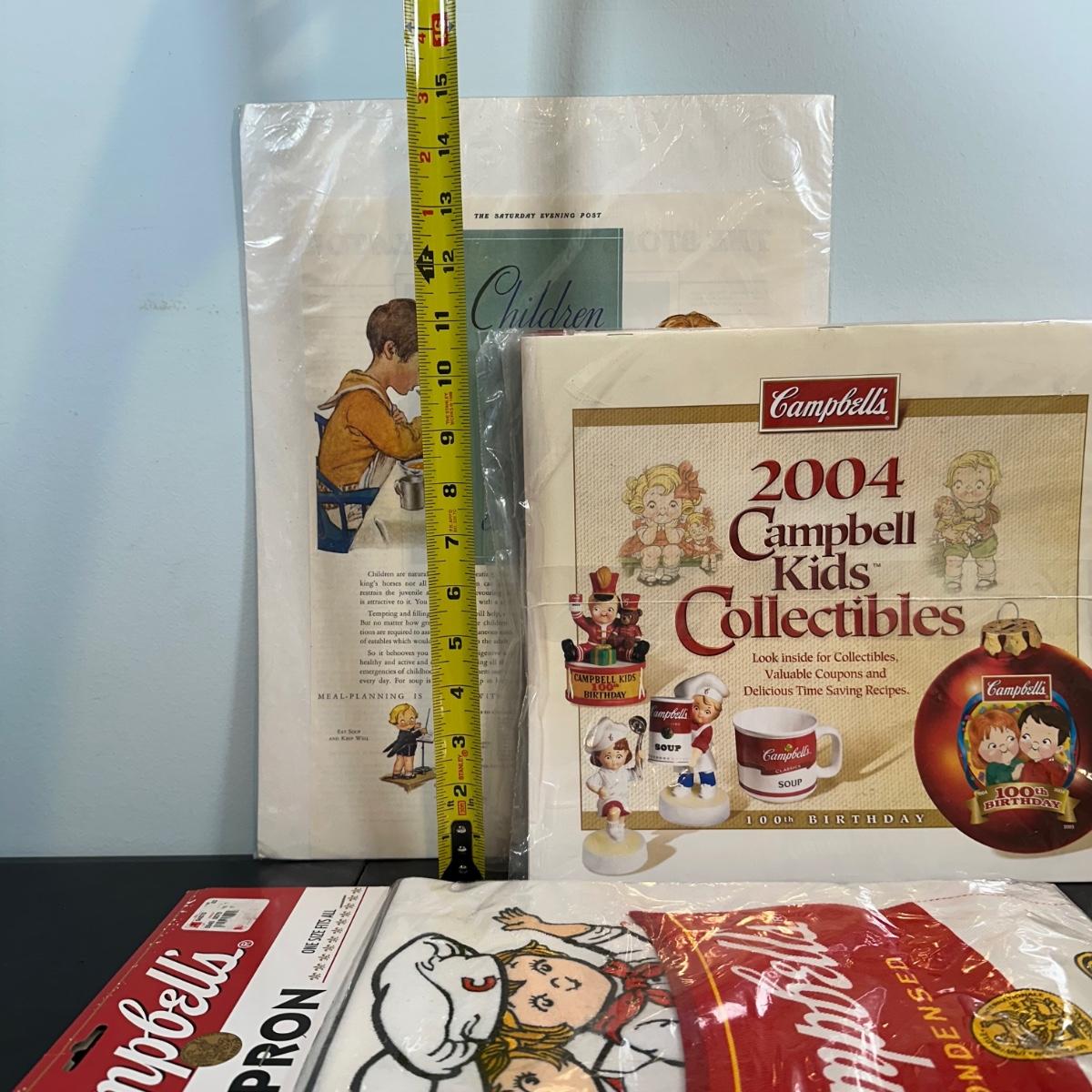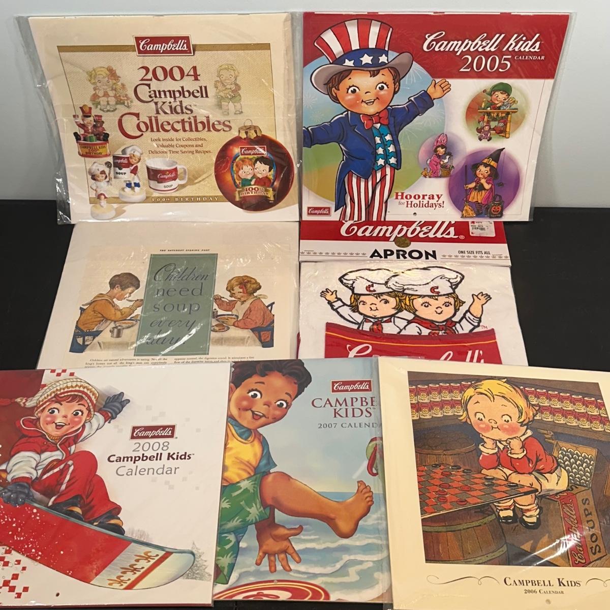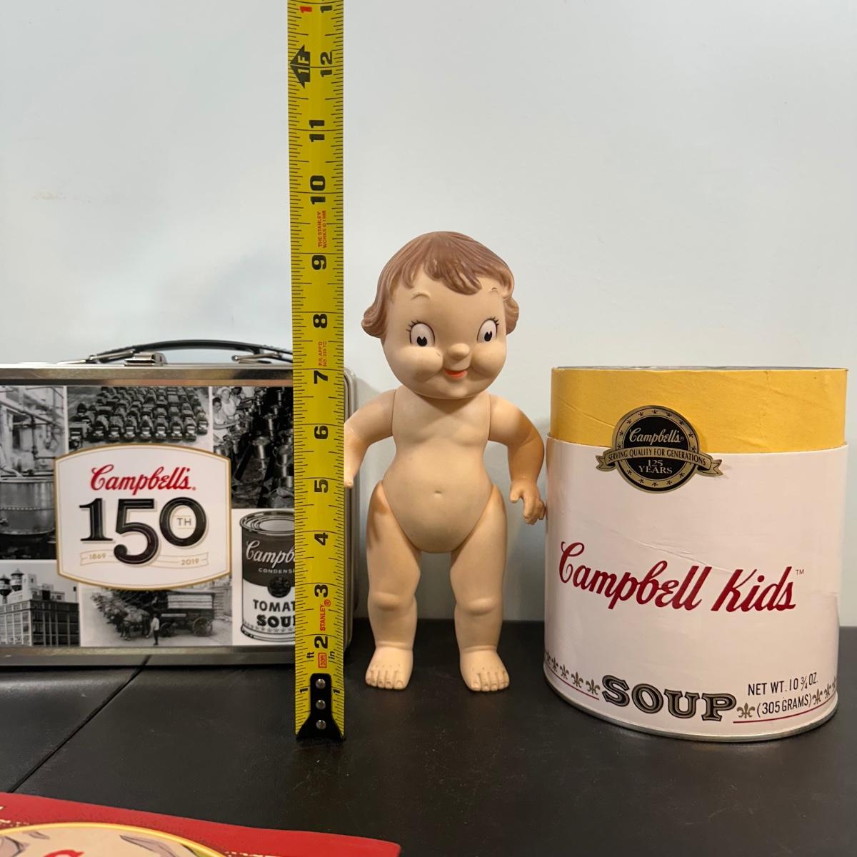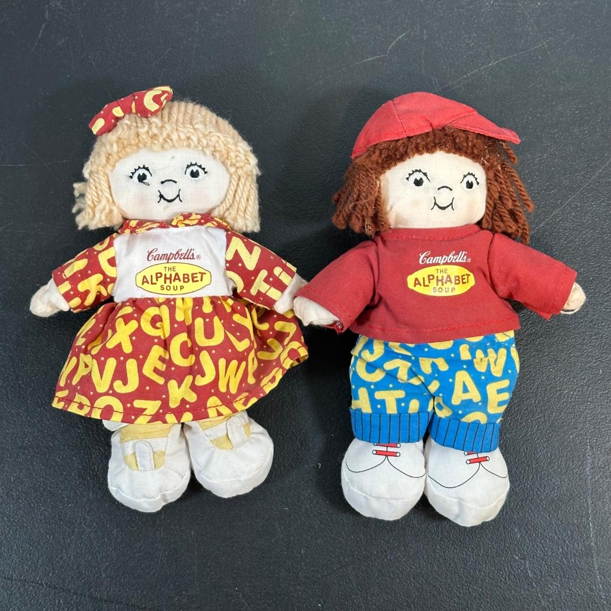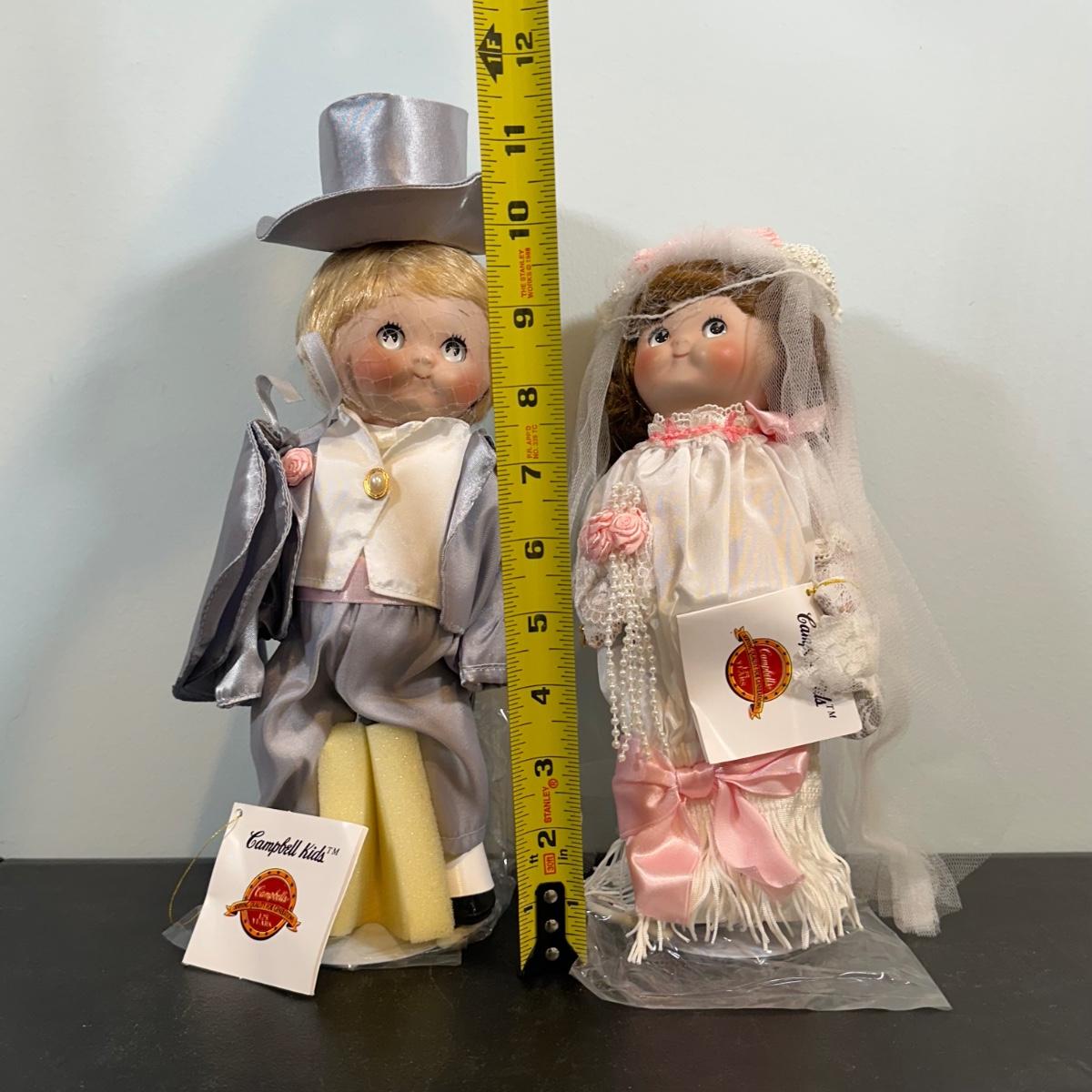 LOT 85: Vintage Campbell’s Soup Collectibles Campbell Kid Dolls NIP, Lunchbox & Thermos, Campbell's Kids Bride & Groom Porcelain Dolls & More