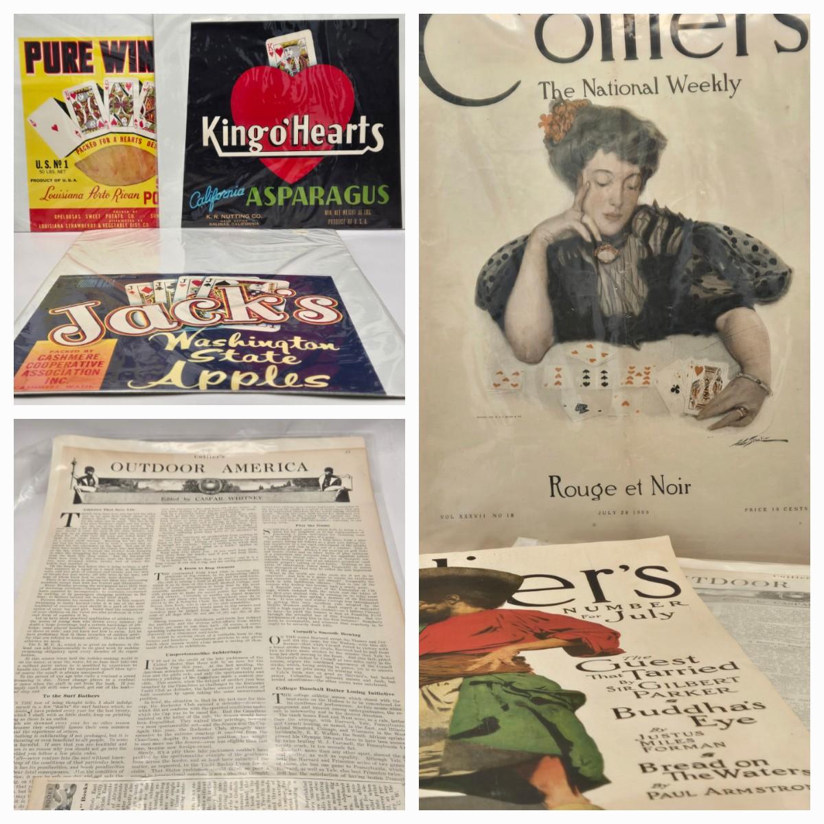 LOT 136: Antique and Vintage Magazine Covers and Advertising Crate Labels