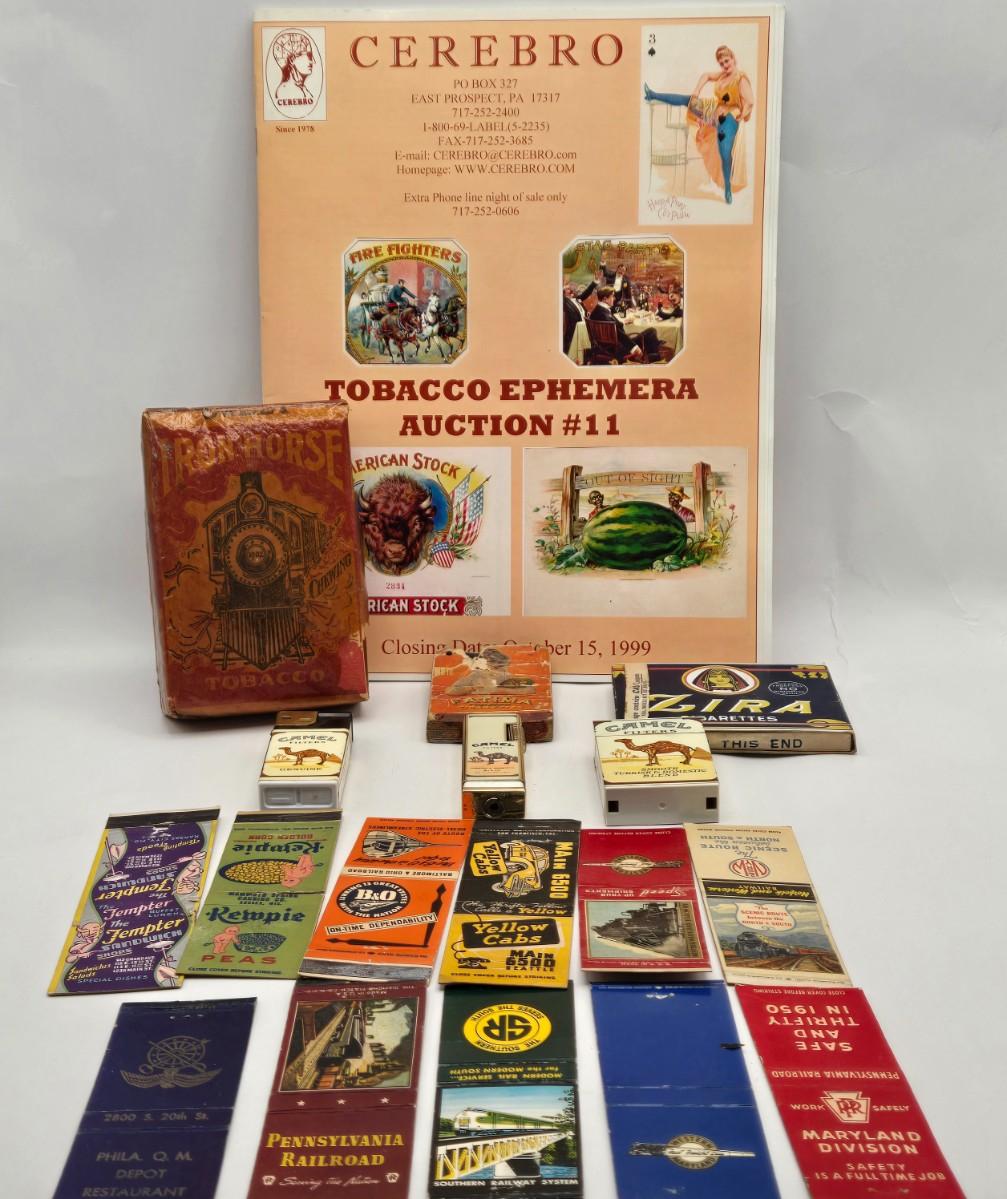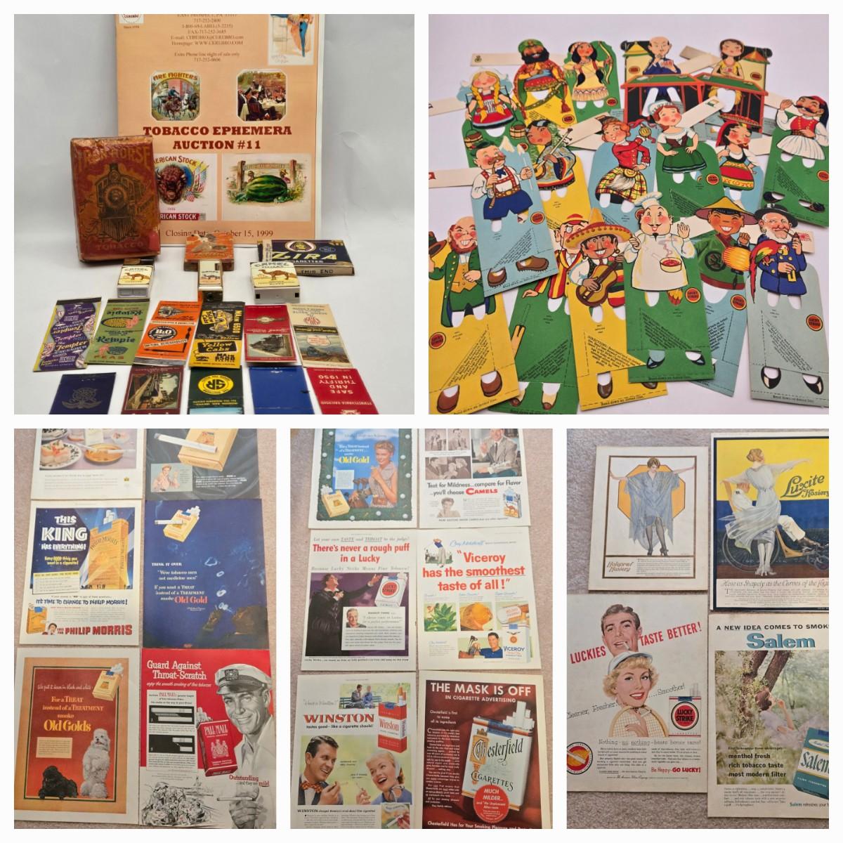 LOT 193: Vintage Cigarette Advertisements, Lucky Strike Bridge , Camel Brand Lighters, and More