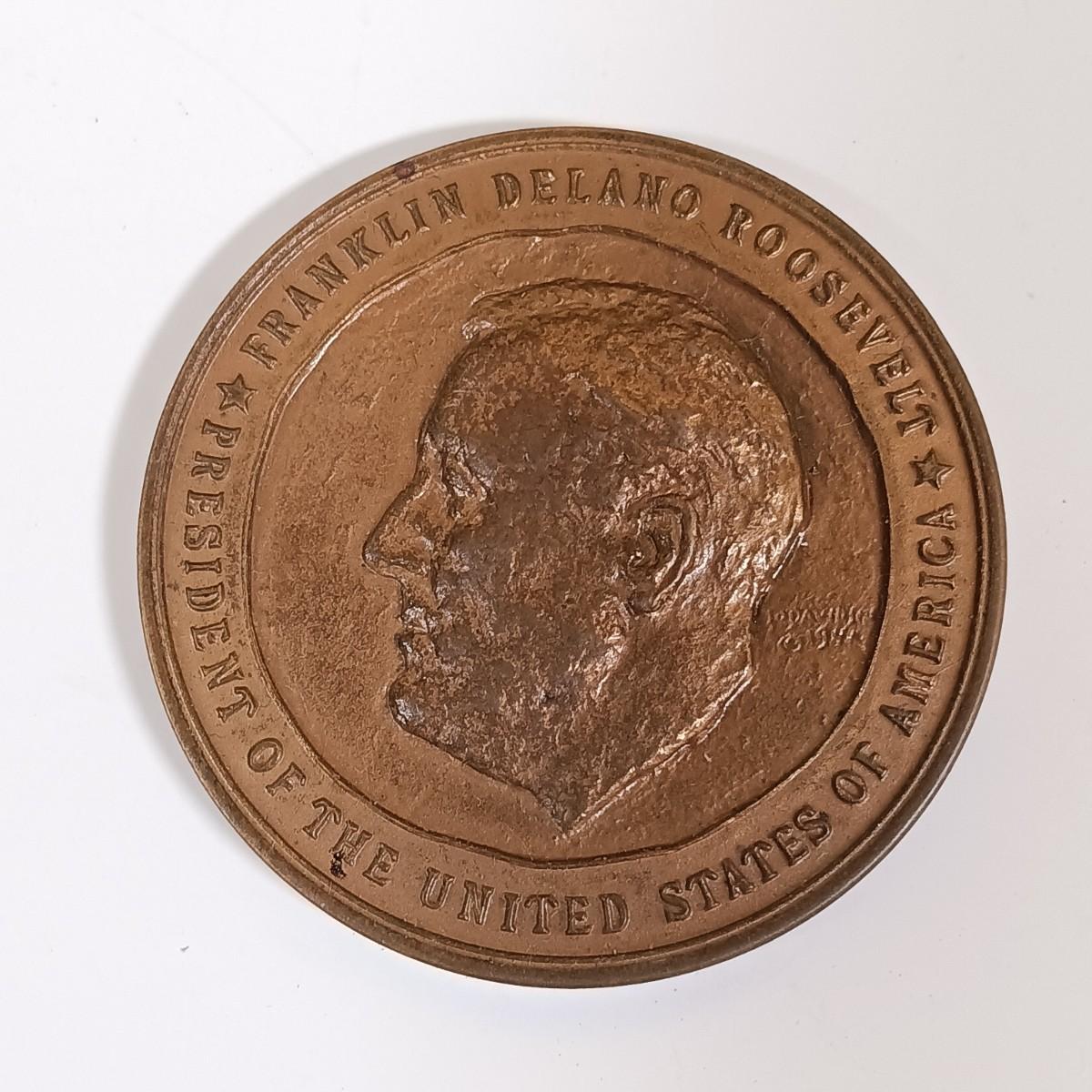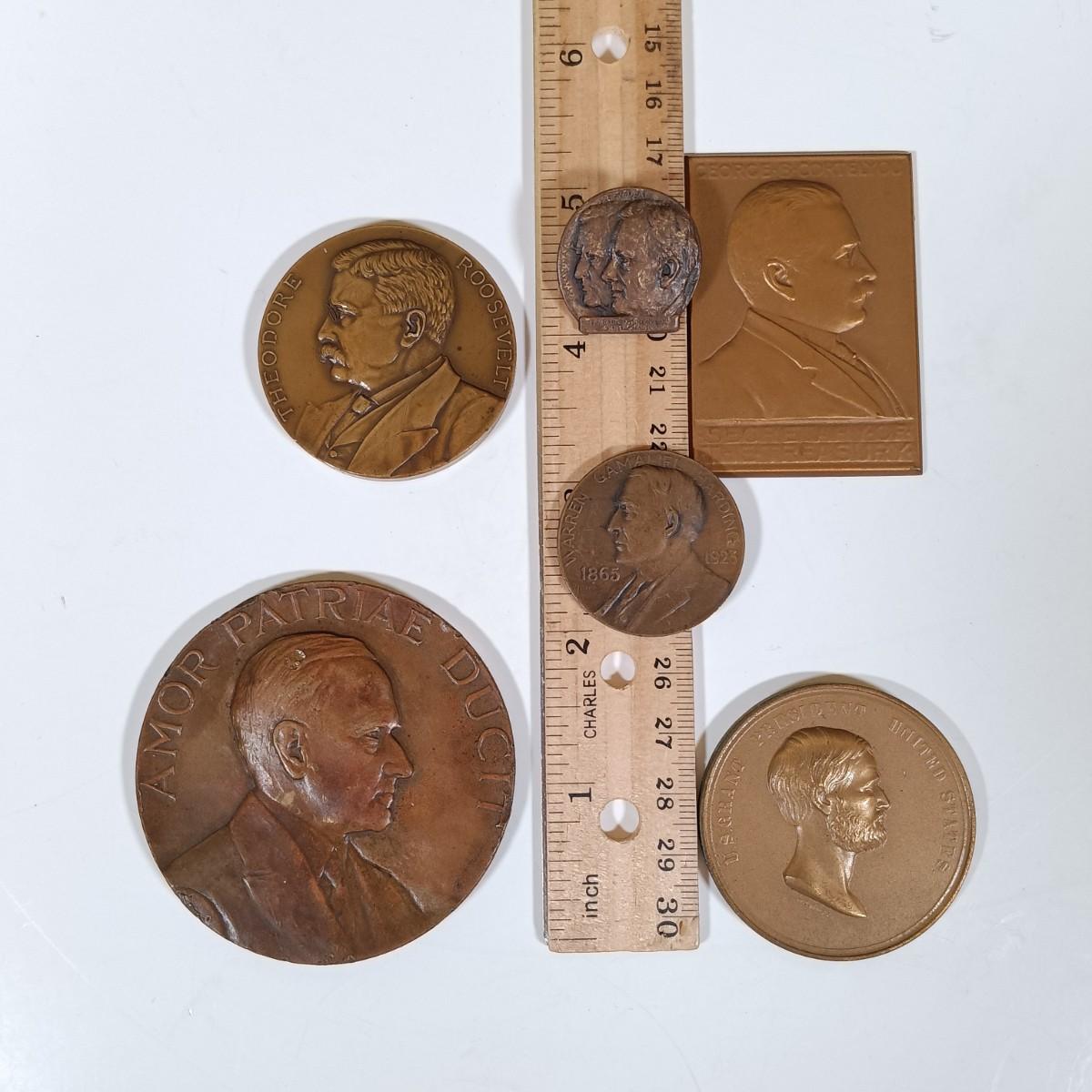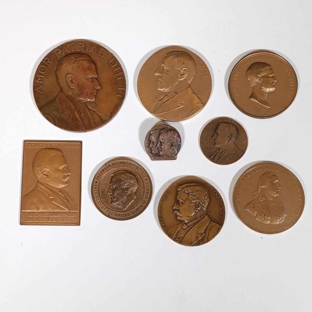 LOT 280: Set of (9) Metal Medallions- FDR, Calvin Coolidge, Warren Harding & More