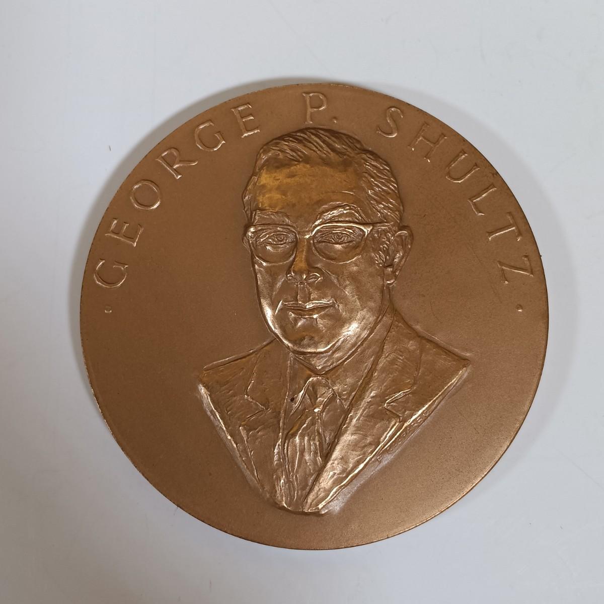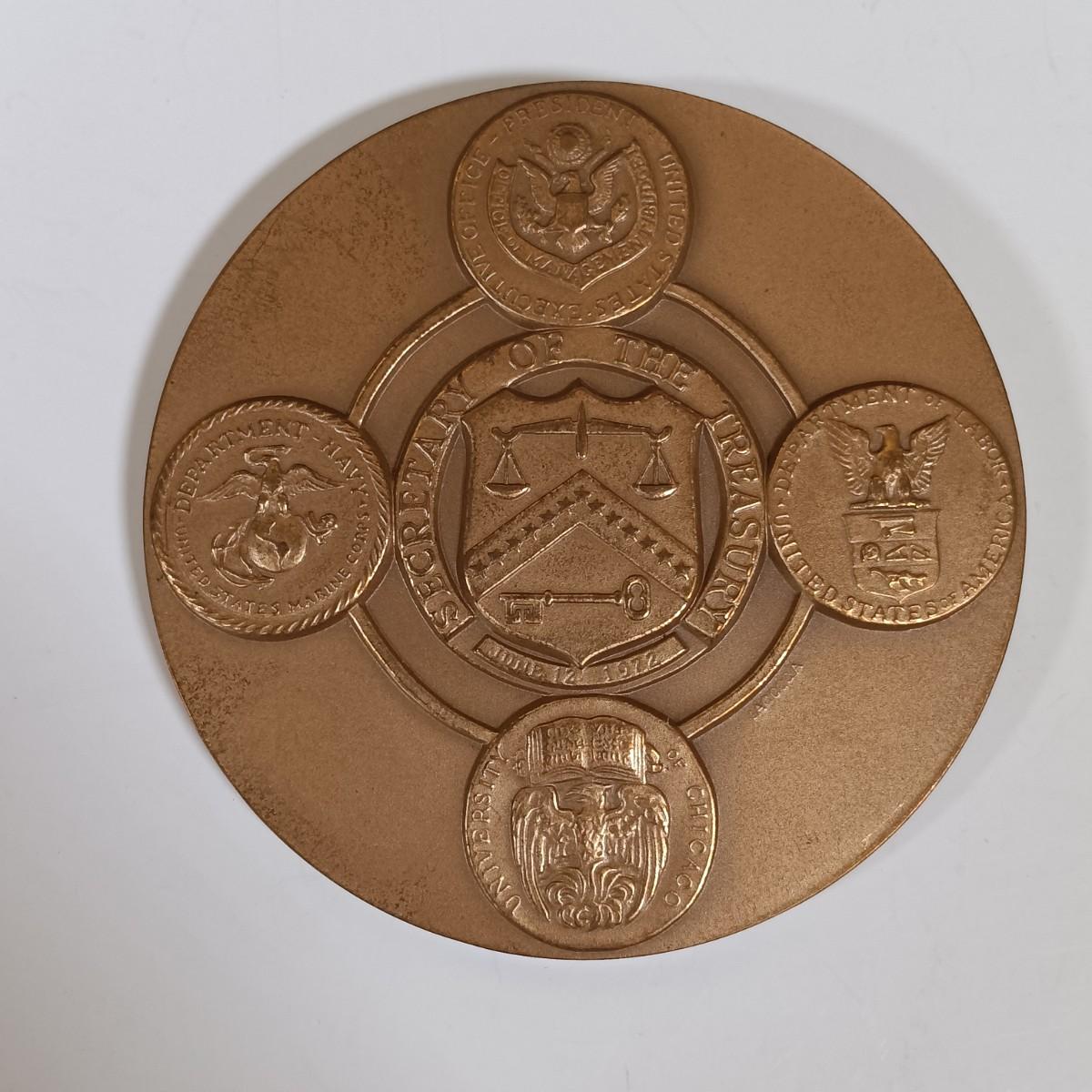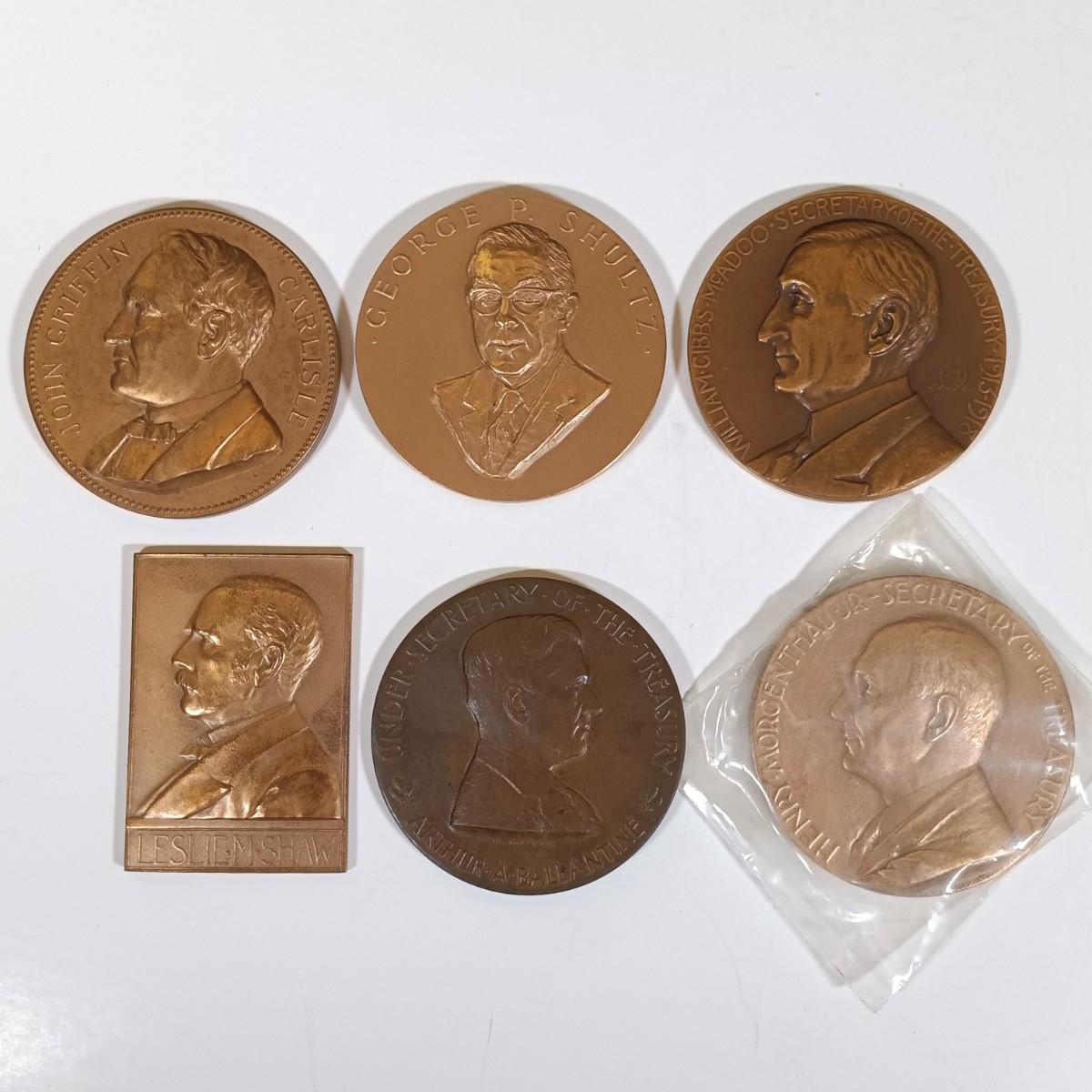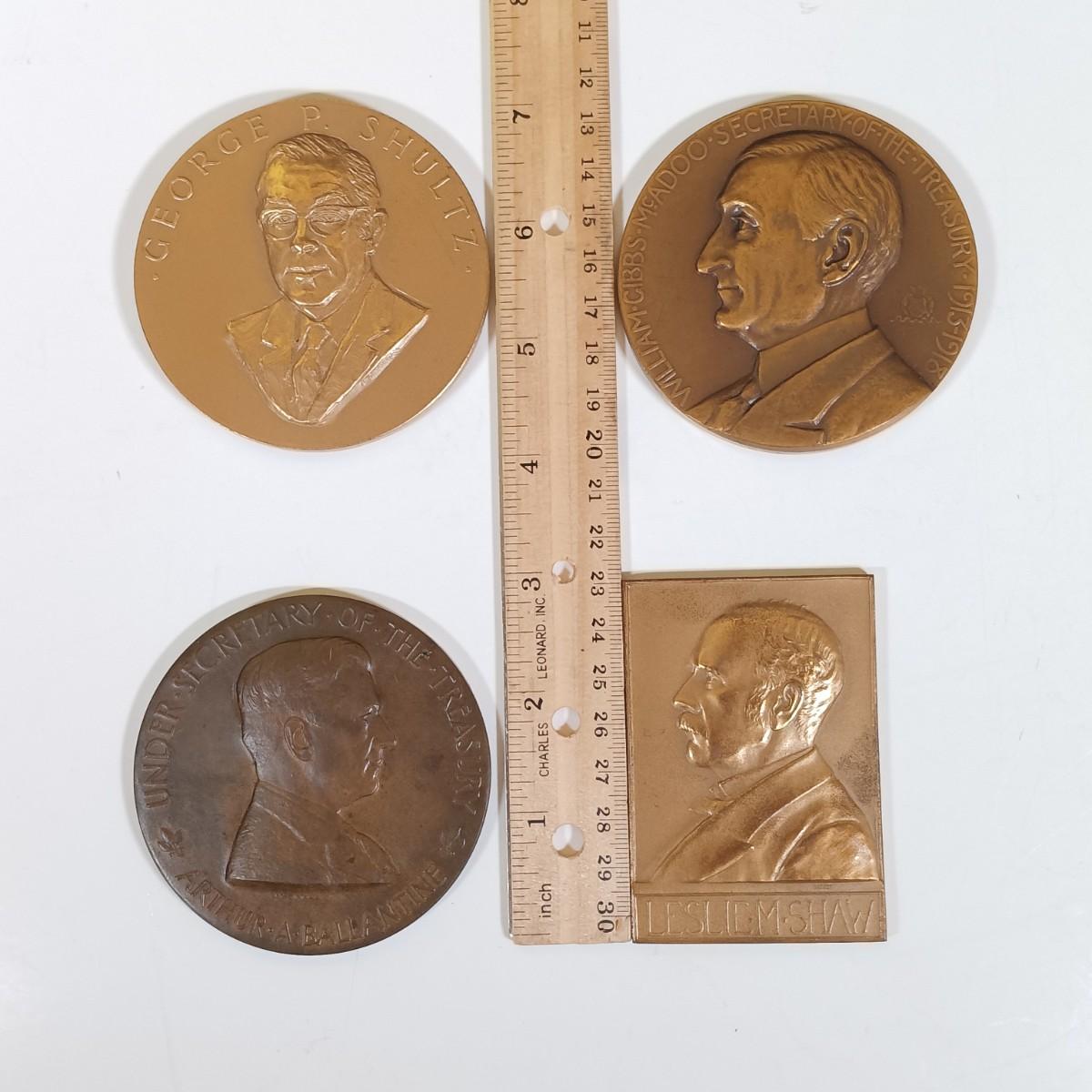 LOT 282: Set of (6) Metal Medallions- John G. Carlisle, George P. Schultz, Leslie M. Shaw & More