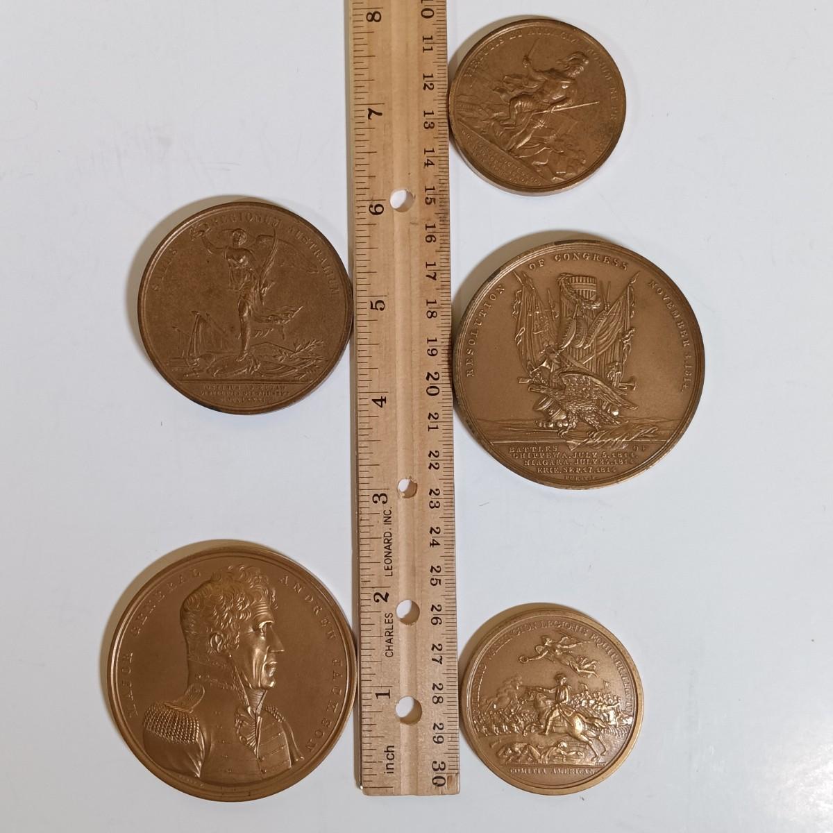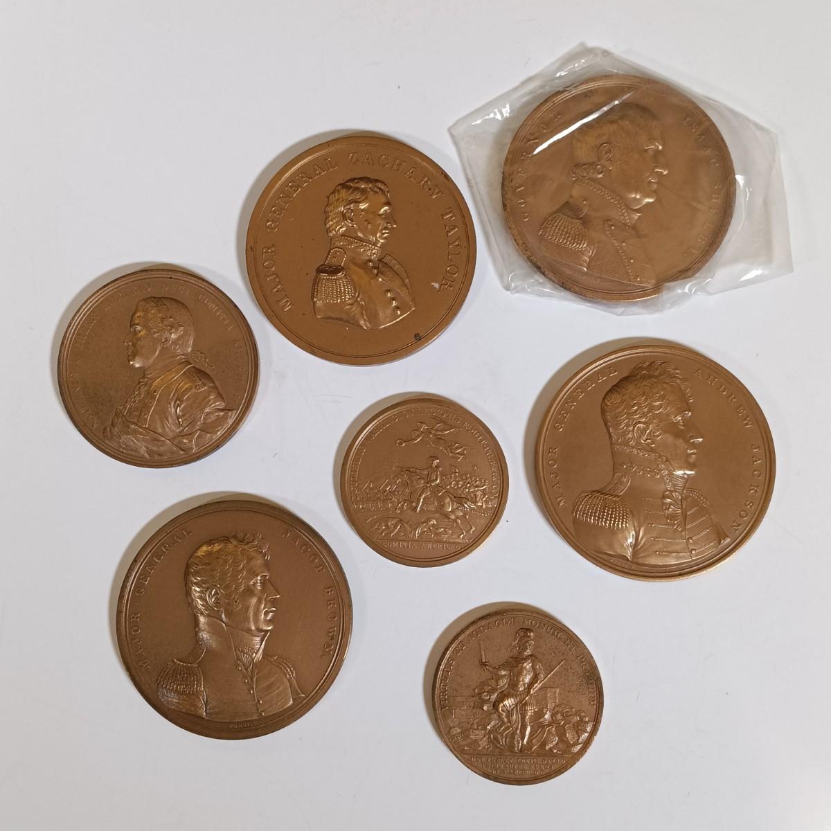 LOT 283: Set of (7) Metal Medallions- Major General Andrew Jackson, Zachary Taylor, Jacob Brown & More