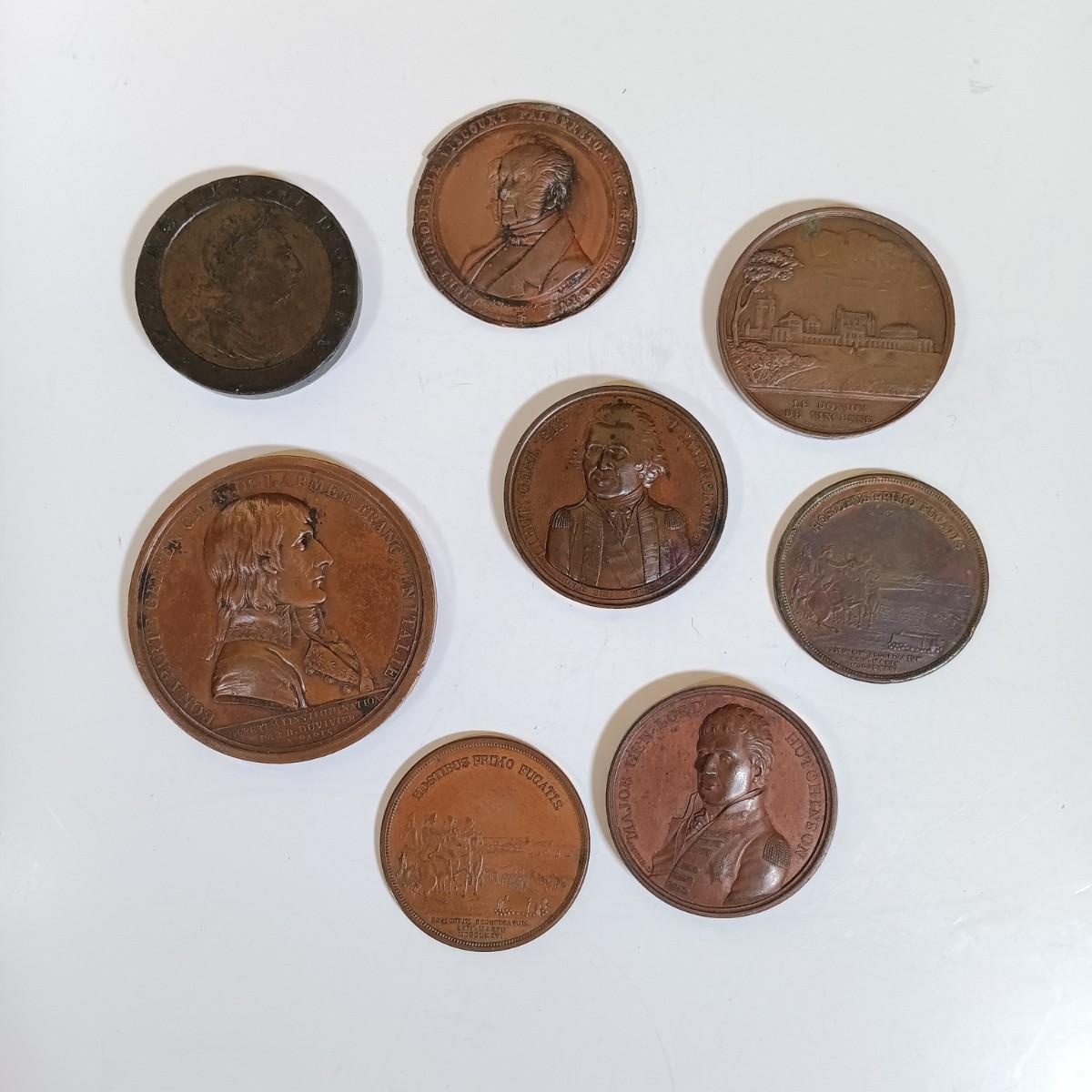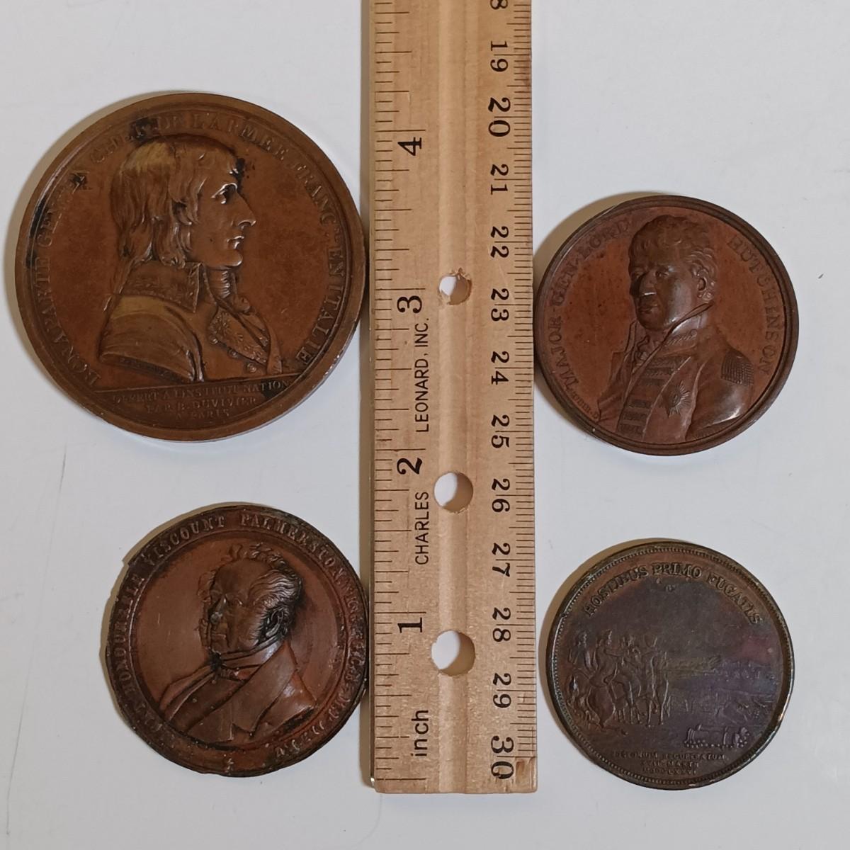 LOT 287: Set of (8) Metal Medallions- Arrival of the English Army in Egypt, Boston, Mass. Evacuation Day & More