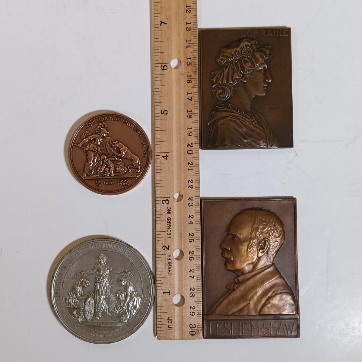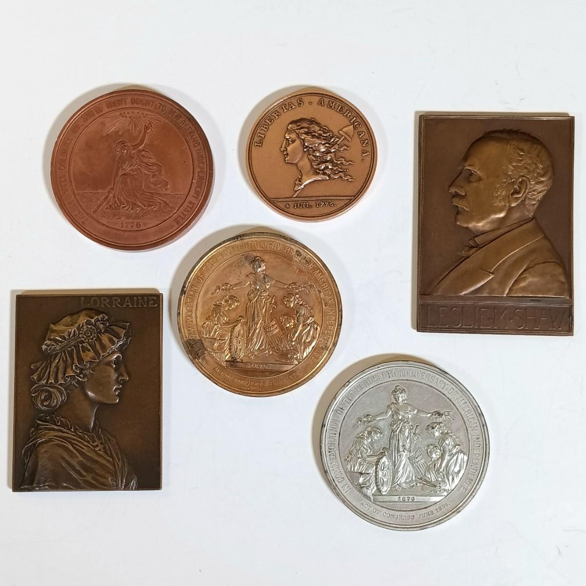 LOT 288: Set of (6) Metal Medallions- Lorraine France, Hundredth Anniversary of American Independence & More