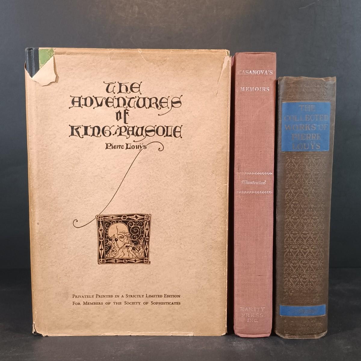LOT 294: Privately Printed 1930 Casanova's Memoirs and The Adventures of King Pausole w/ The Collected Works of Pierre Louÿs 1932