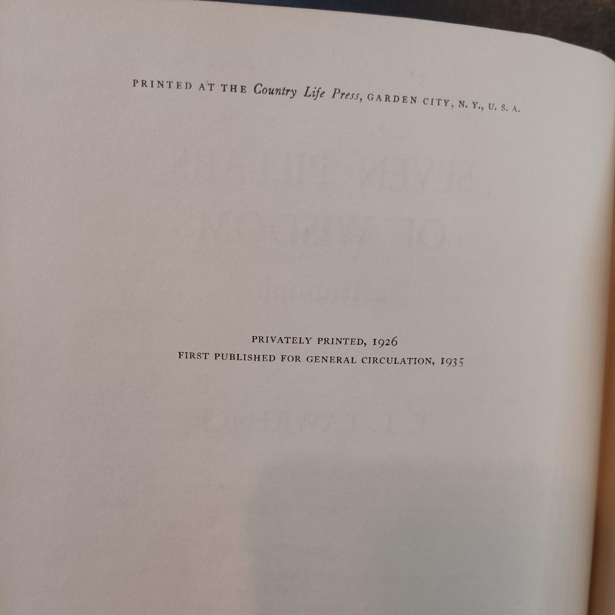 LOT 295: T.E. Lawrence' 1935 Seven Pillars of Wisdom, Pease' Shanghai Passage 1929 & The High Barbaree 1945