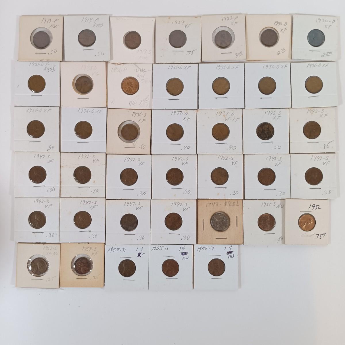 LOT 297: Set of (40) Wheat Pennies 1913 - 1955