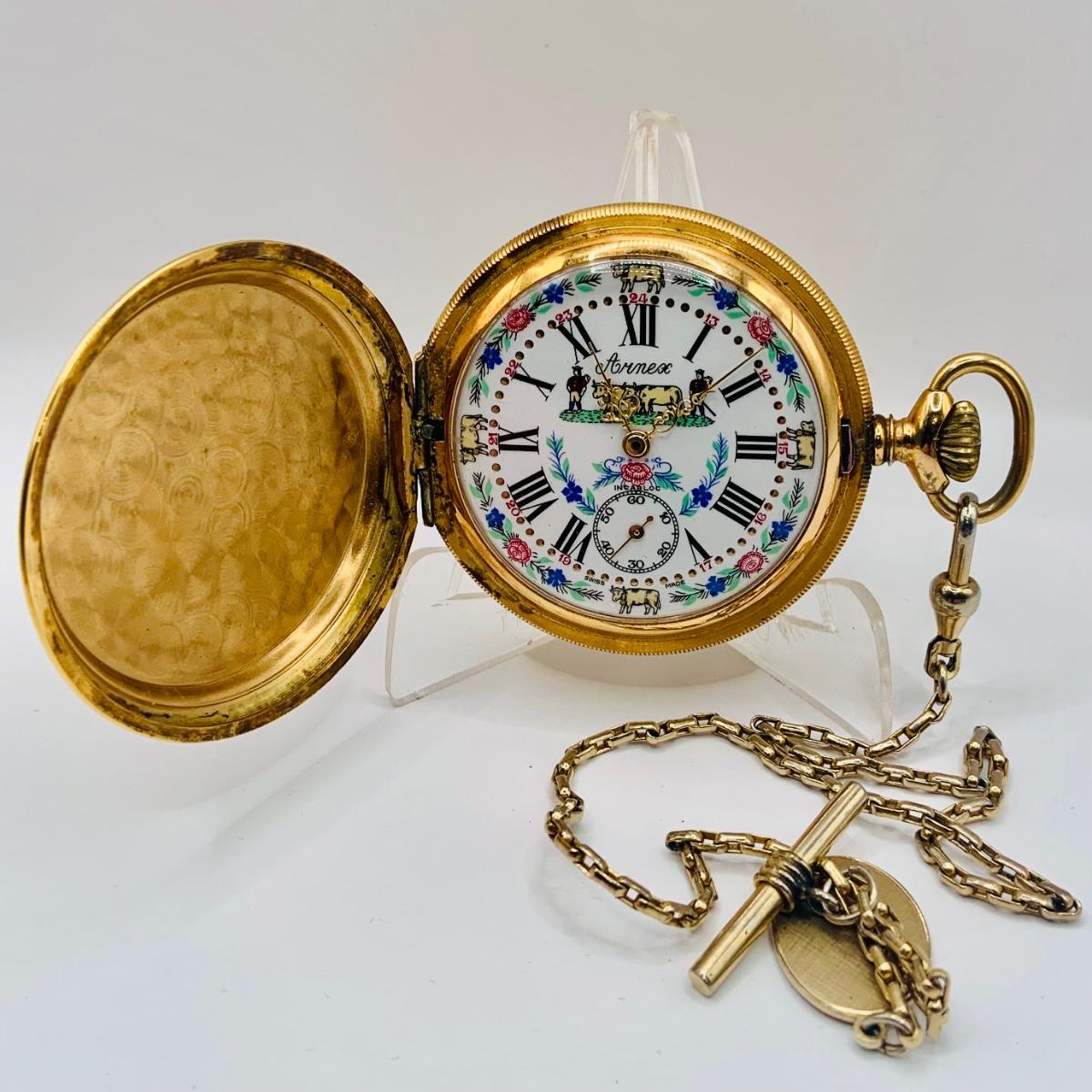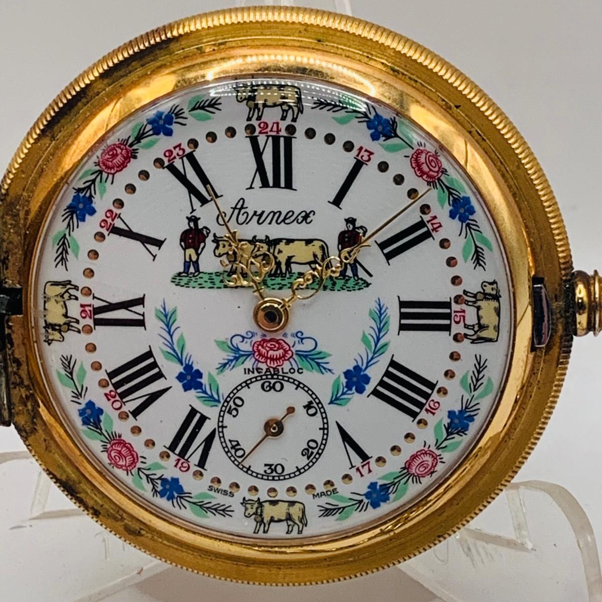 LOT 299: Vintage Arnex Swiss Pocket Watch with Chain