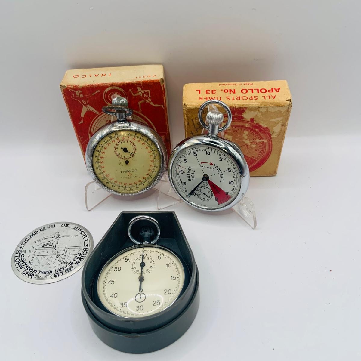 LOT 302: Assortment of Vintage Stop Watches - Swiss Made Apollo and Thales and One From the USSR