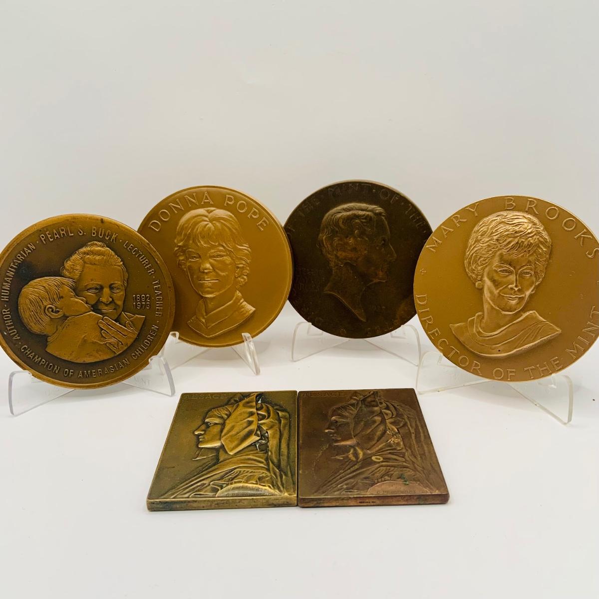 LOT 304: Collection of Six (6) Bronze Medals and Medallions Featuring Notable Women and More
