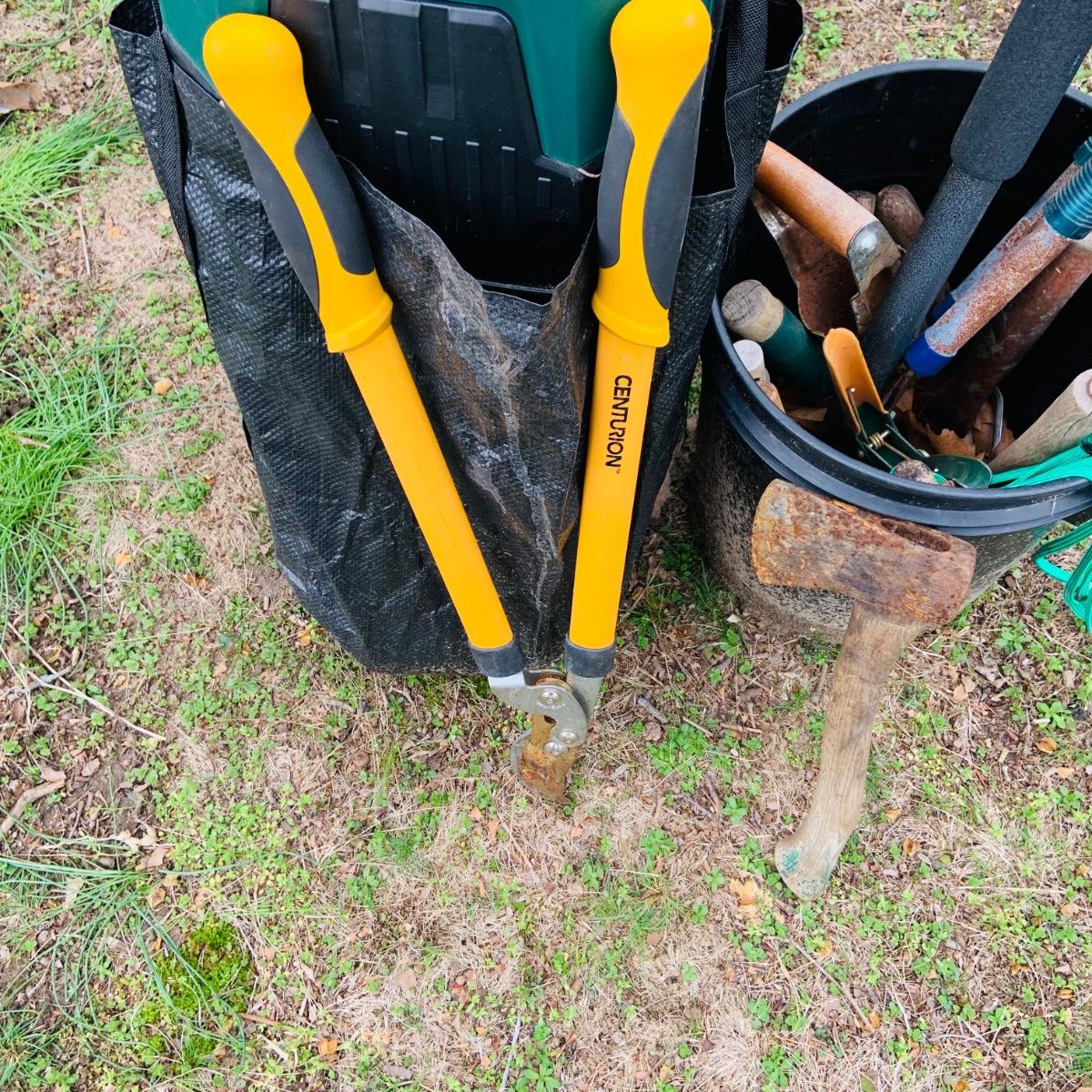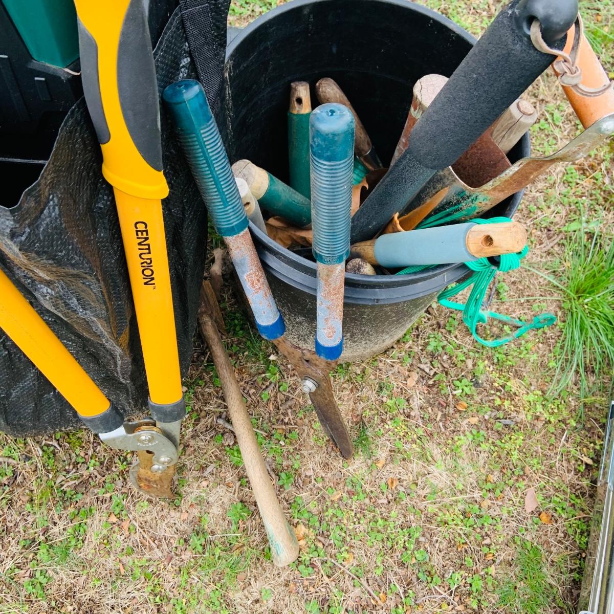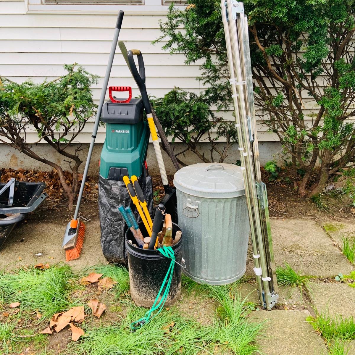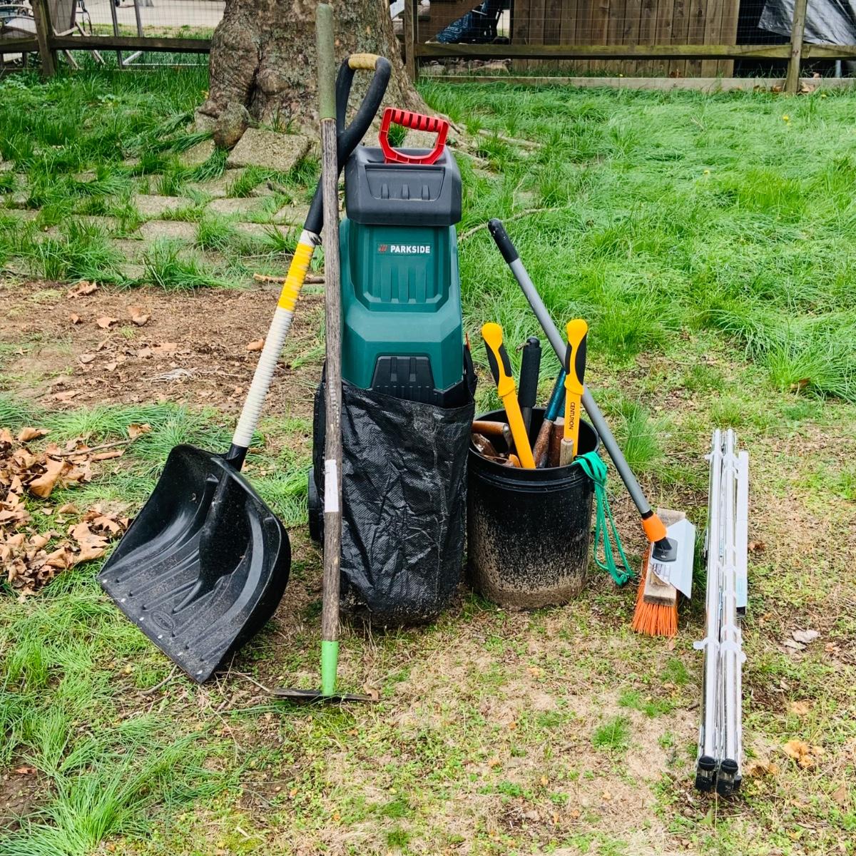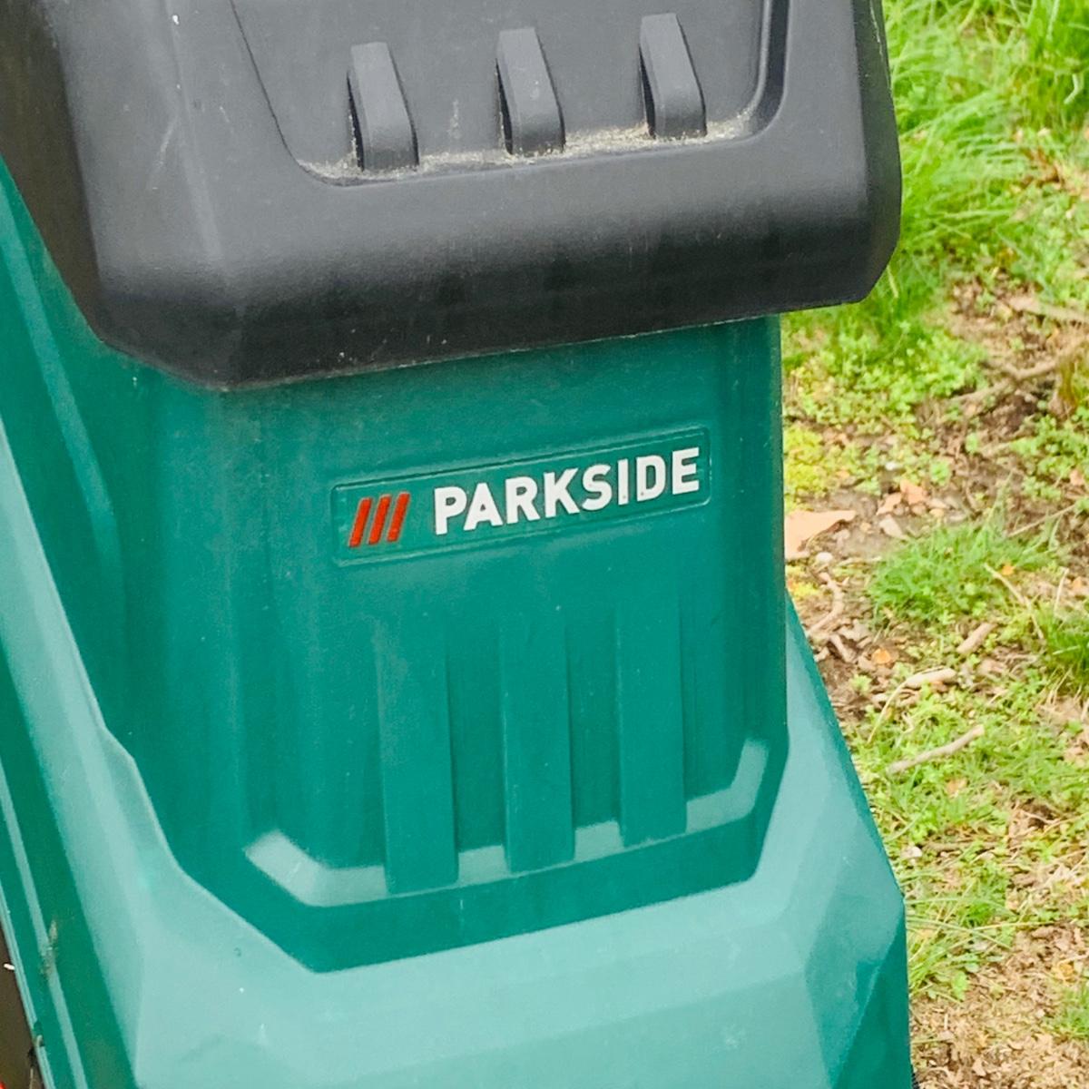 LOT 321: Lawn Care Tool and Supplies Including a Parkside Model PMH 2400 A2 Electric Chipper/Shredder, Metal Trash Can with Lid Tools and More