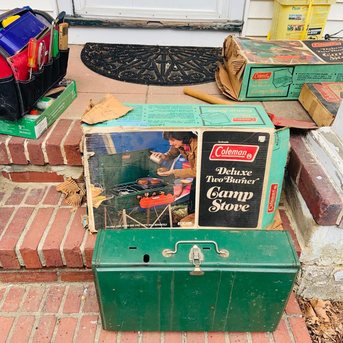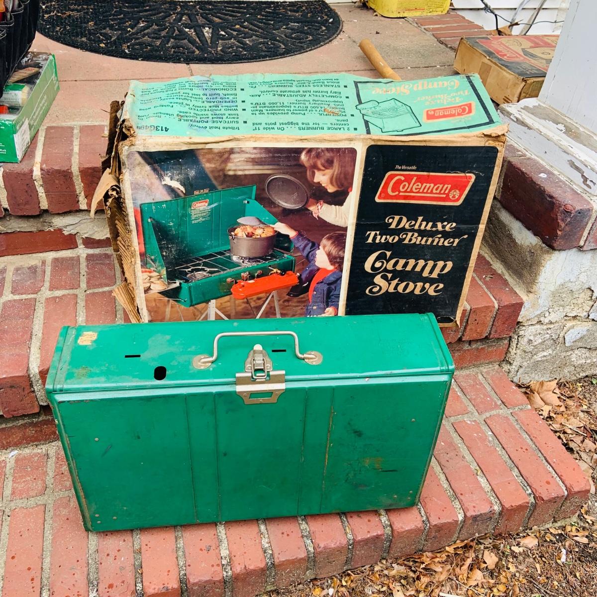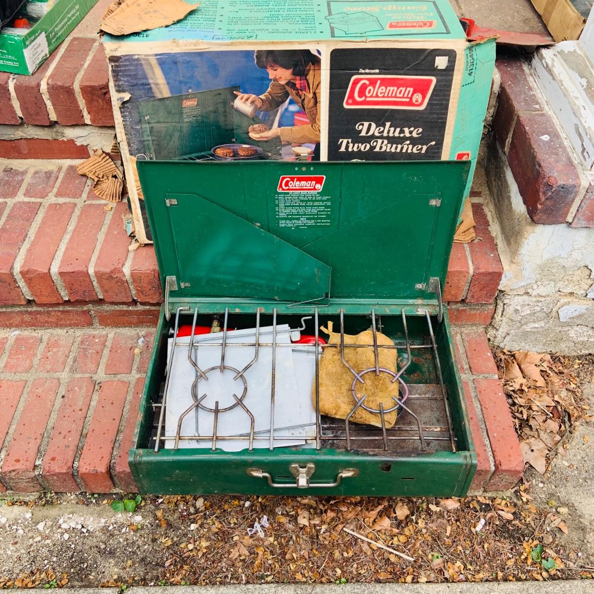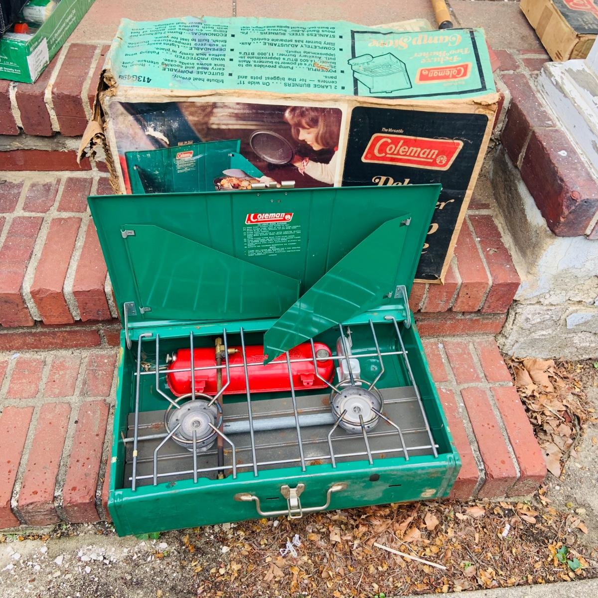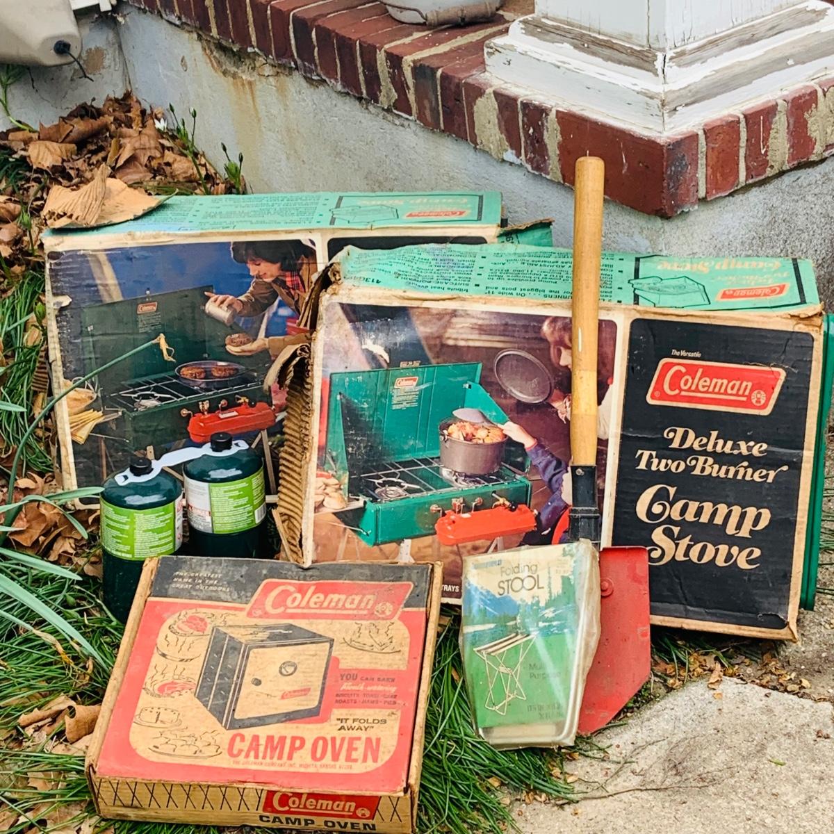 LOT 323: Coleman Camping Stoves and Oven and Other Camping Tools