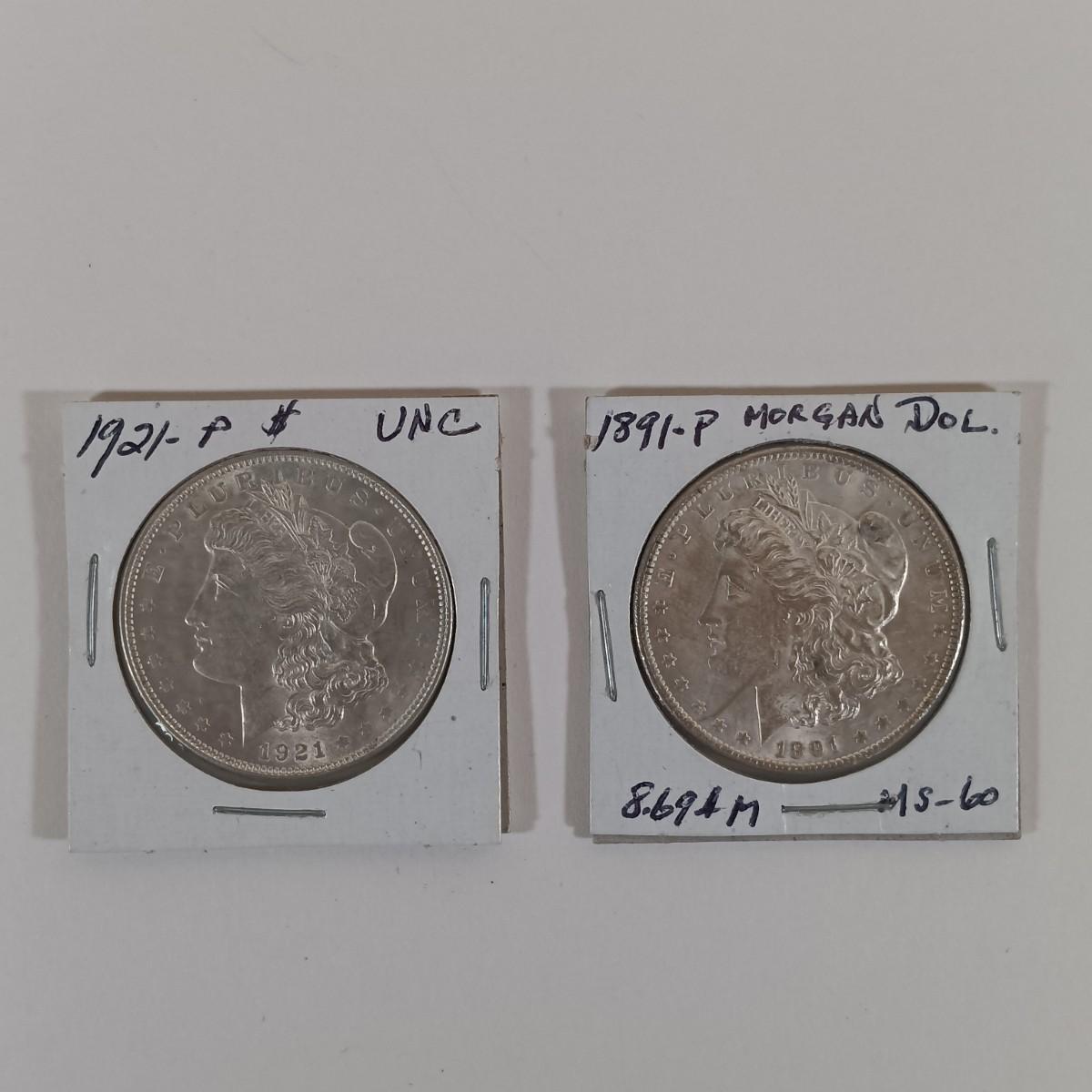 LOT 327: Morgan Silver Dollars 1891 & 1921