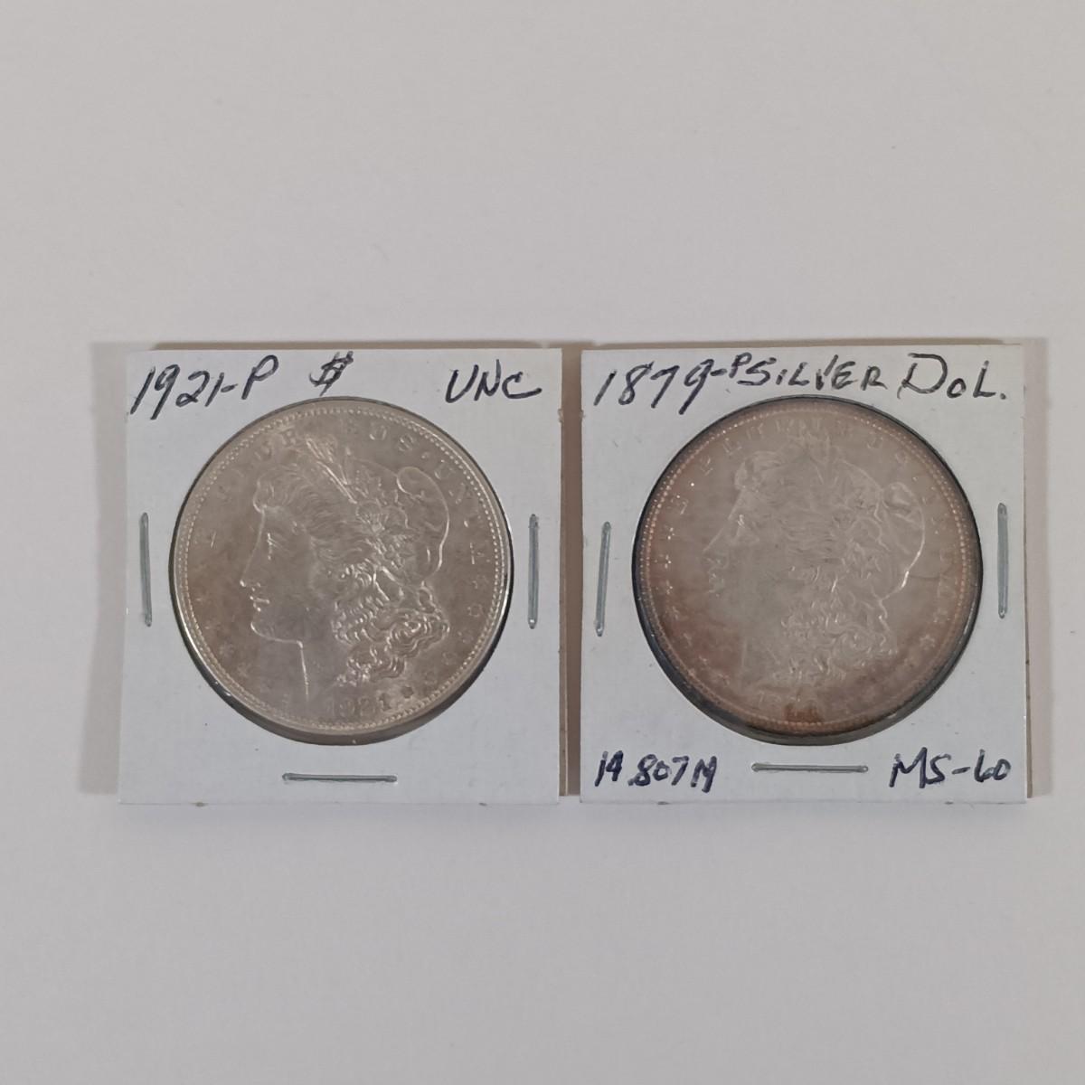 LOT 328: Morgan Silver Dollars 1879 & 1921