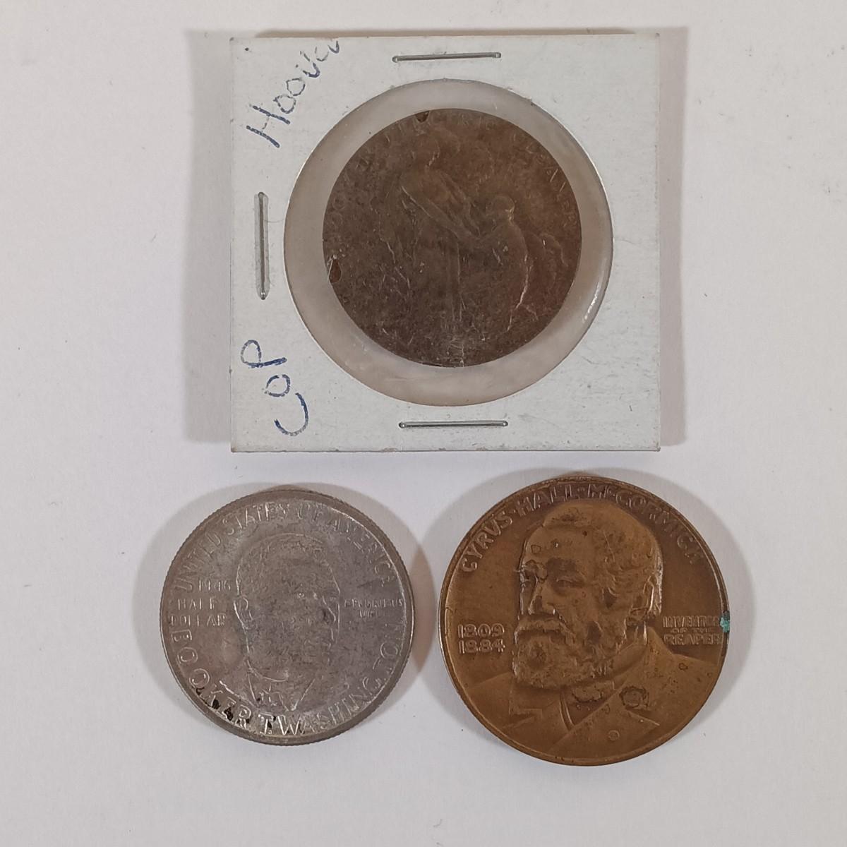 LOT 335: Hoover Exhibit Souvenir Coin, International Harvester Co. Coin & Booker T. Washington Coin