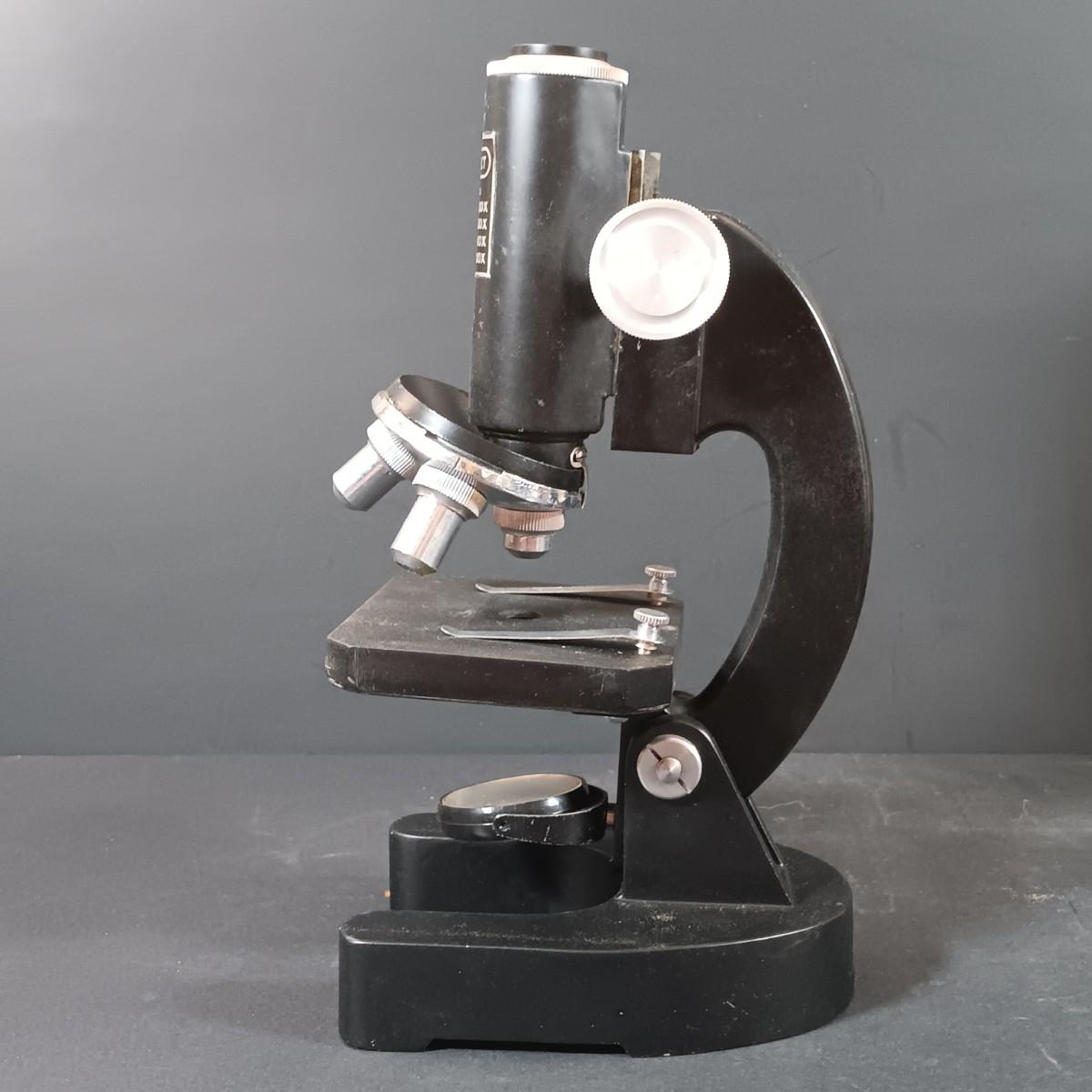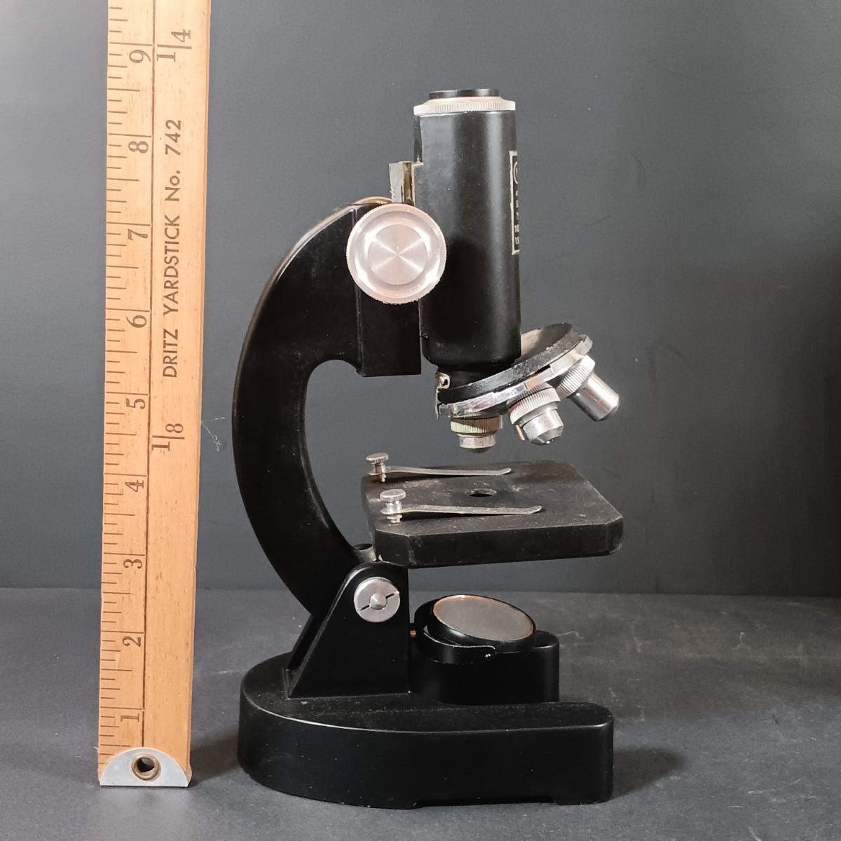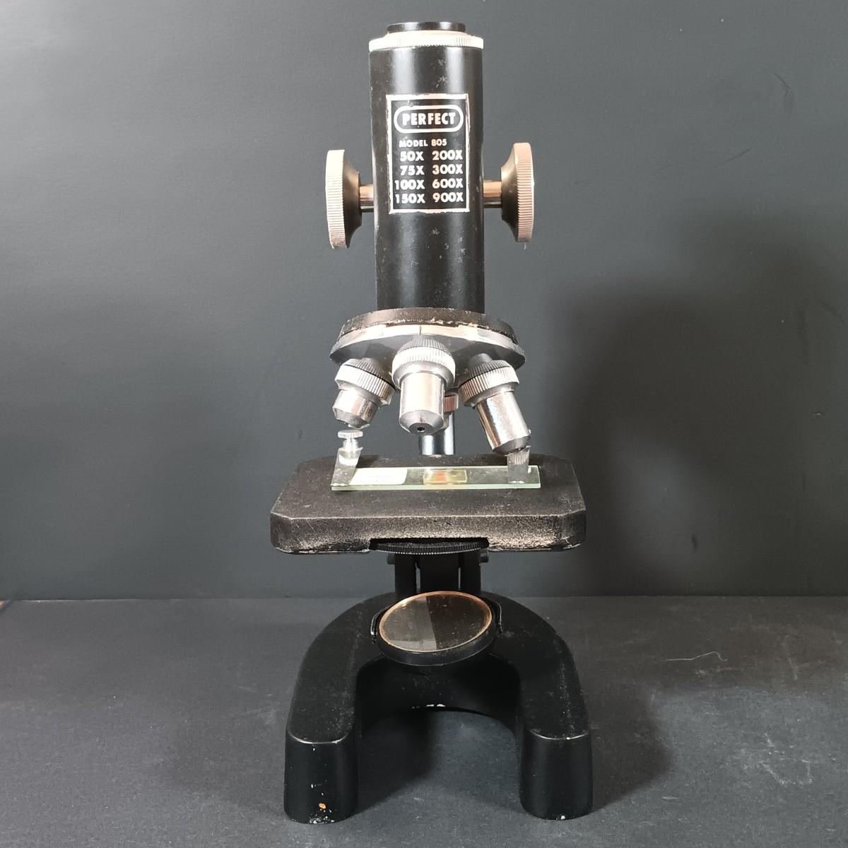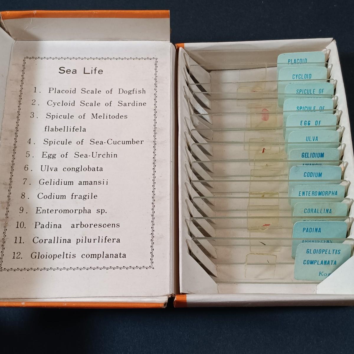LOT 349: Vintage Perfect Model 805 Microscope w/ Sears Sea Life Slide Set, Underwriters Lab. Safety Can & Books