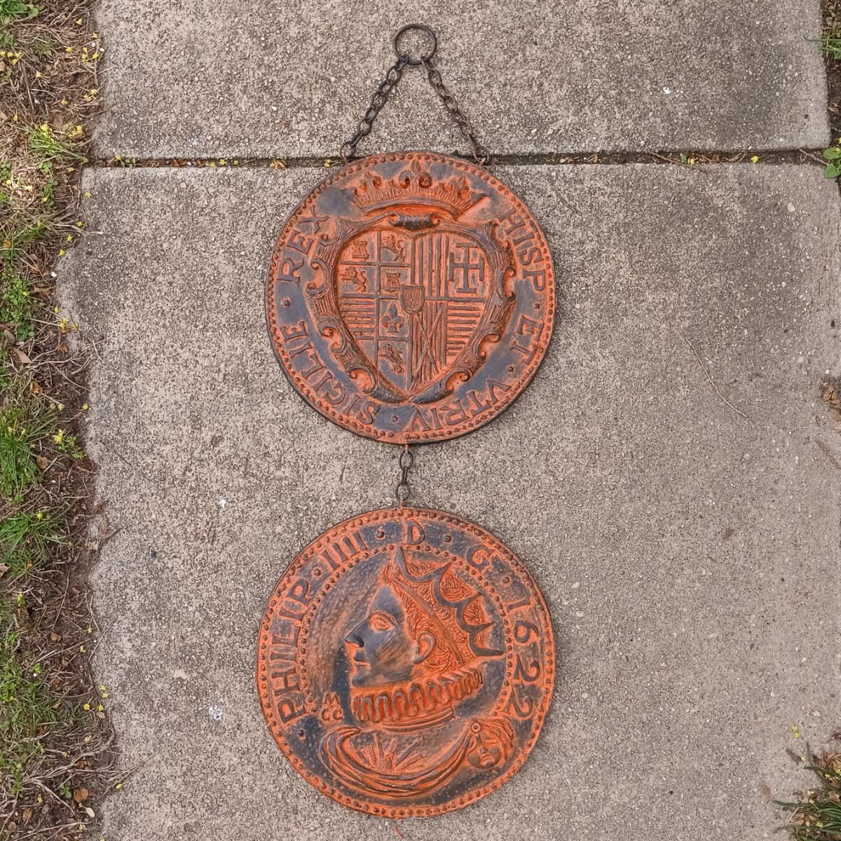 LOT 351: Set of (2) Vintage Medieval Spanish Coin Wall Art
