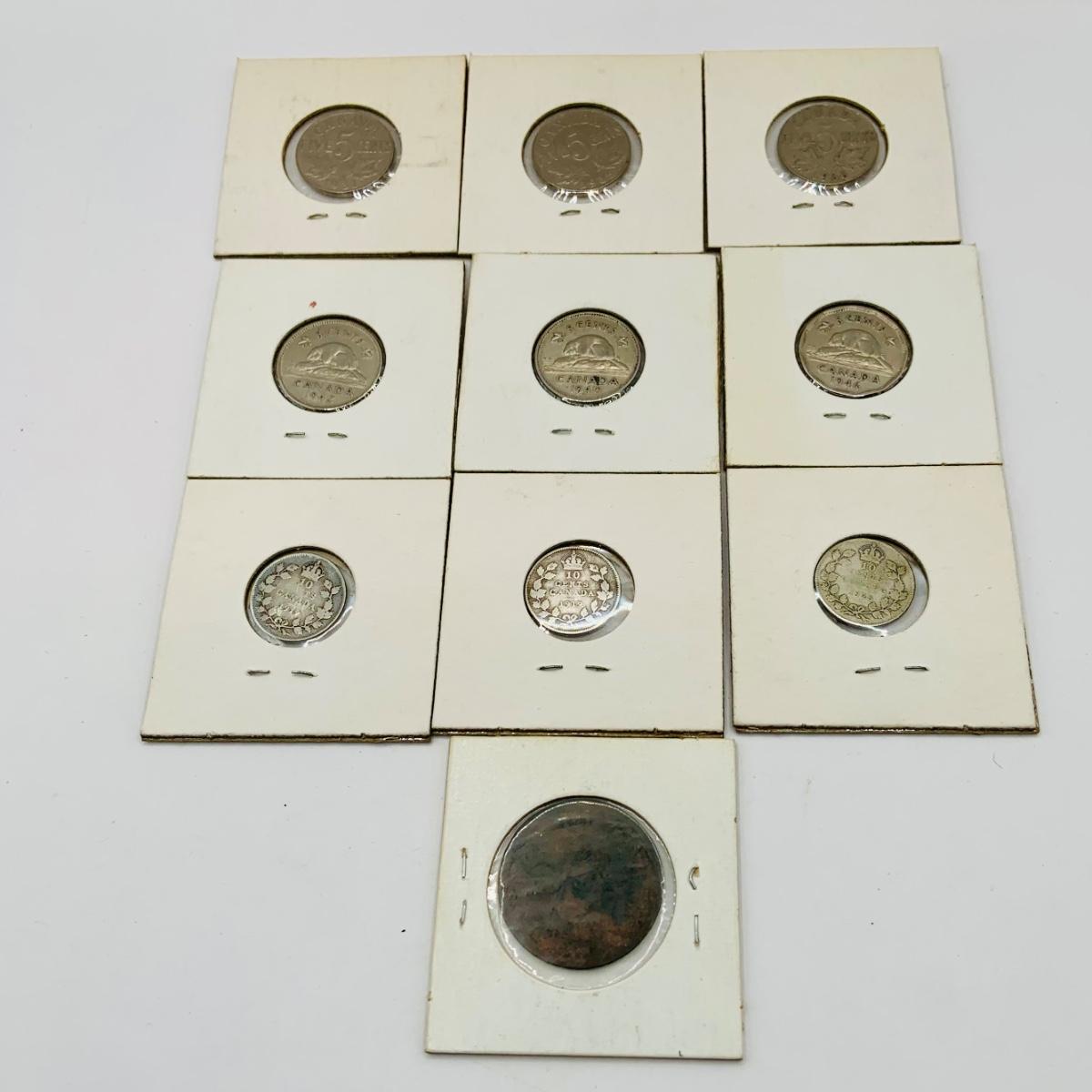 LOT 362: Vintage/Antique Canadian Dimes and 1814 Wellington 1/2 Penny