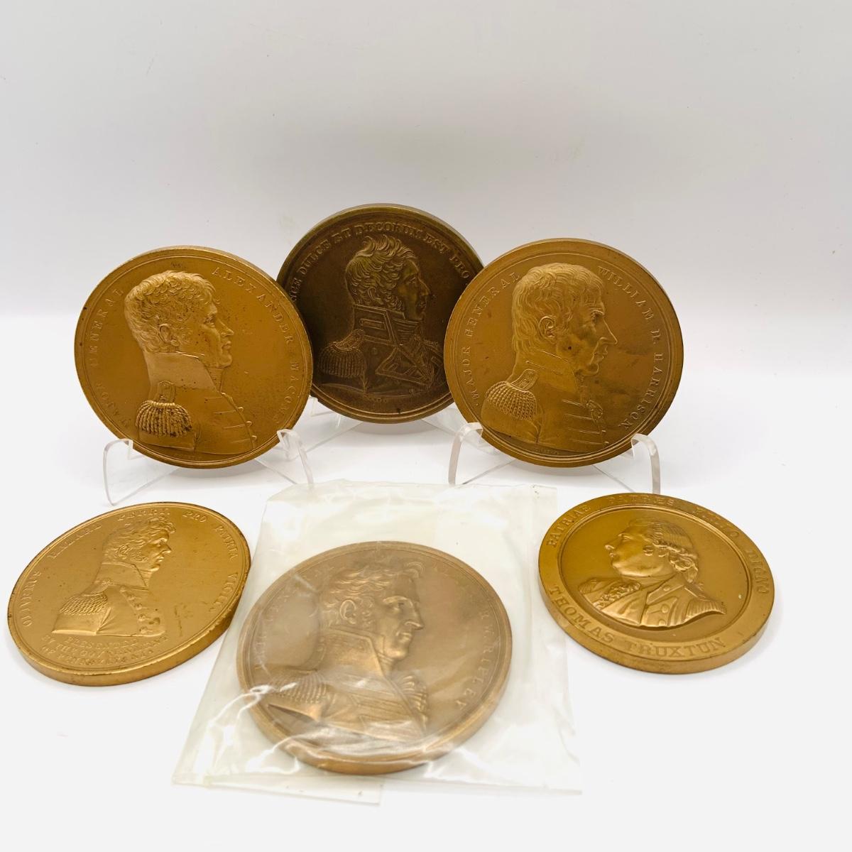 LOT 370: Collection of Six (6) Bronze Medals with Military Figures