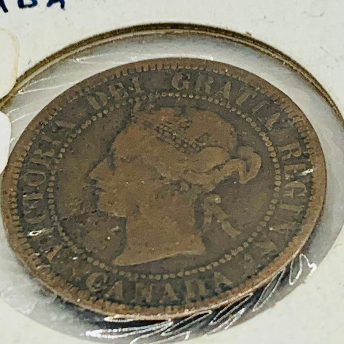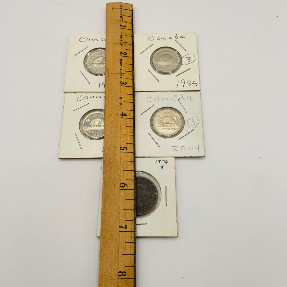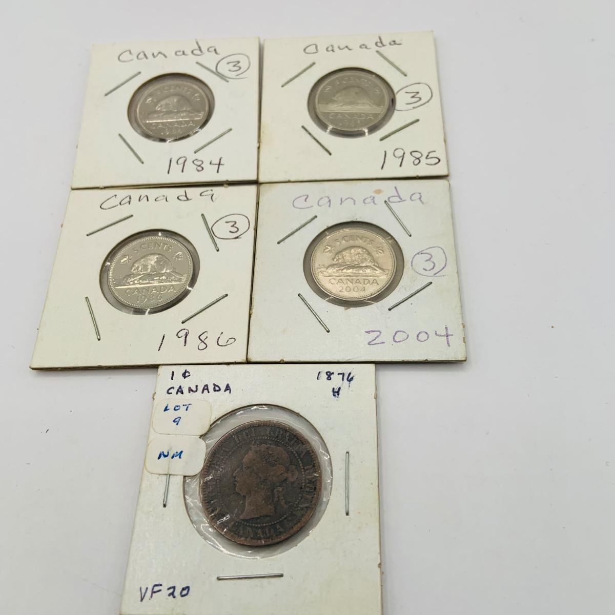 LOT 373: Canadian 5 Cent Piece and 1876 Large One Cent Coin