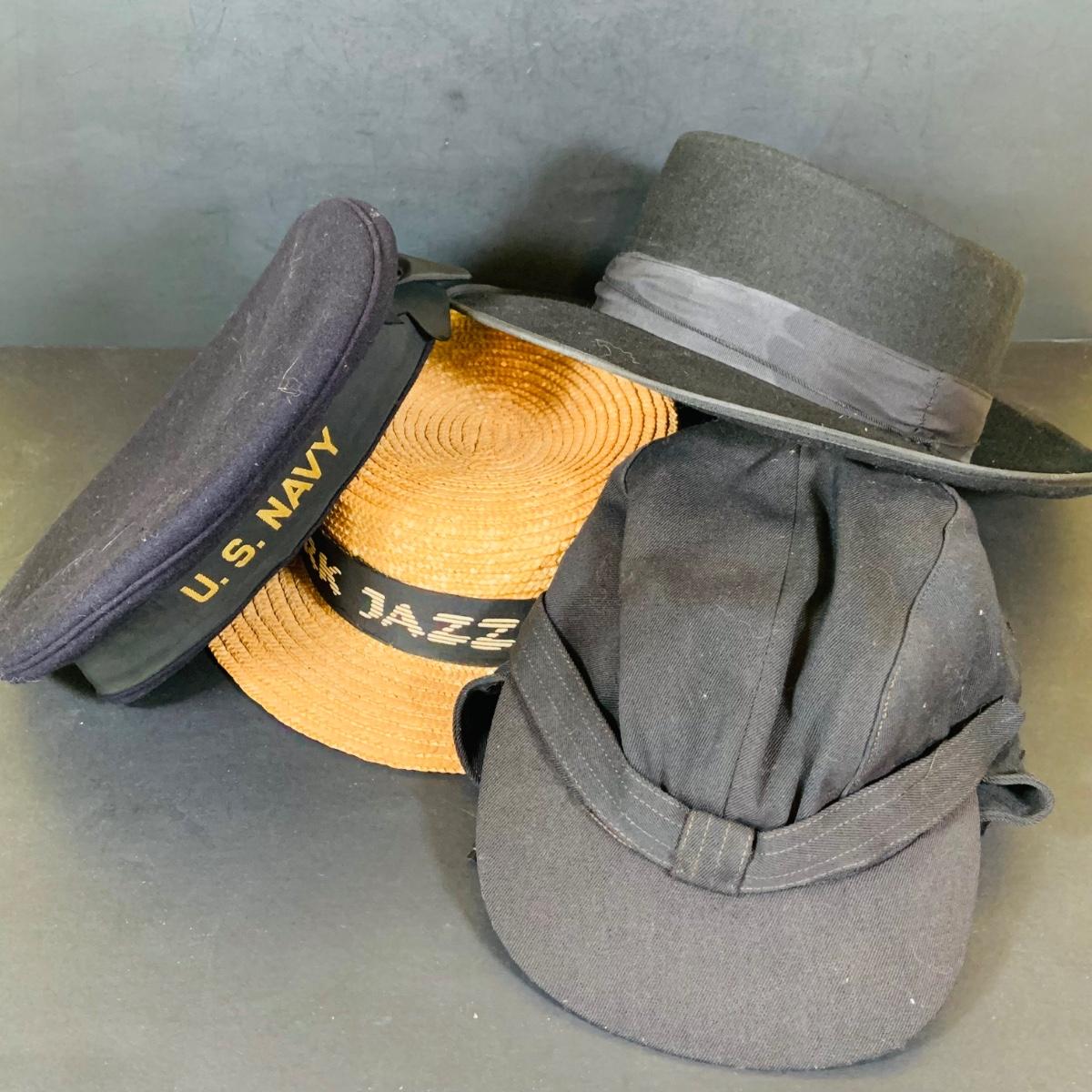 LOT Collection of Vintage Hats - US Navy, Sombrero, Ski Hat and Straw Hat