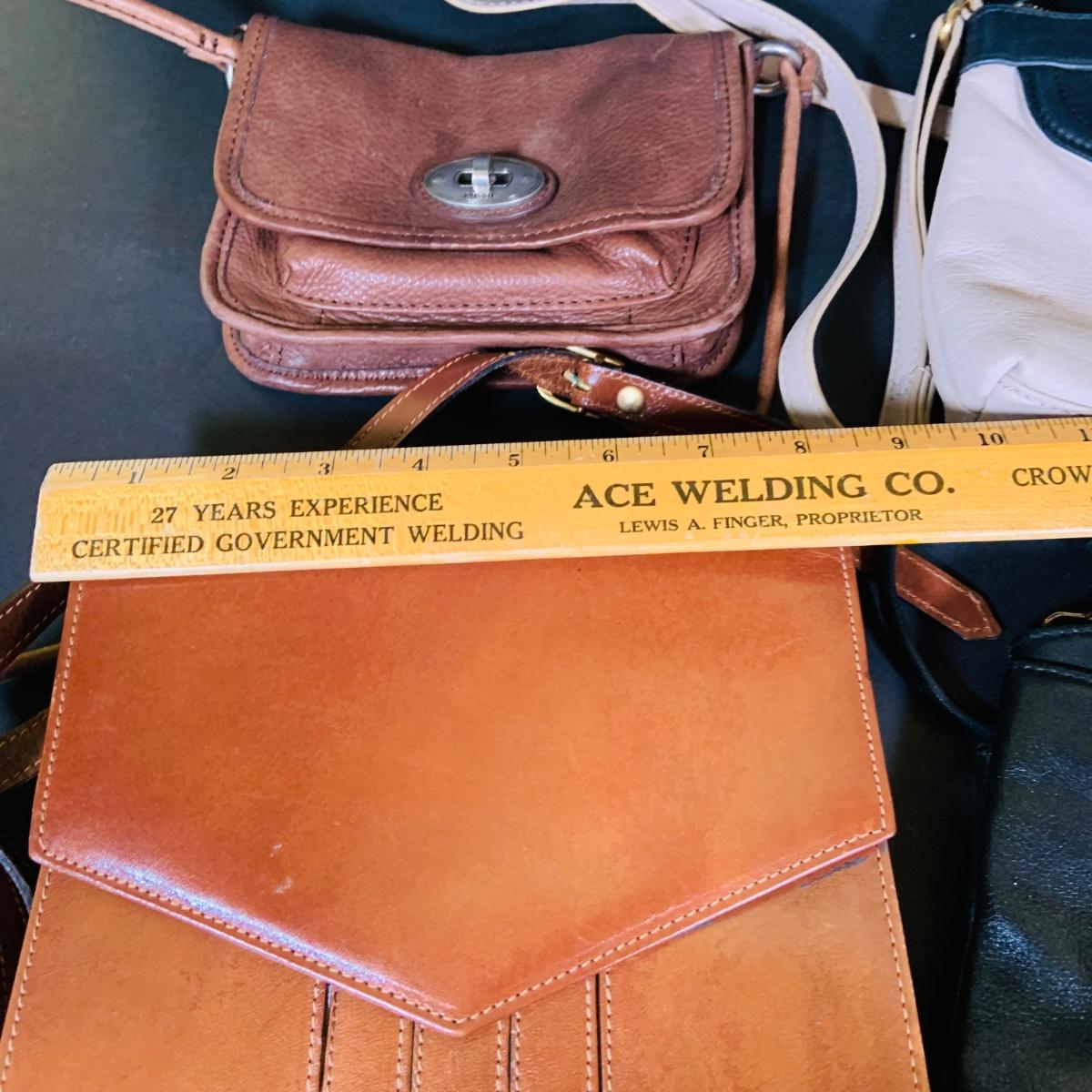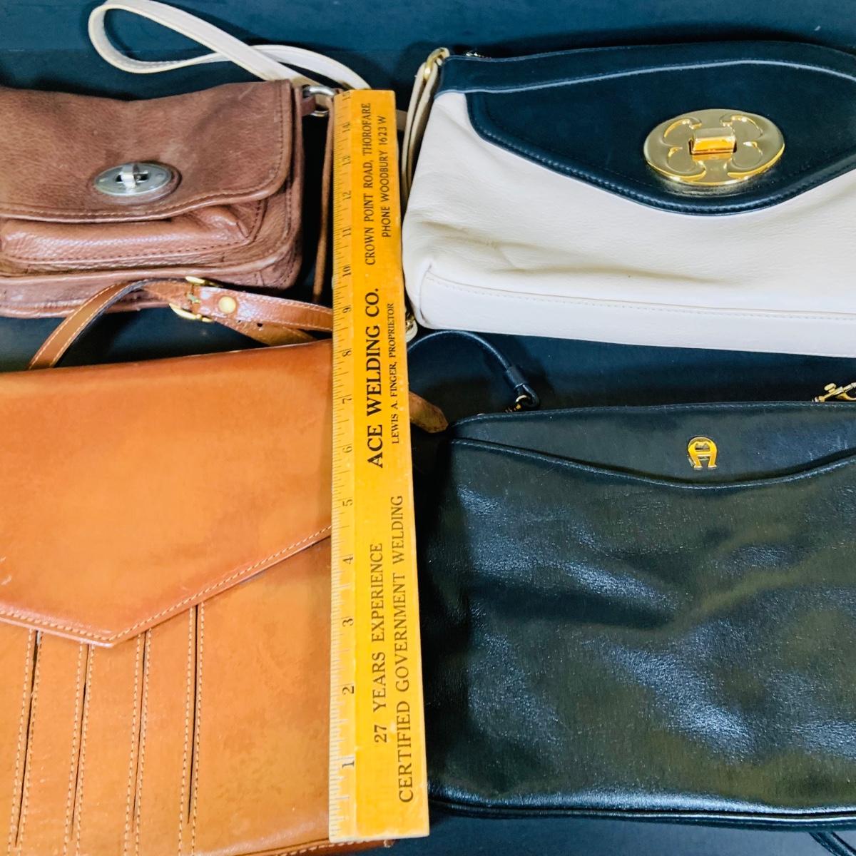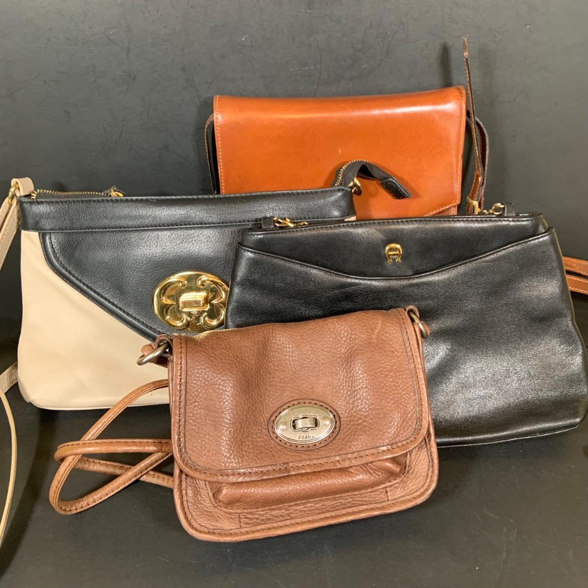 LOT 392: Collection of Vintage Leather Purses/Handbags, by Fossil, Aigner, Emma Fox and More