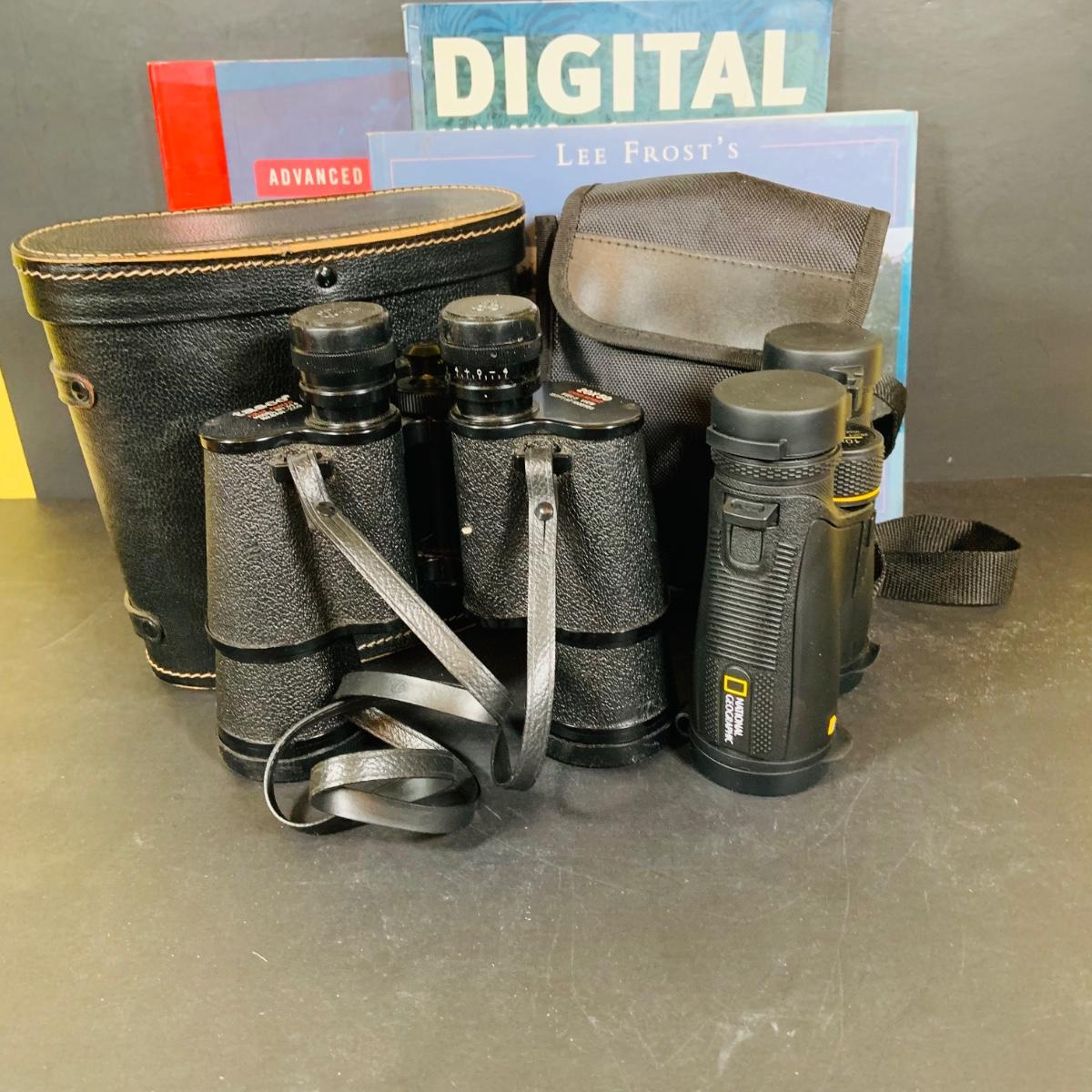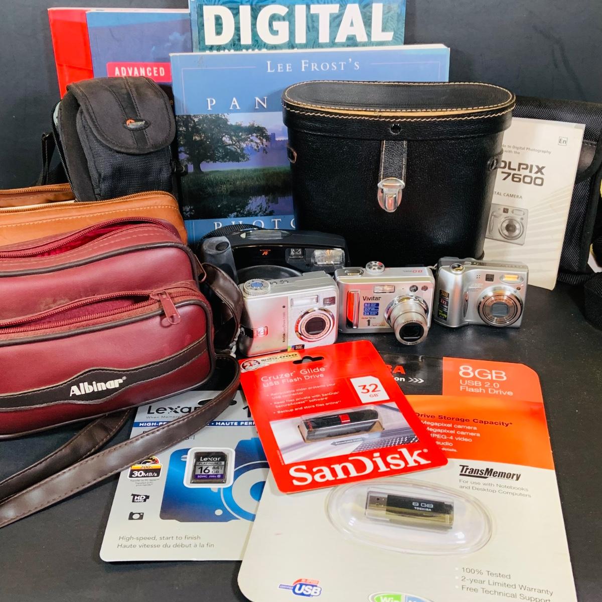 LOT 394: Assortment of Digital Cameras, Binoculars, Books and More