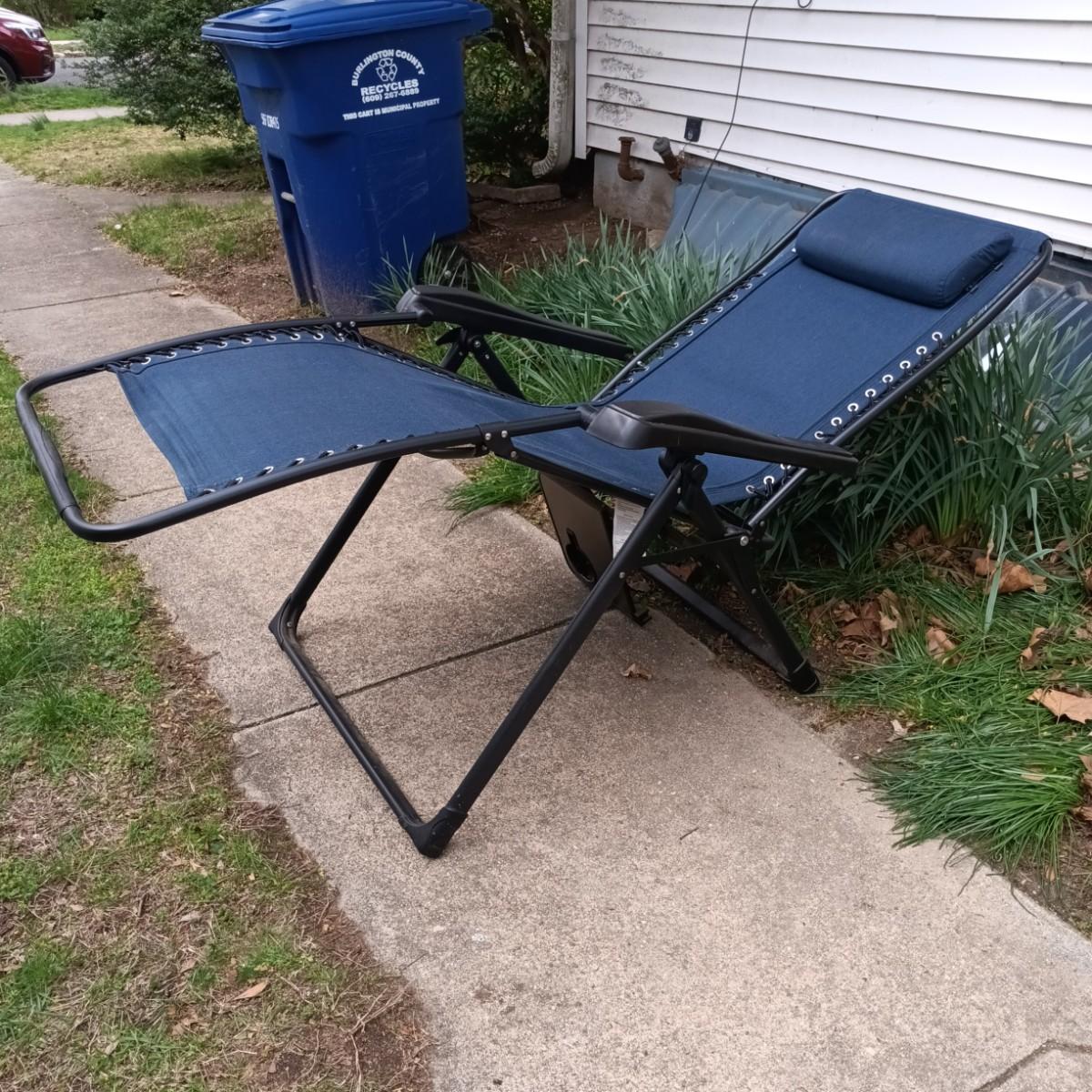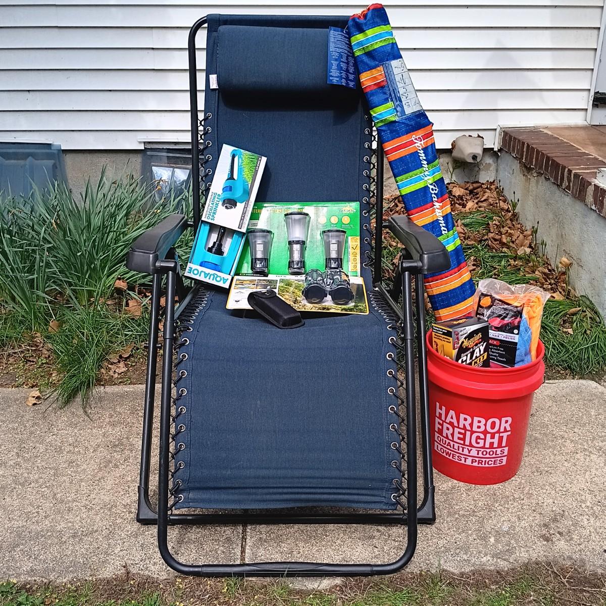 LOT 411: Sunbrella Reclining Chair w/ New/Old Stock Items