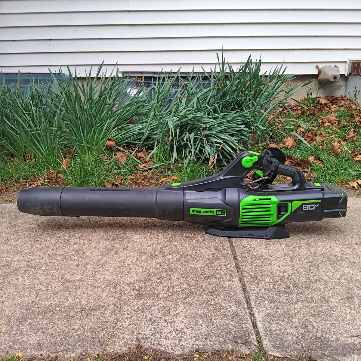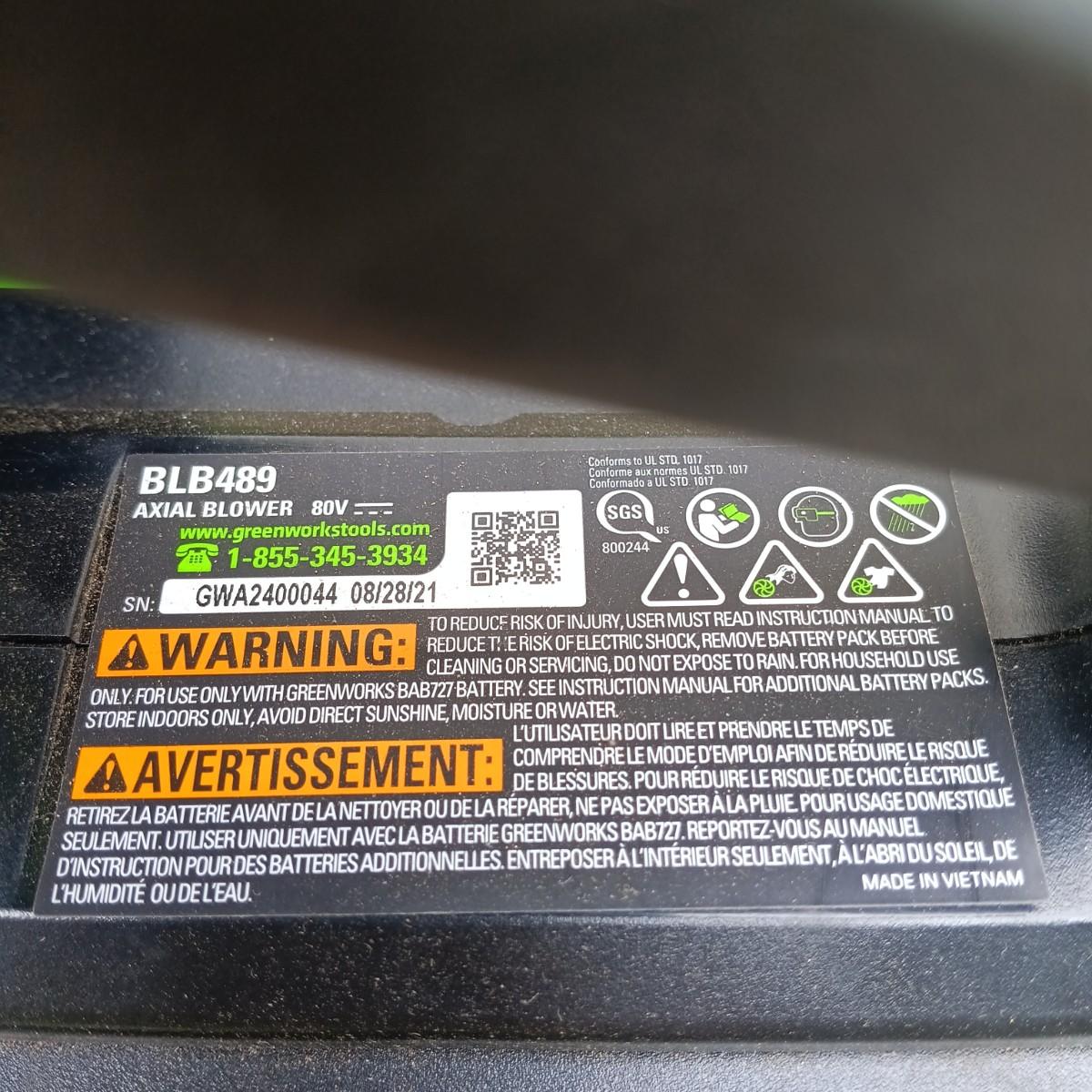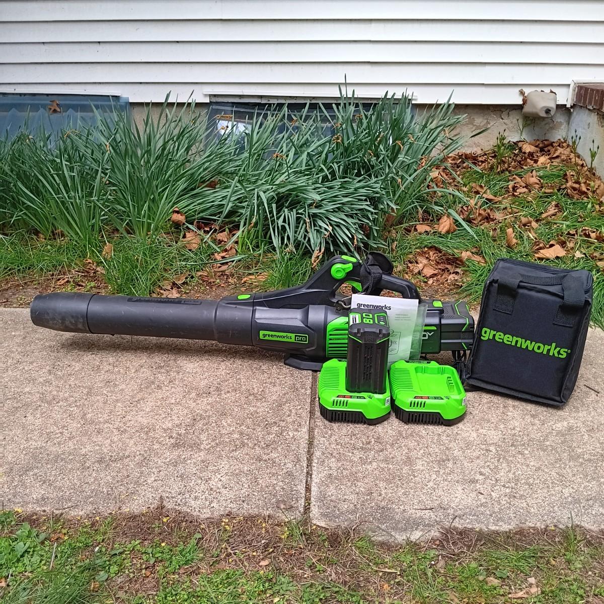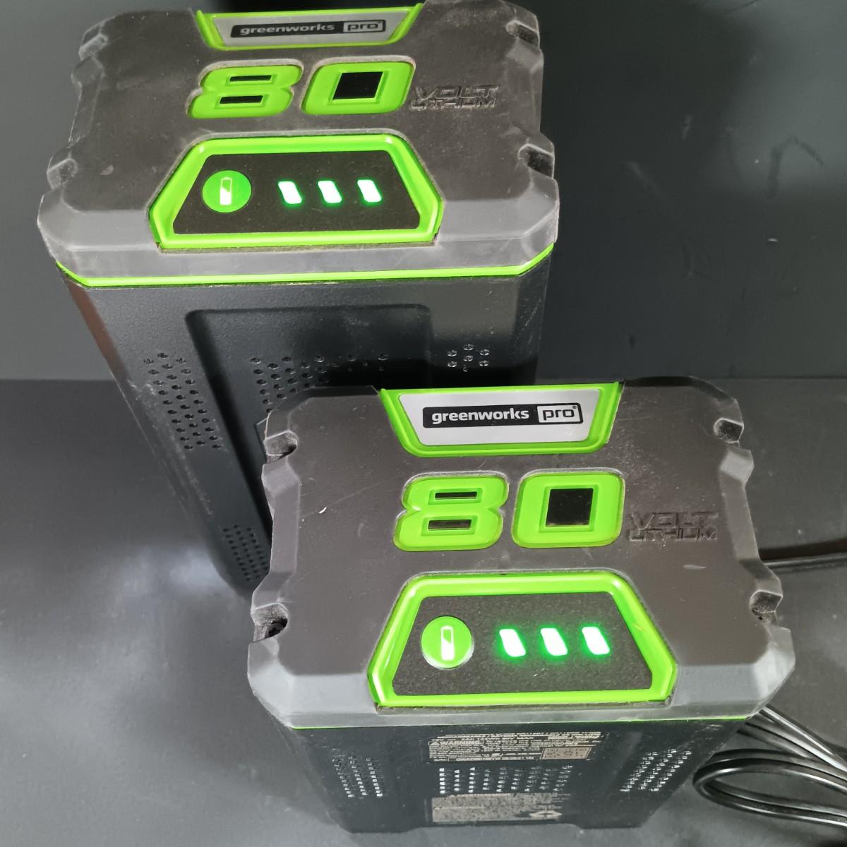 LOT 414: Greenworks 80V Axial Blower w/ Set of (2) Batteries and Chargers