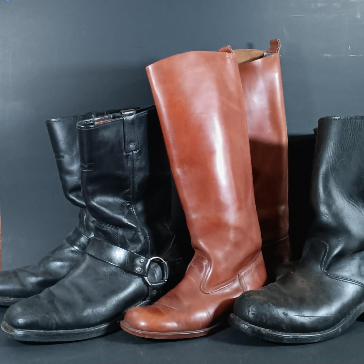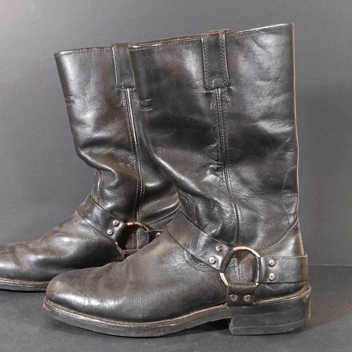 LOT 420: Vintage Harley Davidson 95354 Leather Boots, Gimbels French-Made Elastomere Leather Riding Boots & Double-H Leatger Engineer Boots