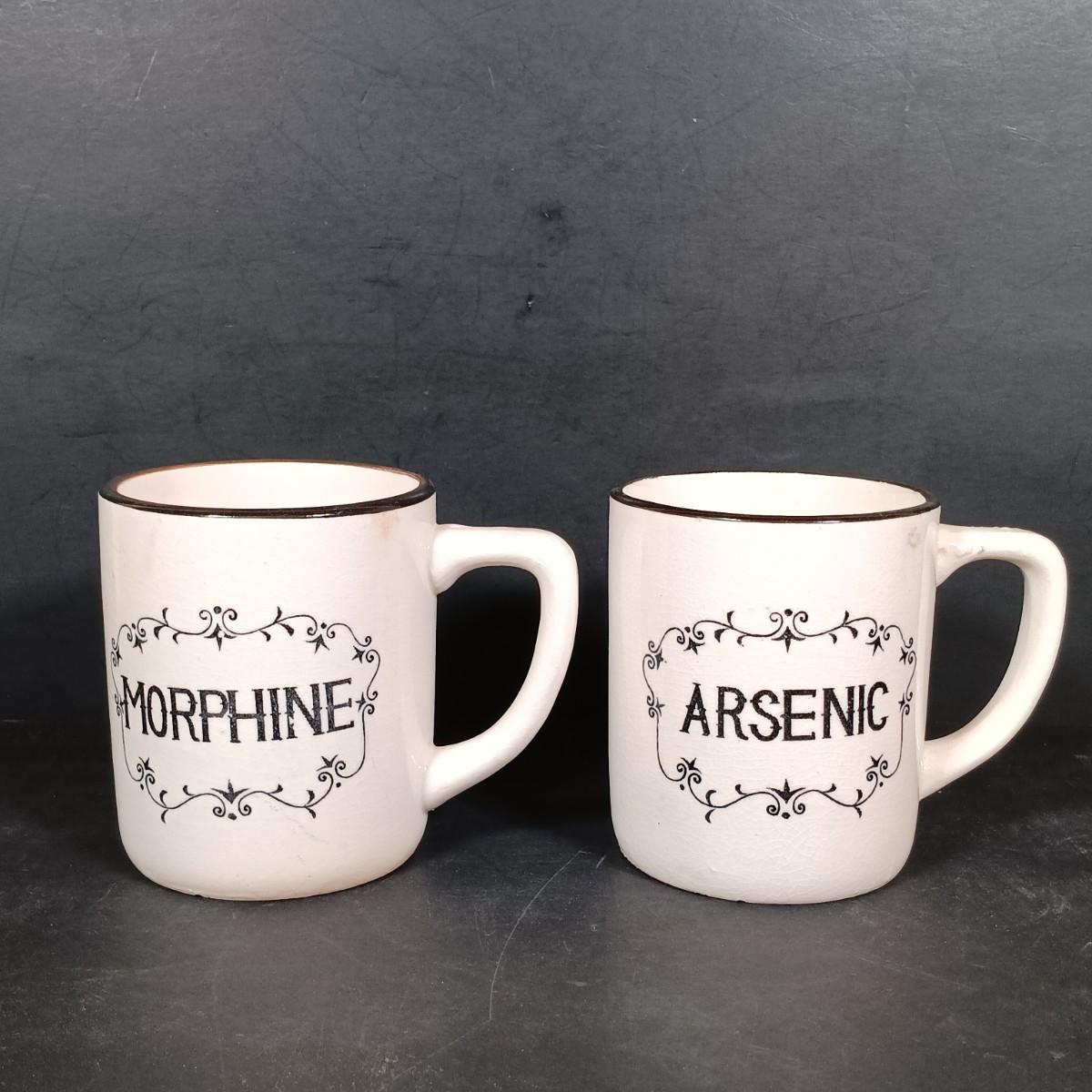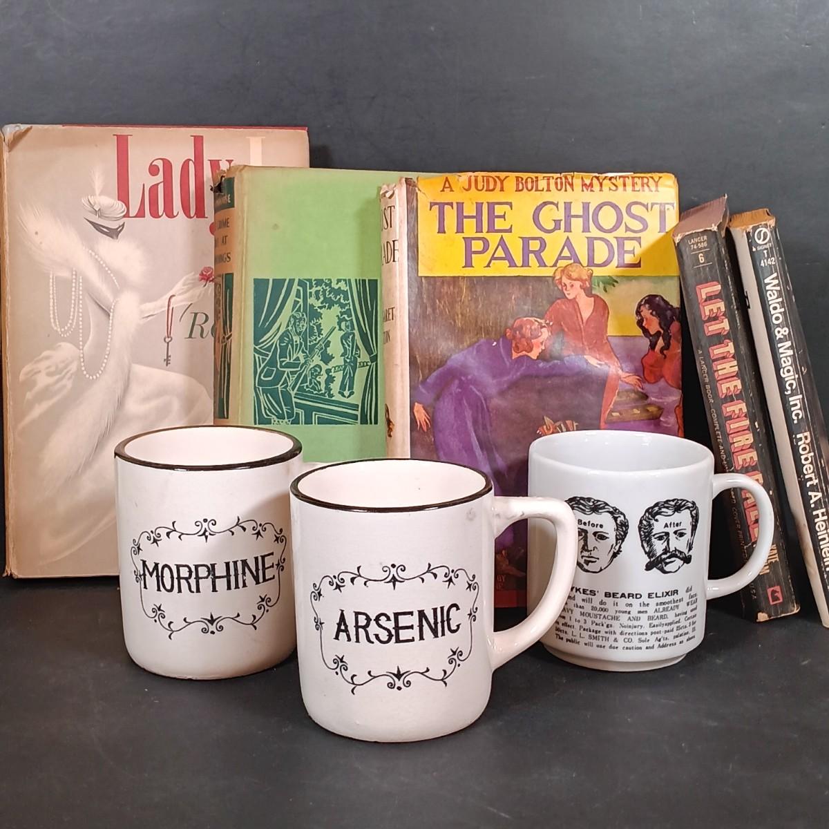 LOT 426: Vintage Japan Made Poison Mugs, Mustache Mug & Books