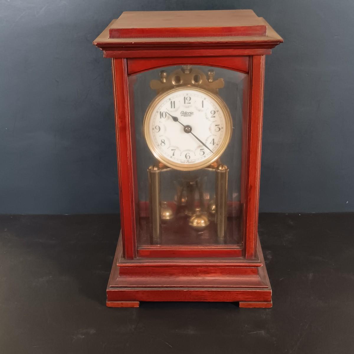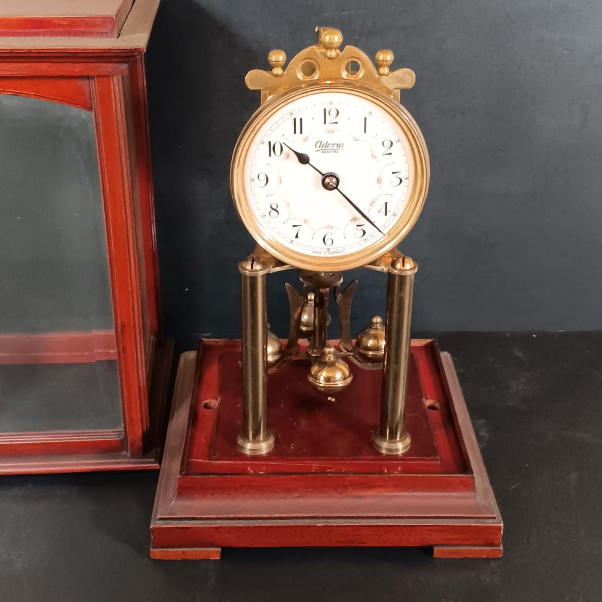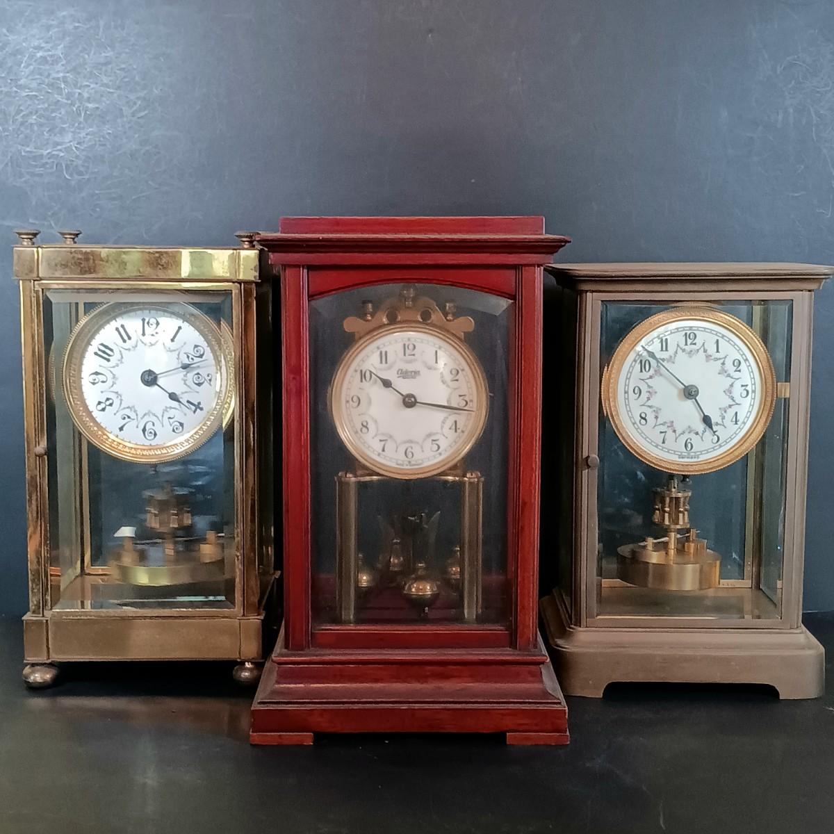 LOT 430: Adoria Wood and Glass Mantel Clock w/ 2 Metal and Glass Mantel Clocks