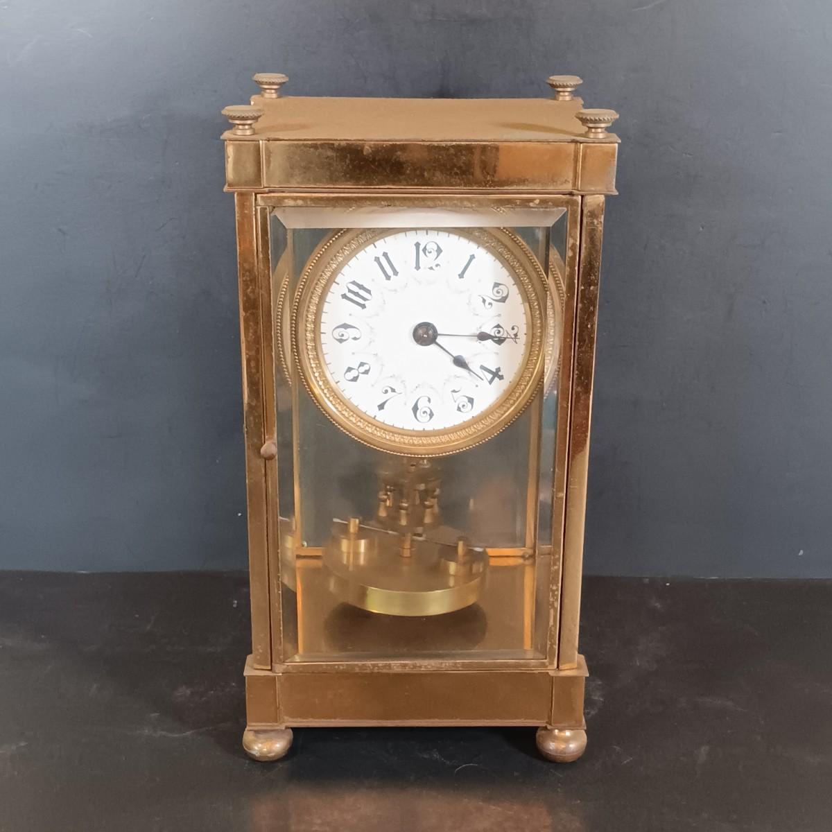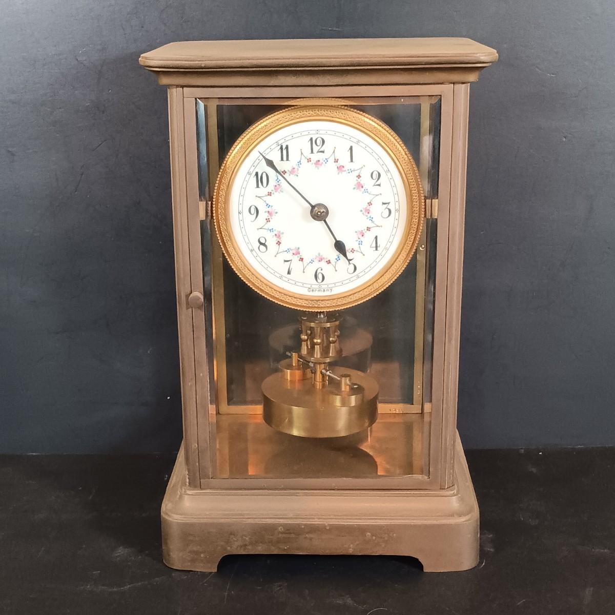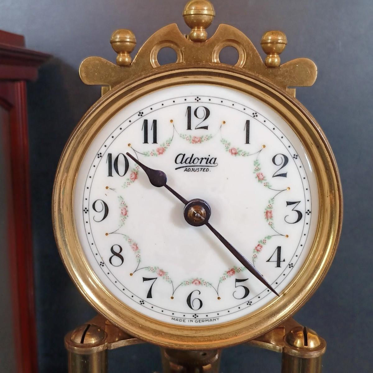 LOT 430: Adoria Wood and Glass Mantel Clock w/ 2 Metal and Glass Mantel Clocks