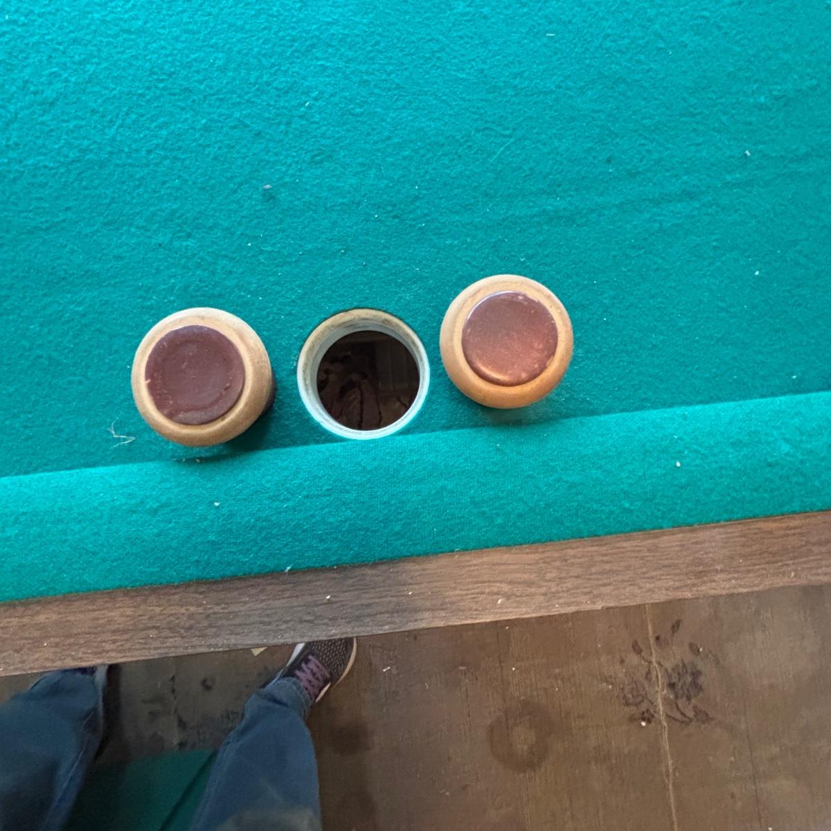 No pool sticks - there are pool balls however 1 is missing as pictured