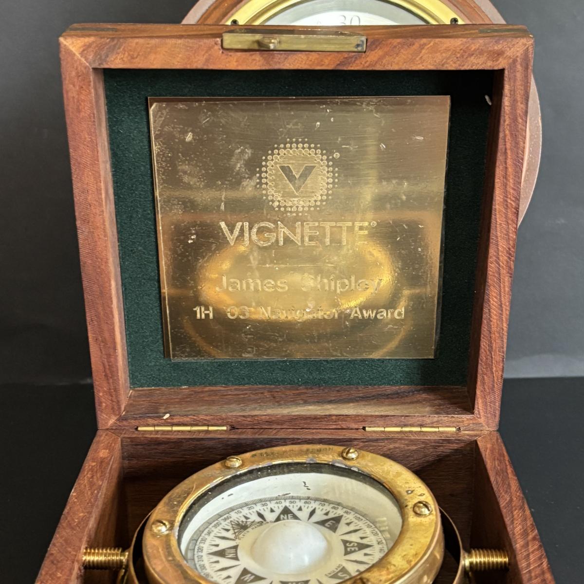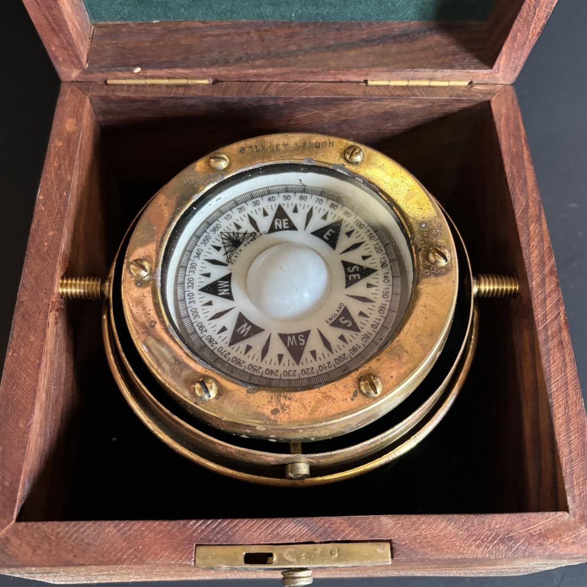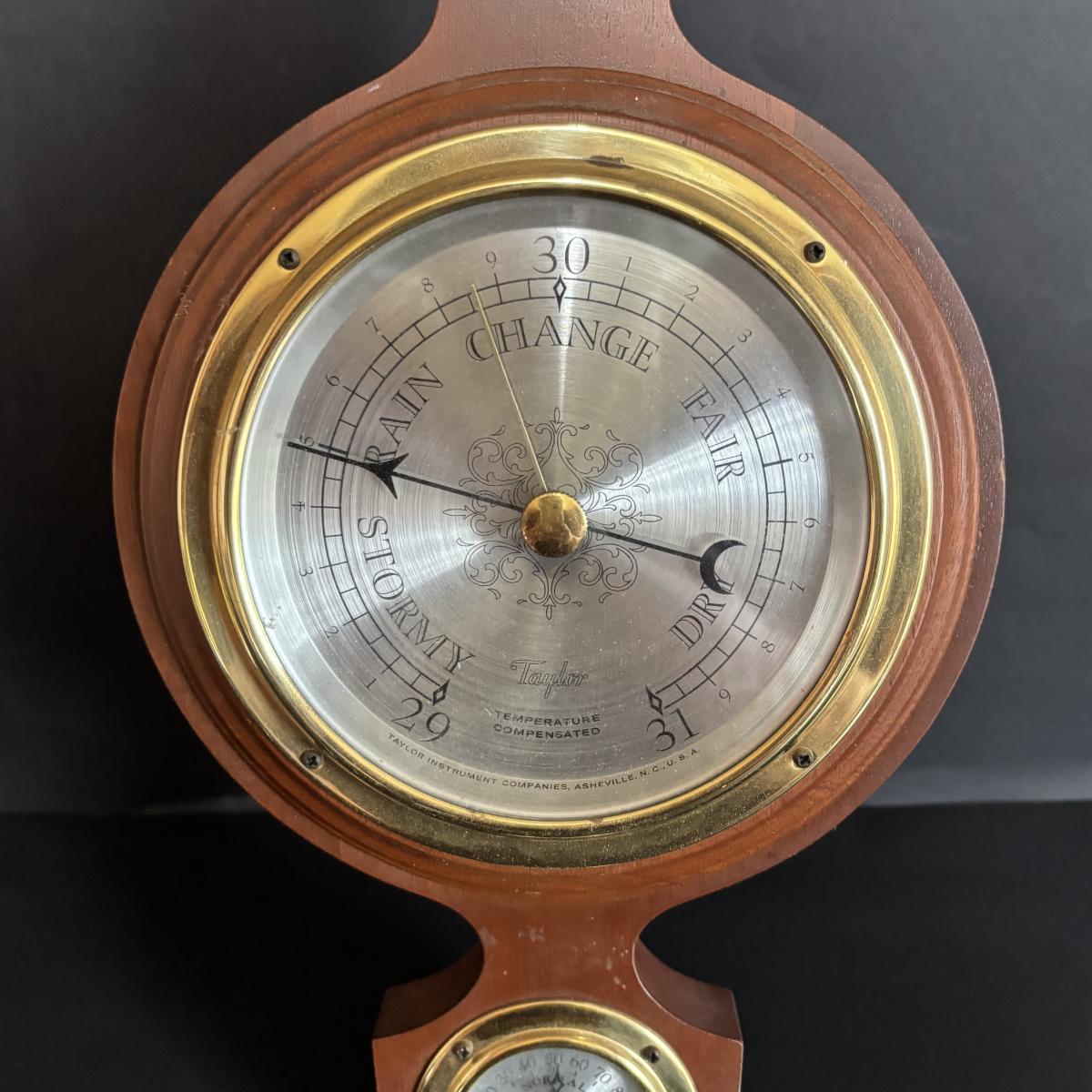 LOT 629: Brass Boston Ships Clock, C. Plath Hamburg Nautical Compass and Taylor Instruments Barometer