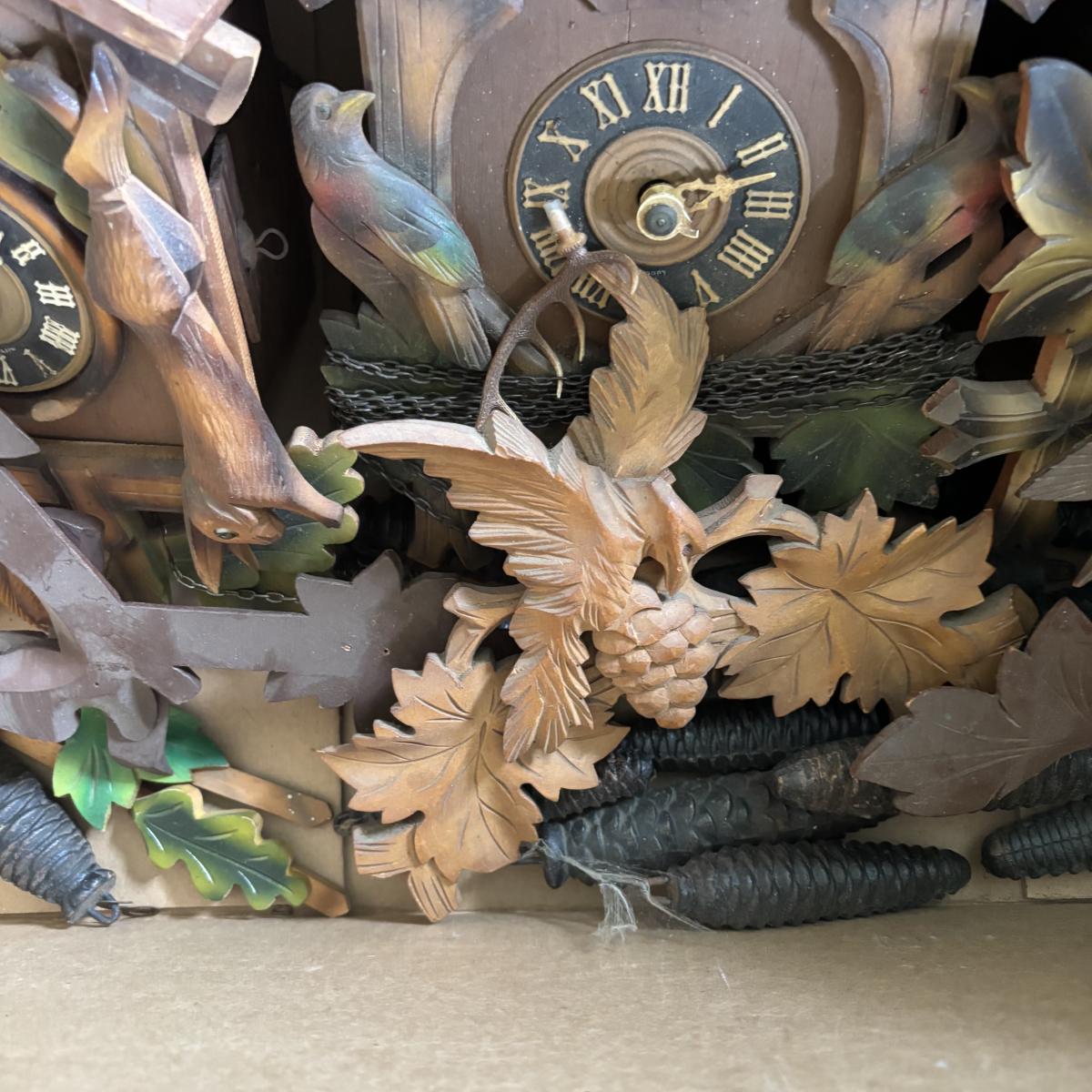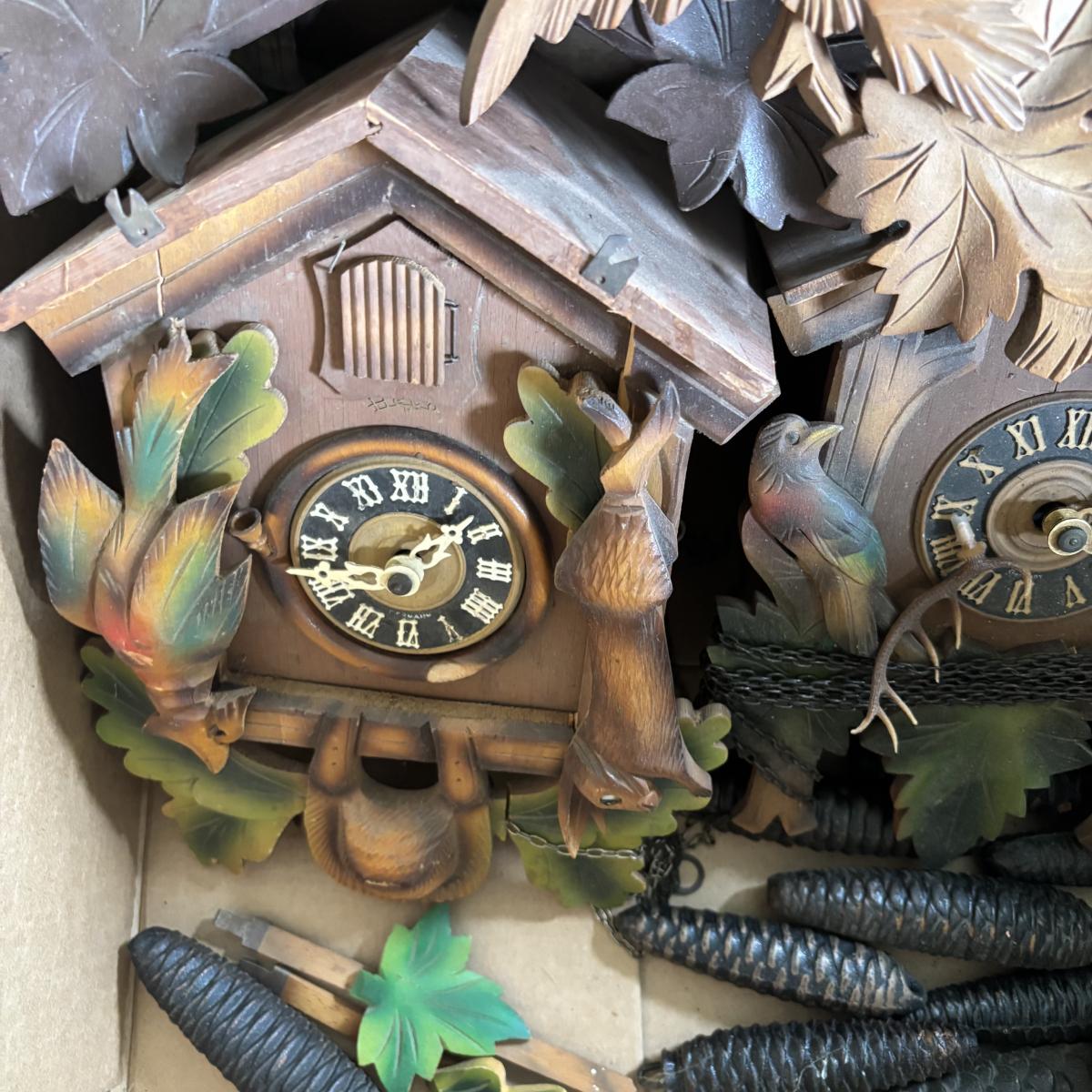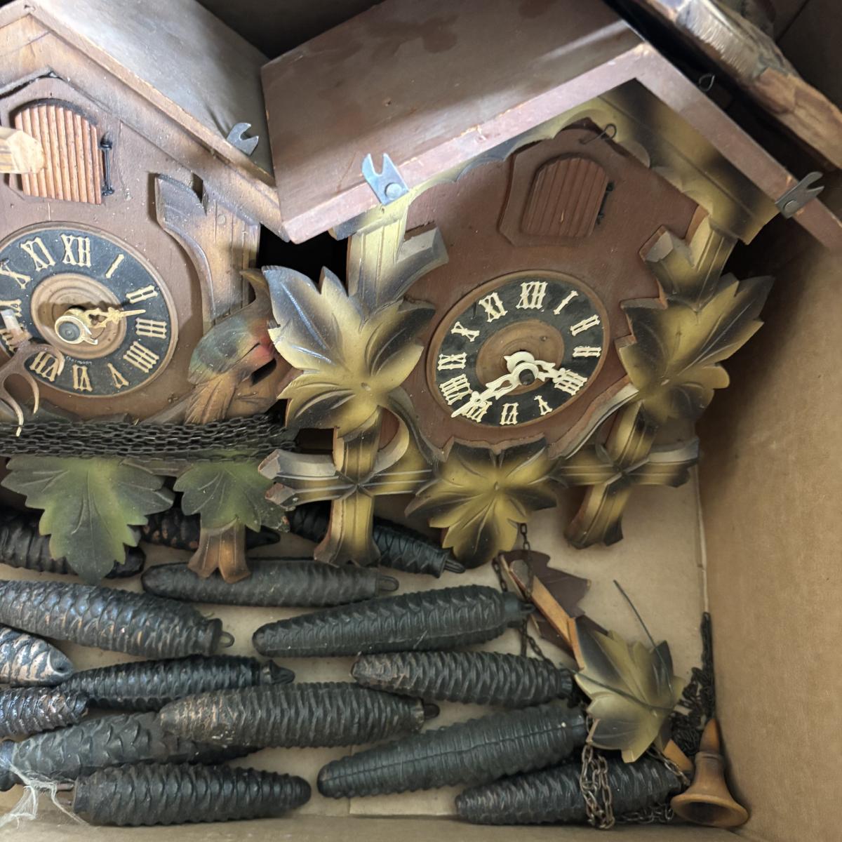 LOT 437: As Found Box of Cuckoo Clocks & Parts